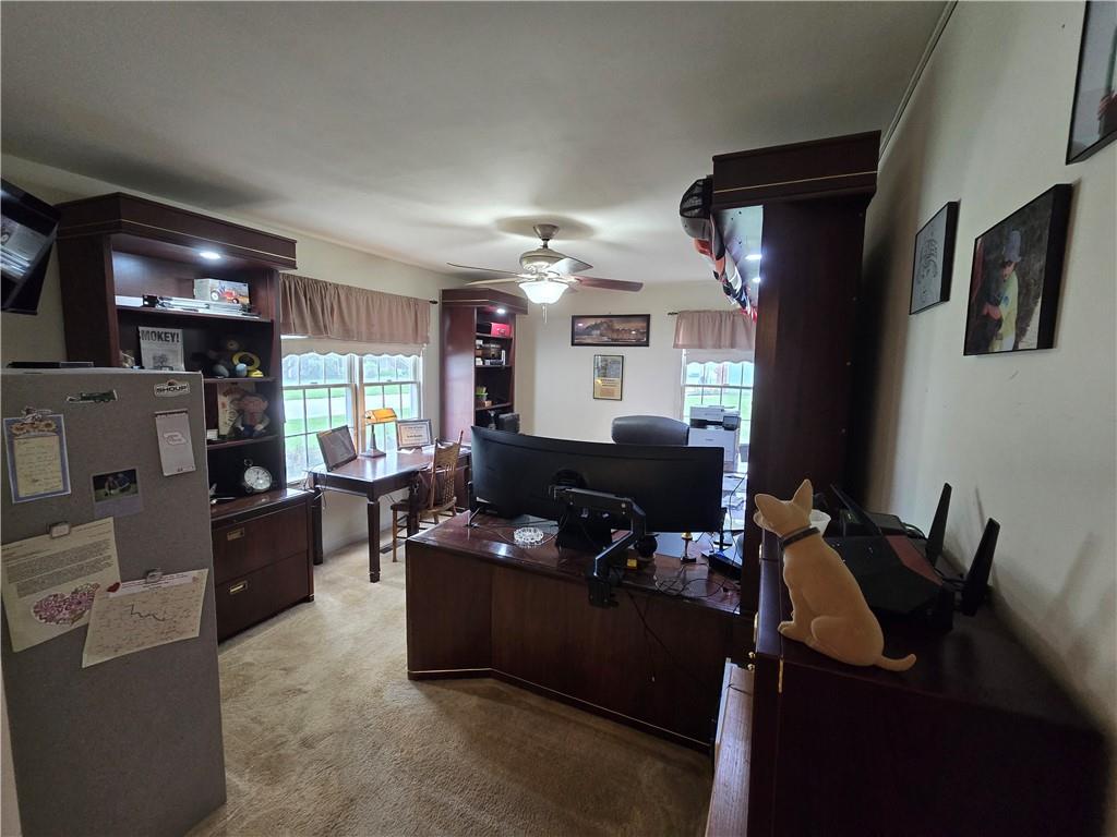This expansive and beautiful home is situated on approximately 4.18 acres in a cul-de-sac. The formal entryway leads into the great room, which features a vaulted ceiling, fireplace, built-in bookcases, and access to the sunroom. The spacious kitchen is equipped with a cooktop stove, built-in ovens, ample cabinet space, and adjoins the mudroom, laundry room, and half bath. The main floor also includes the primary bedroom and bathroom, as well as an office and formal dining room. There are three additional bedrooms, and a full bath located on the second floor. The basement offers a recreational room, family room with wet bar, office space, a non-conforming bedroom currently being used as a workout room, and another full bath. The back deck opens to a picturesque backyard, which includes an outbuilding with oversized garage doors and a workshop area.