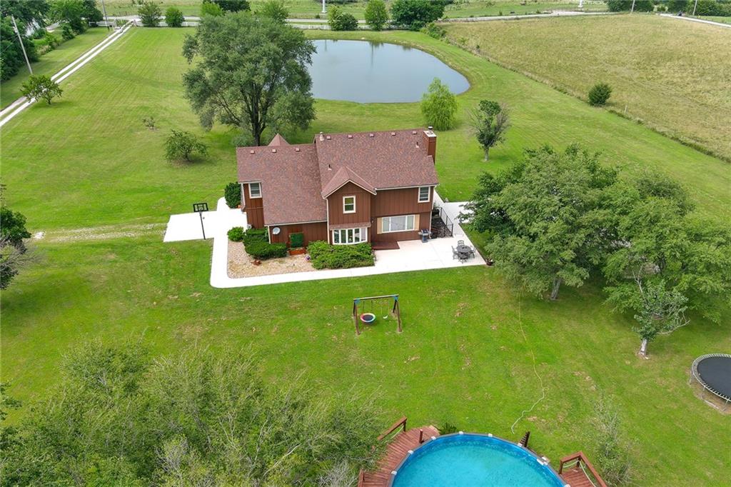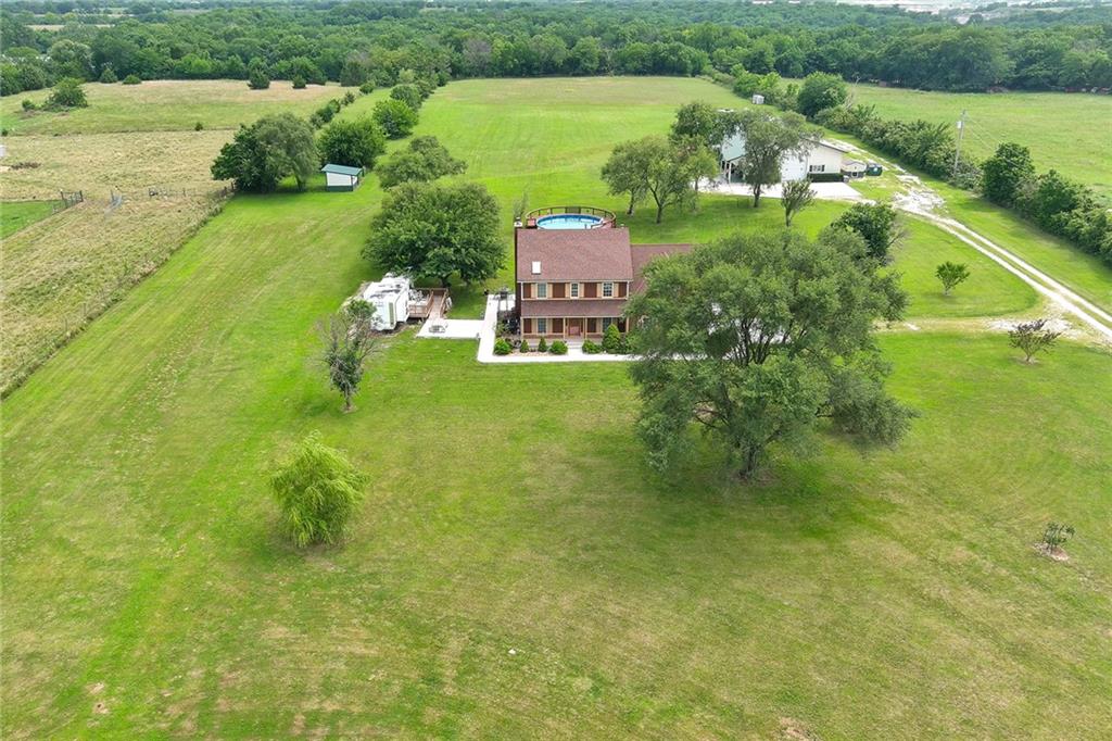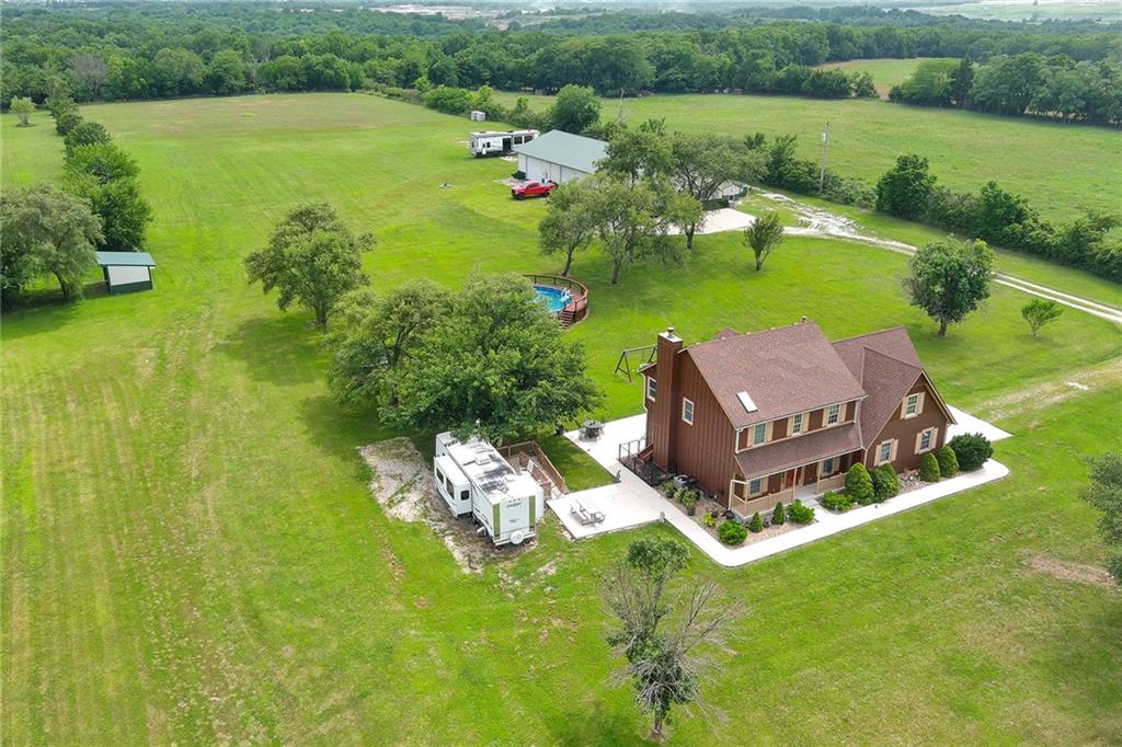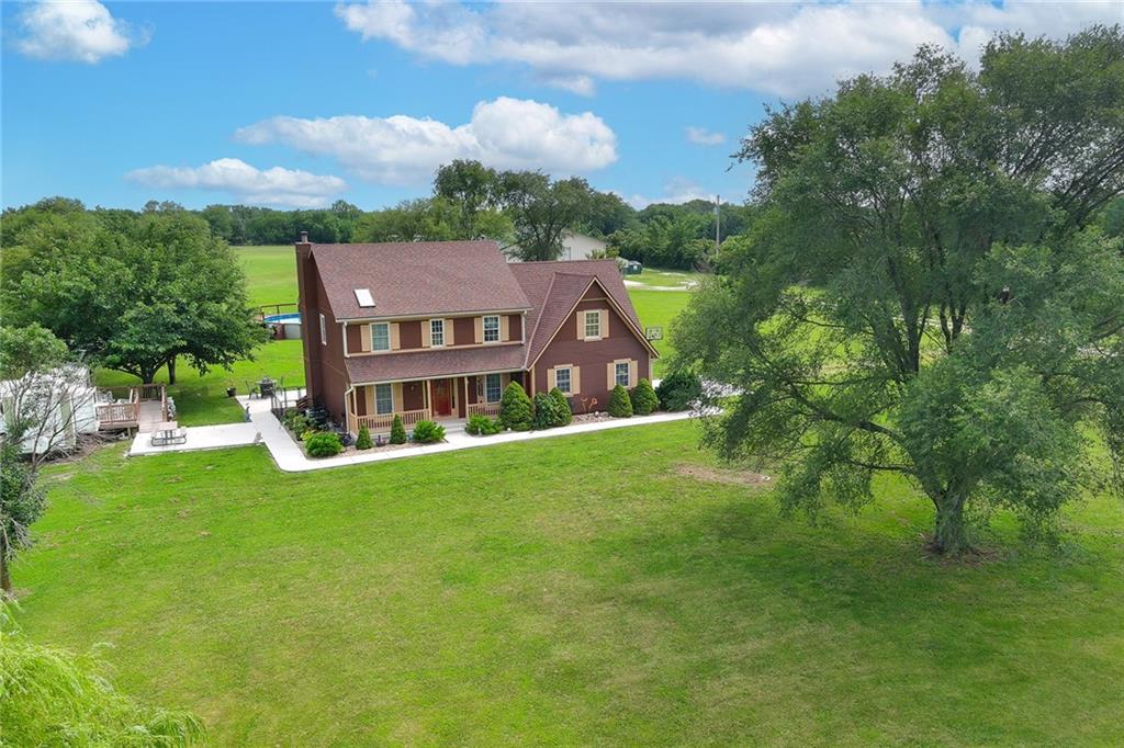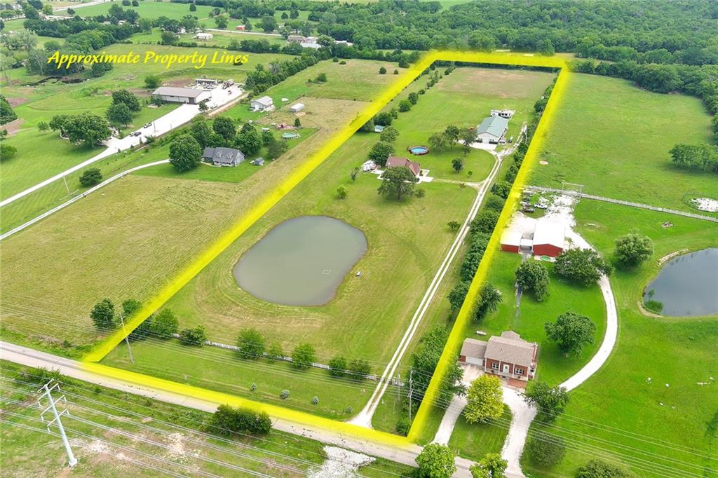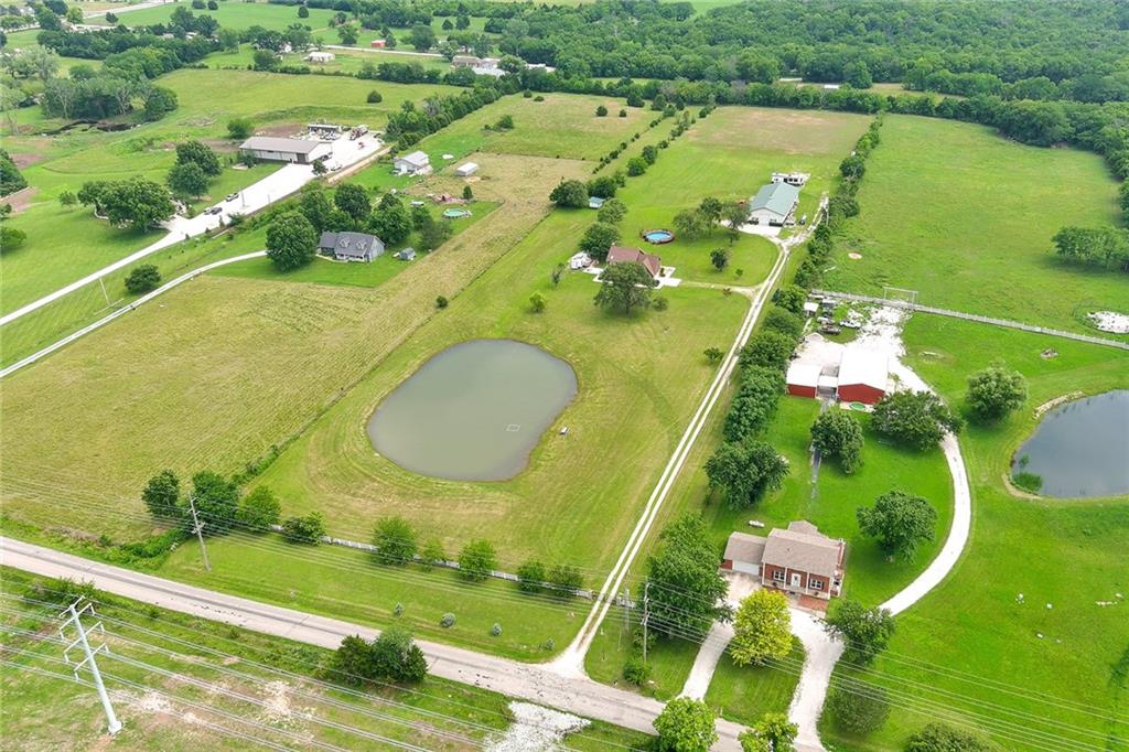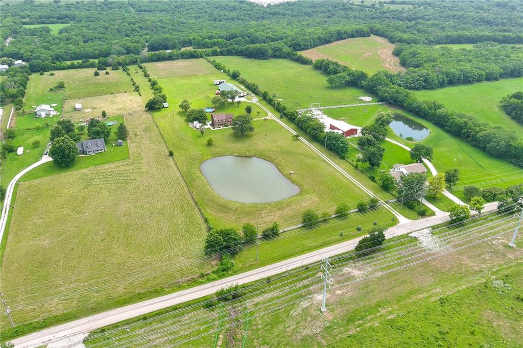 Versatile Estate with 4,400 Sq. Ft. Morton Building on 10 Scenic Acres in DeSoto, KS Unlock the potential of this exceptional property—perfect for entrepreneurs, hobbyists, or anyone seeking space to live, work, and play. Set on 10 gently rolling acres, this gated estate offers a mix of open pasture, mature trees, and a peaceful stocked pond. The land is well-suited for livestock, gardening, recreational use, or future outbuildings—giving you room to grow and the flexibility to create your vision. The standout feature is the impressive 4,400 sq. ft. Morton building, complete with heat, AC, a loft, and a full bath with a whirlpool tub. Whether you're running a small business, storing equipment, restoring cars, or simply need serious workshop space, this structure offers unmatched versatility. The two-story home combines modern comforts with country charm, featuring granite countertops, hardwood floors, and a spacious layout with four bedrooms and four bathrooms. Outside, enjoy serene views, a sparkling pool, and mature fruit trees that add to the estate’s character and functionality. Located just minutes from K-10, this unique property blends rural tranquility with easy city access—ideal for work-from-home lifestyles or business operations.