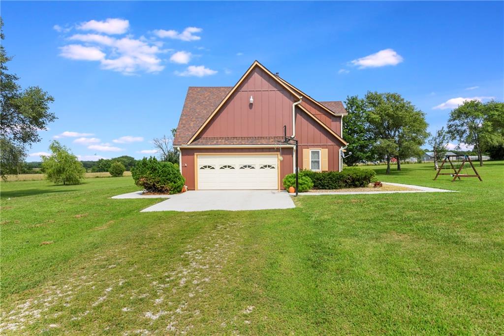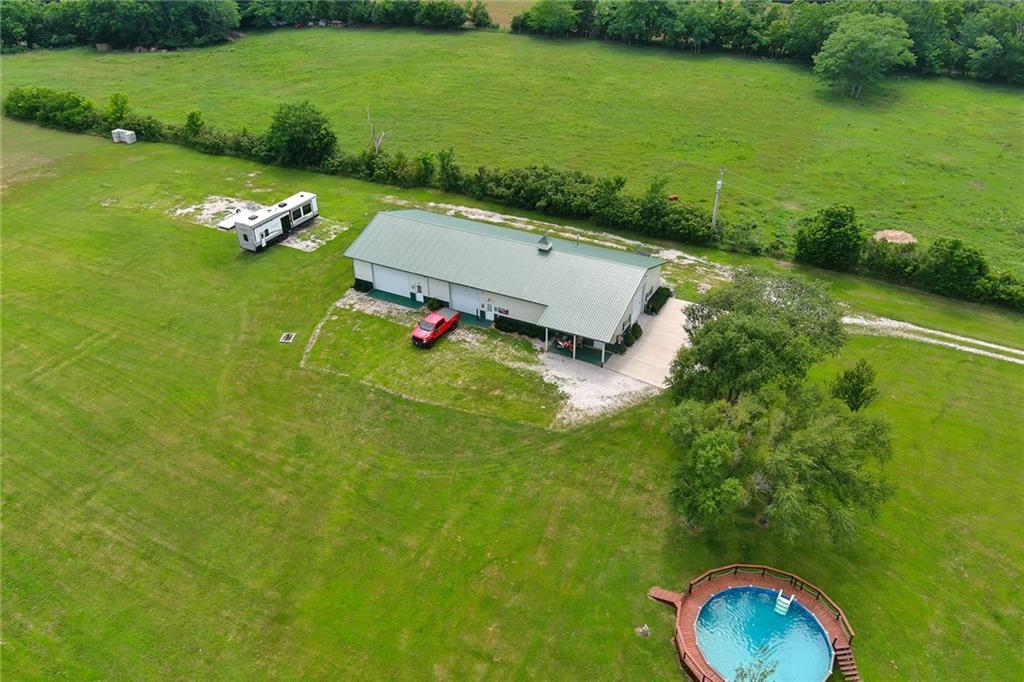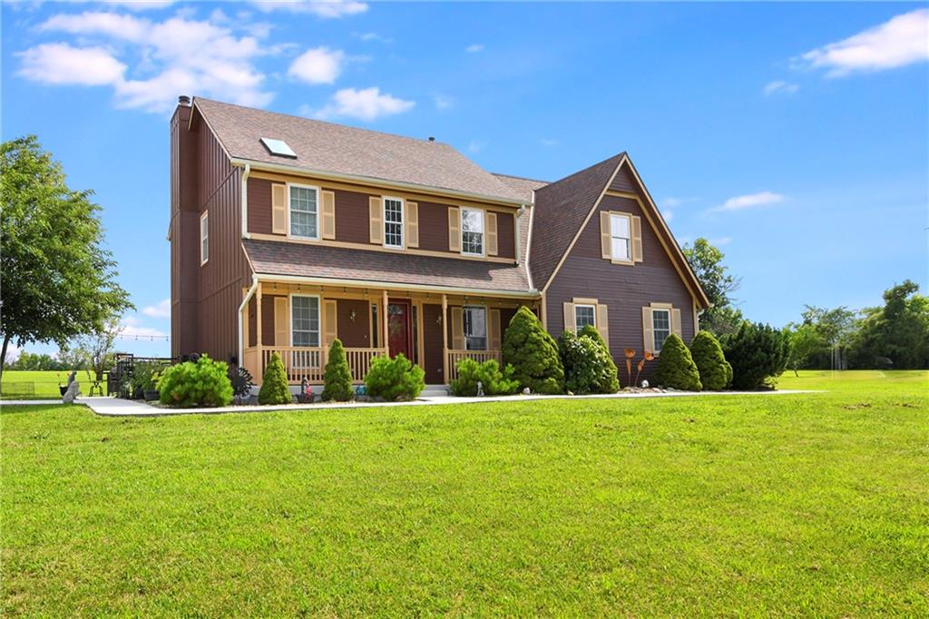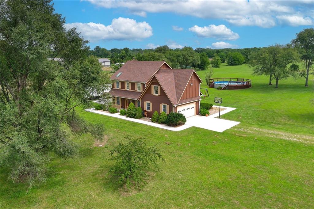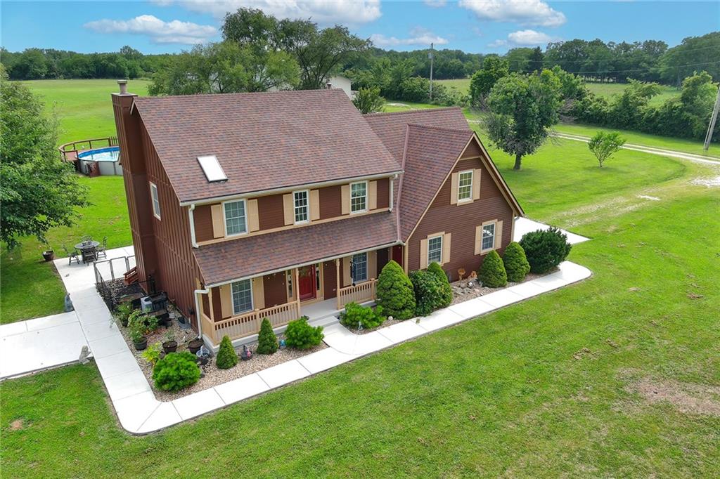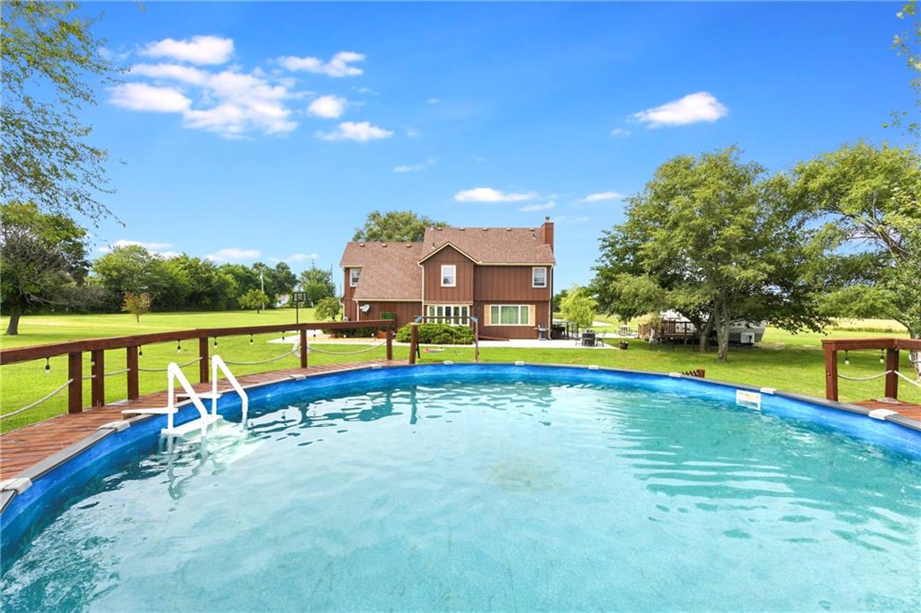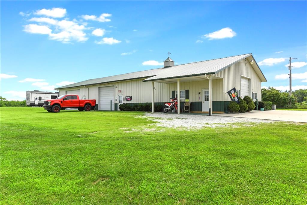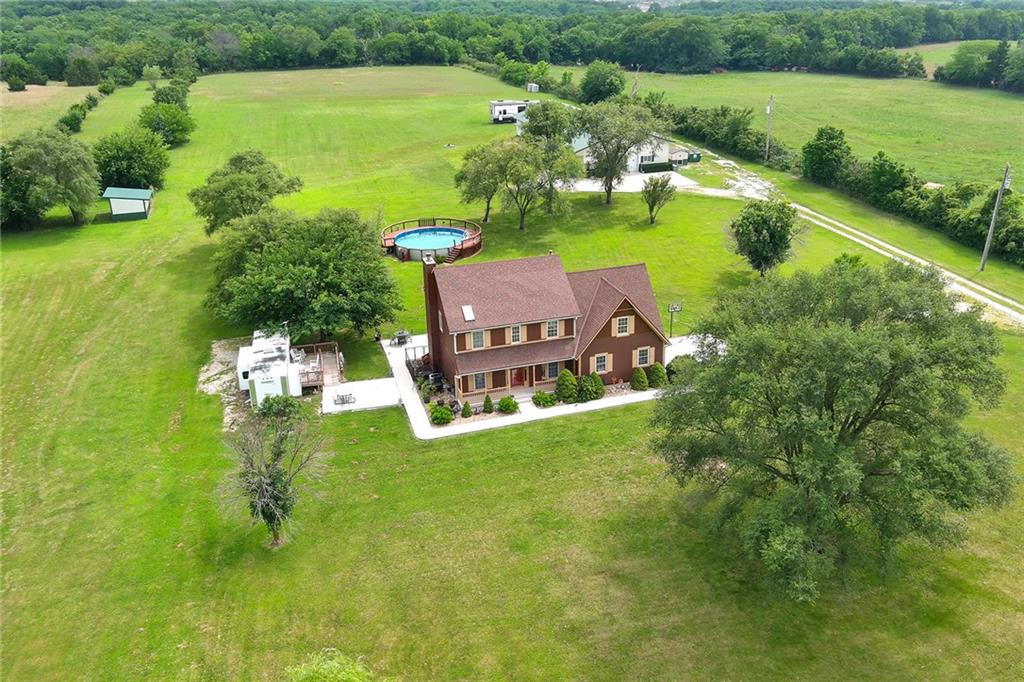 Versatile Estate with 4,400 Sq. Ft. Morton Building on 10 Scenic Acres in DeSoto, KS Unlock the potential of this exceptional property—perfect for entrepreneurs, hobbyists, or anyone seeking space to live, work, and play. Set on 10 gently rolling acres, this gated estate offers a mix of open pasture, mature trees, and a peaceful stocked pond. The land is well-suited for livestock, gardening, recreational use, or future outbuildings—giving you room to grow and the flexibility to create your vision. The standout feature is the impressive 4,400 sq. ft. Morton building, complete with heat, AC, a loft, and a full bath with a whirlpool tub. Whether you're running a small business, storing equipment, restoring cars, or simply need serious workshop space, this structure offers unmatched versatility. The two-story home combines modern comforts with country charm, featuring granite countertops, hardwood floors, and a spacious layout with four bedrooms and four bathrooms. Outside, enjoy serene views, a sparkling pool, and mature fruit trees that add to the estate’s character and functionality. Located just minutes from K-10, this unique property blends rural tranquility with easy city access—ideal for work-from-home lifestyles or business operations.