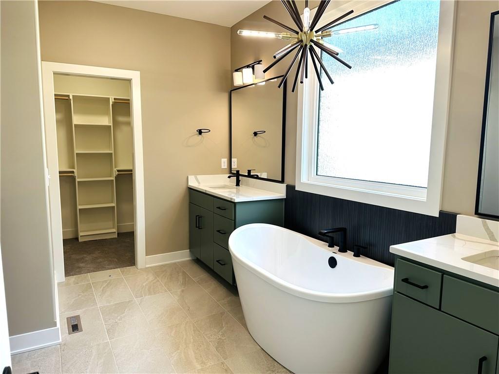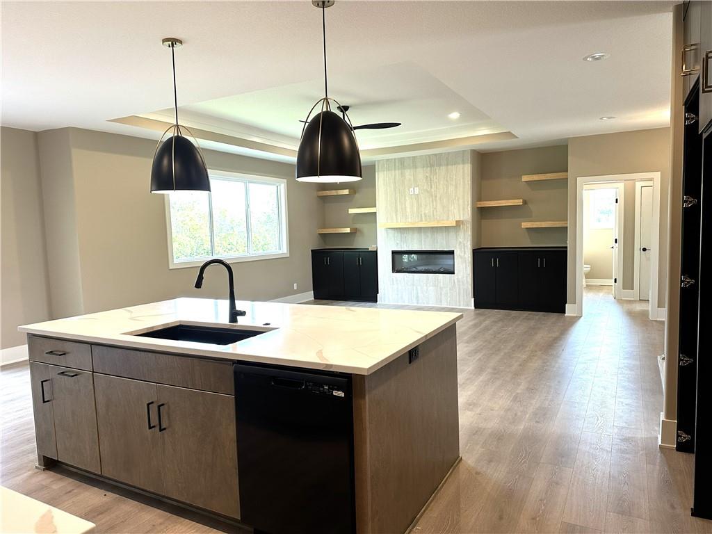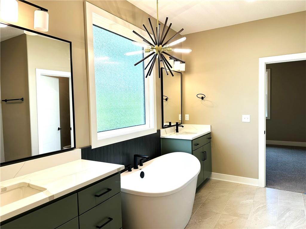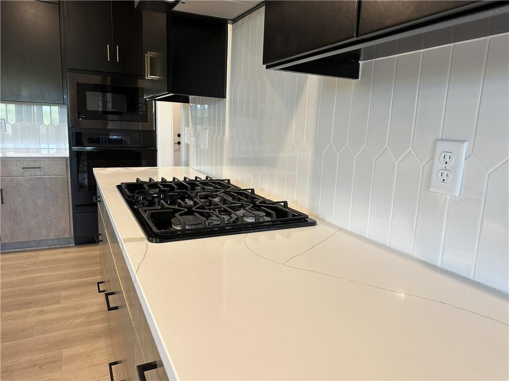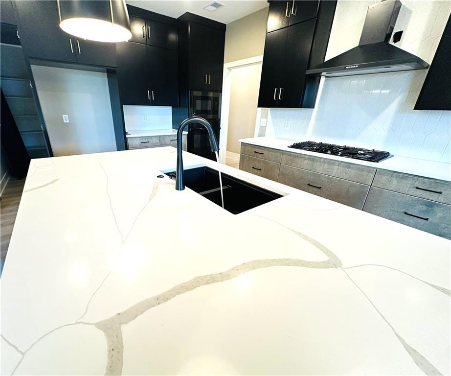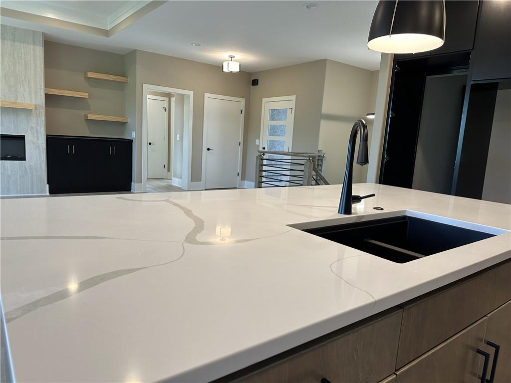 This contemporary ranch home truly checks all the boxes! Offering 4 spacious bedrooms—including 3 on the main level—this open-concept gem is both stylish and functional. Step into the stunning kitchen featuring custom Tricorn Black cabinetry, a striking vertically stacked Cutlass Picket white tile backsplash, and elegant Calacatta Classique quartz countertops throughout the home. The centerpiece - A Tidal wood-stained island that beautifully anchors the kitchen and seamlessly connects to the living room. In the living room, you'll be drawn to the Invictus Rigatto Ivory vertically stacked tile feature wall—another standout design element. Large windows frame serene views of the treed lot, offering a perfect blend of nature and luxury. Step outside to relax on your deck or lower-level porch, ideal for taking in the tranquil scenery. The finished walk-out lower level includes a 4th bedroom, full bath, and is stubbed for a wet bar. Two additional unfinished areas provide endless possibilities for customization—whether it's a 5th bedroom, a gym, office, or playroom lots of opportunities in the unfinished areas to add to your living space.
