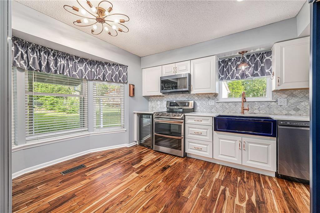 This beautifully updated 4-bedroom, 2-bath home offers a perfect blend of modern touches and everyday functionality. Located on a fenced-in corner lot in a quiet, well-established Kansas City neighborhood, you'll enjoy the best of both worlds: peaceful suburban living with convenient access to local amenities, shops, and schools. Inside, you'll find a spacious layout with multiple living areas and a partially finished basement complete with a wet bar, ideal for entertaining or relaxing. The kitchen has been upgraded with custom cabinetry and hardwood flooring, while the standout master en-suite features dual vanities, a large onyx shower, heated tile floors, and generous space for comfort and privacy. Additional highlights include: A high-efficiency HVAC system, Dual-pane vinyl windows, Architectural shingle roof, and Durable vinyl siding. With room to stretch out and stylish upgrades throughout, this home is truly move-in ready.