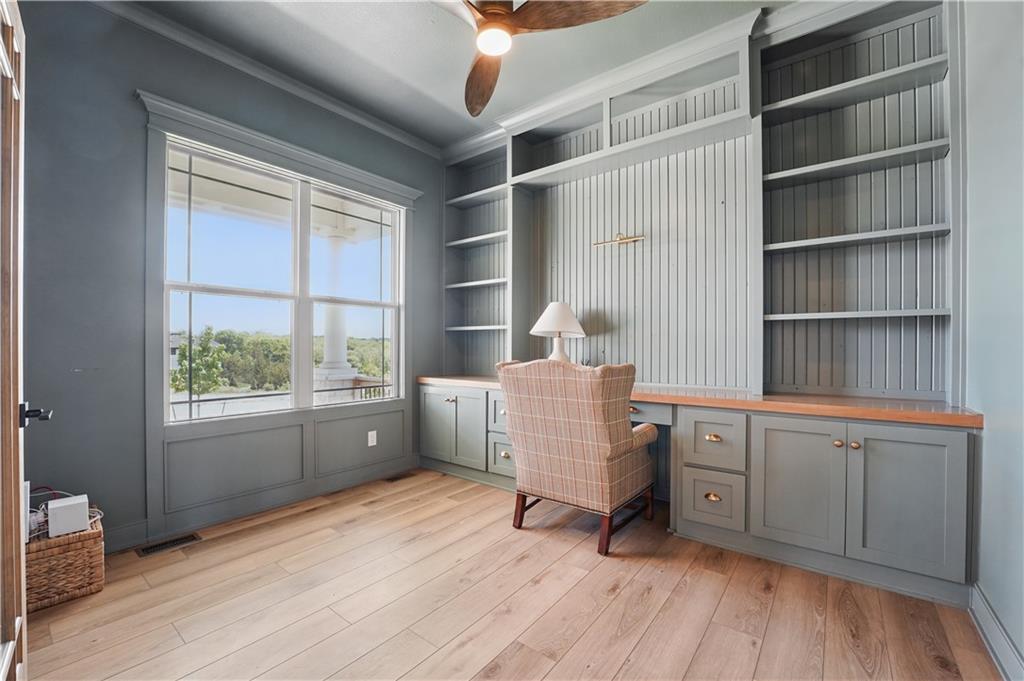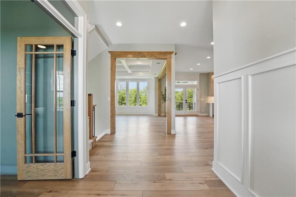 Award winning selections in Cedar Creek! Do you want a new home without the stress or the wait that goes with new construction? This is your chance! This is a rare opportunity to own an award-winning Gabriel Homes - Makenna 2 story that is less than 2 years old. Sitting on one of the best lots in Valley Ridge — backing to a beautiful, treed greenspace. It’s better than new, with the highest of finishes throughout! Step inside through the stunning double door entry into the main floor featuring 10-foot ceilings throughout. The main level office has been upgraded with custom built-ins along with double glass French doors. The expanded great room showcases a large gas fireplace with custom built-ins on either side, coffered ceiling treatment, and a wall of windows featuring upgraded wainscotting. The gourmet kitchen is every chef's dream, featuring beautiful floor to ceiling cabinets, a high end gourmet gas range, a huge walk-in pantry with a grocery pass-through, and an expanded island, perfect for entertaining. Off the main living area, you’ll find a covered deck that looks out over the trees, ideal for your morning coffee or evening relaxation. Upstairs, the primary suite is absolutely incredible. It’s oversized with a huge walk-in closet and has a bonus closet perfect for seasonal clothing or secure storage. The primary suite bathroom feels like your very own spa with heated tile floors, double vanities, a luxurious soaker tub, and a large shower with his and her sides. Every detail on this home has been meticulously selected! Cedar Creek features a 65 acre private fishing/canoeing/kayaking lake. 3 resort-like swimming pools, a 2 story clubhouse with NBA basketball grade court that is also set up for year round pickleball or volleyball, several outdoor tennis and pickleball courts, sand volleyball court, along with miles of walking trails! Come see why Cedar Creek is one of the most sought-after communities to call home in Johnson County!