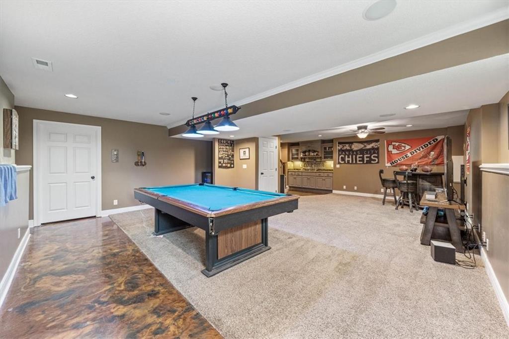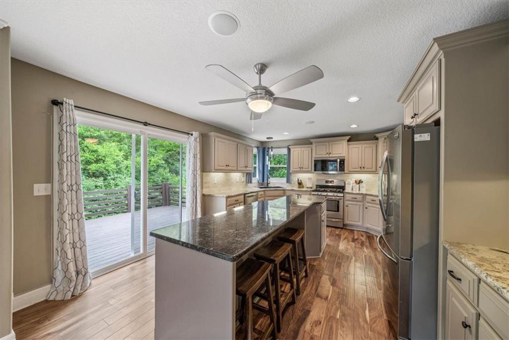 Back on the market with a NEW roof & NEW driveway & front walkway! Check out this 2-story, 4 bed, 3.5 bath with fully finished walkout basement! Remodeled by prior owners, this home has a main floor home office, formal dining room, spacious living room with fireplace, and a large kitchen with pantry, island with seating, granite countertops, custom cabinets, and stainless appliances including a gas range. All bedrooms are on the second level including the generous primary suite which features a private seating area with fireplace and en suite with dual vanities, tiled shower and walk-in closet. Walkout basement is ready for entertaining with custom epoxy-coated floors, wet bar, and yes -- even two built-in beer taps for your kegs of choice or for the home brewer! Ample storage space. Sellers have replaced the AC and added a tankless hot water heater. Laundry is currently in the primary bedroom closet, but can be returned to the mud room on the main floor (where the pantry currently is). The backyard has a two-tiered deck and is surrounded by trees. This home has it all!