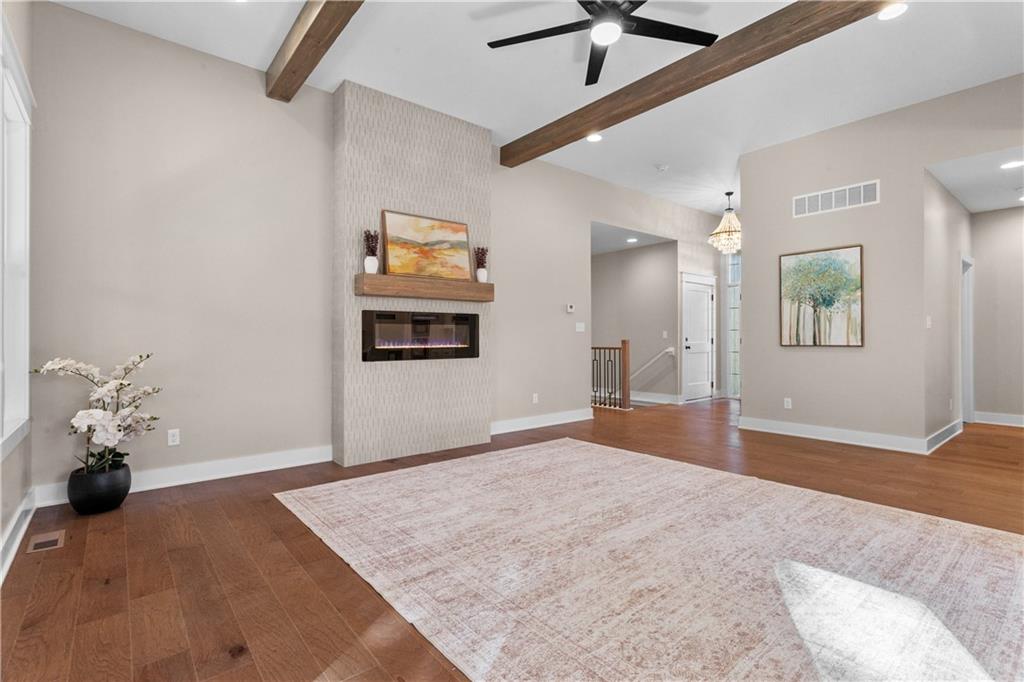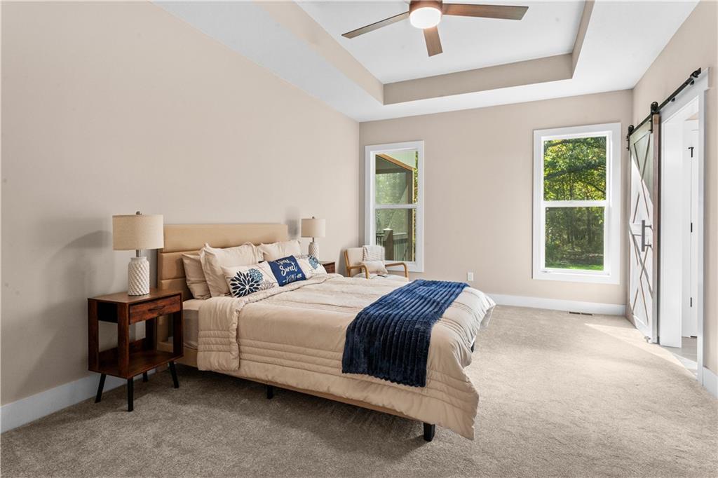 Back on market- no fault of home, buyers unable to sell their current home. Amazing straight ranch on a spacious, treed lot. The open kitchen impresses with custom painted cabinets, quartz countertops, a large island with breakfast bar, pantry, and premium appliances, including built-in and convection ovens, an oversized cooktop with downdraft, and a dishwasher. The living room features 12’ ceilings, a floor-to-ceiling tile fireplace, and an abundance of natural light. The primary suite is a peaceful retreat with large windows overlooking the private backyard. The en-suite bath offers a fully tiled walk-in shower, dual quartz vanities, and a linen closet. A spacious walk-in closet adds convenience and function, making this suite the perfect blend of comfort and modern style. Enjoy main floor laundry and a screened-in, covered composite deck with stairs to the yard. Additional highlights include a seven-zone irrigation system, a huge unfinished basement with egress windows and plumbing for a full bath, and a high-efficiency, environmentally friendly HVAC system with humidifier and 14 SEER A/C unit featuring the new R-454B refrigerant. Quality, comfort, and craftsmanship come together—schedule your showing today! Owner/agent