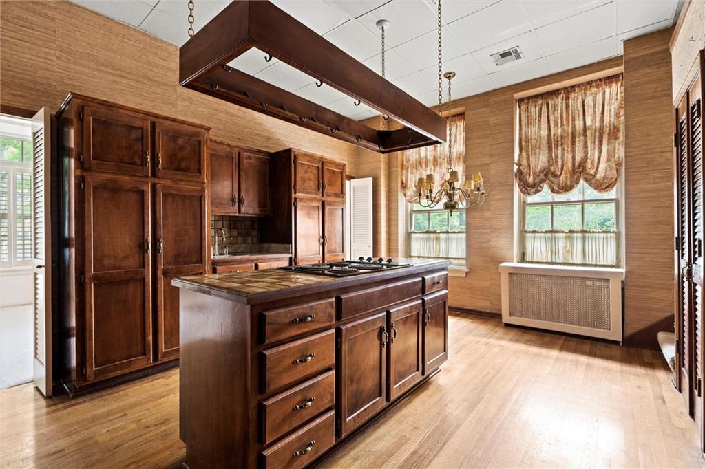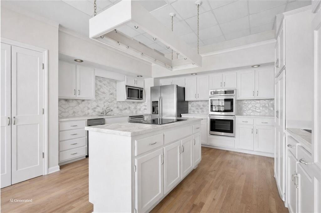 Note: Some pictures have been AI generated to show how the space could be renovated by a new buyer to create a sleek and sophisticated home ready for today's living? SELLER TO PROVIDE A CREDIT FOR BUYER AT CLOSING EQUAL TO SIX MONTHS HOA DUES WITH AN ACCEPTABLE OFFER. Once in a lifetime opportunity to have one of THE coolest, most unique condominiums in Kansas City. The former dining room for The Sophian, this 3,405sf unit has 12' ceilings, ornate moldings and ample windows and light. There is a separate, dedicated entrance off the south side of the building in addition to direct access via the elevator from the lobby. There is a deeded parking space (20P) in the garage and a parking space in the parking lot. Bring your imagination and vision as this unit will take some work but the reward will be amazing! The Sophian has a "no pet" policy and Is a non-smoking building.