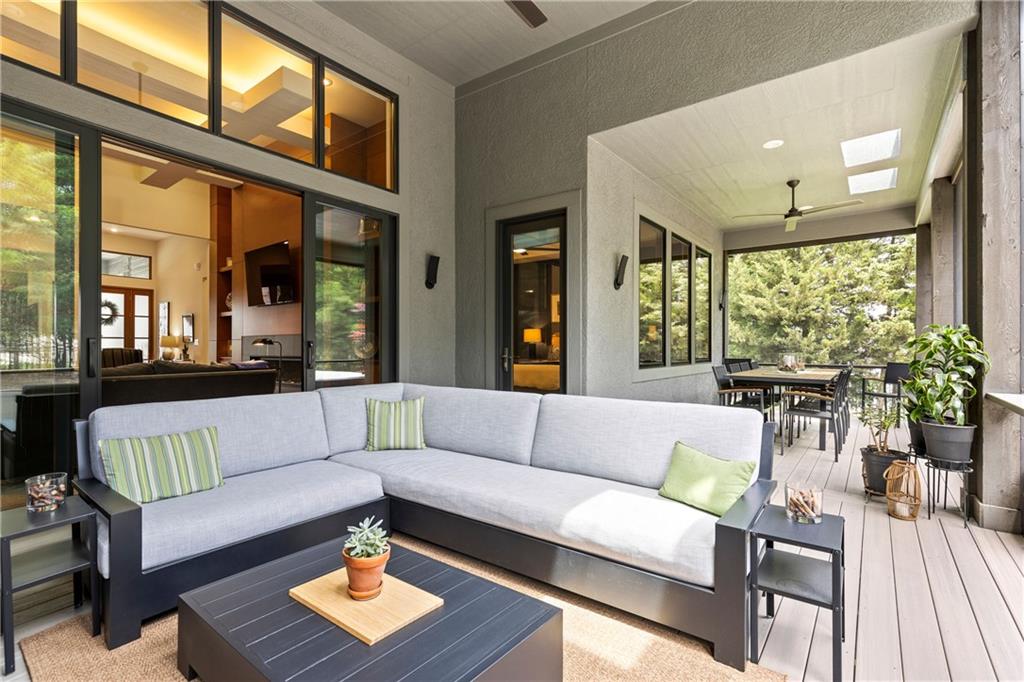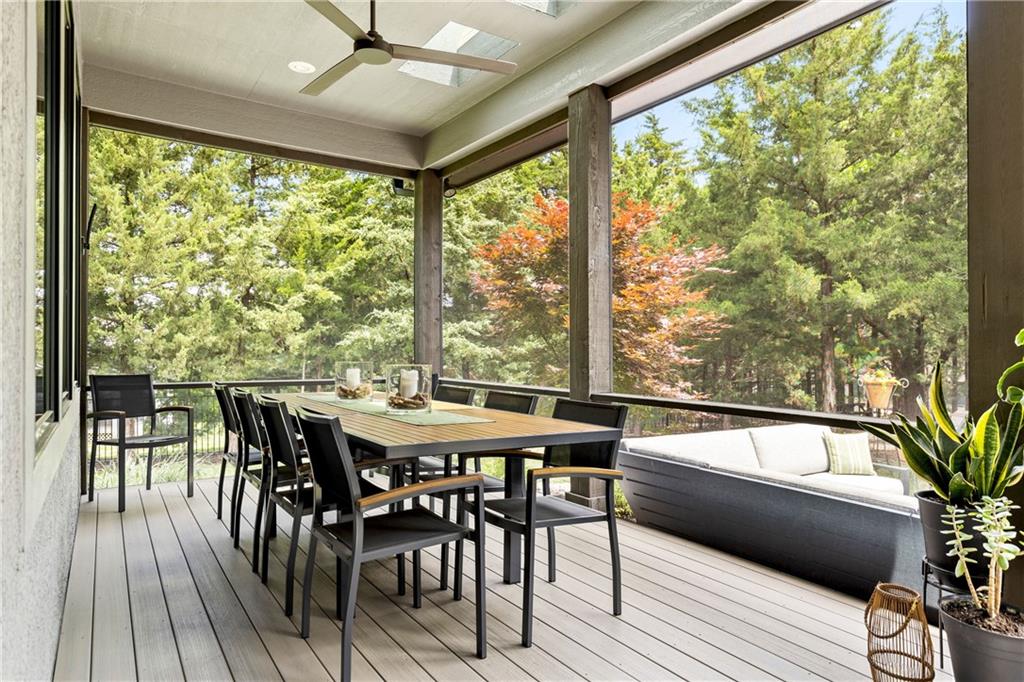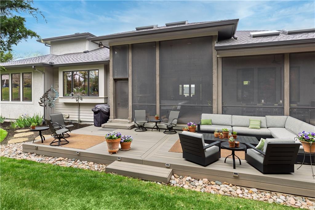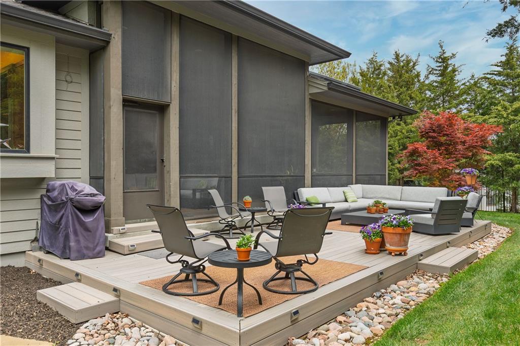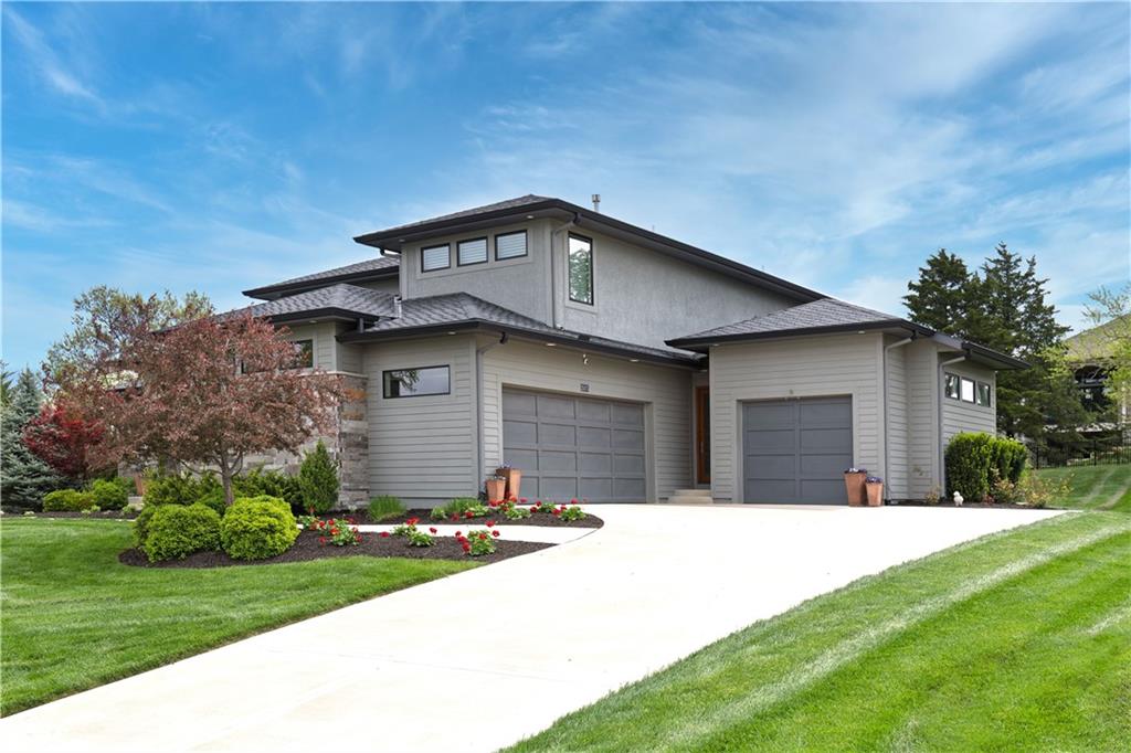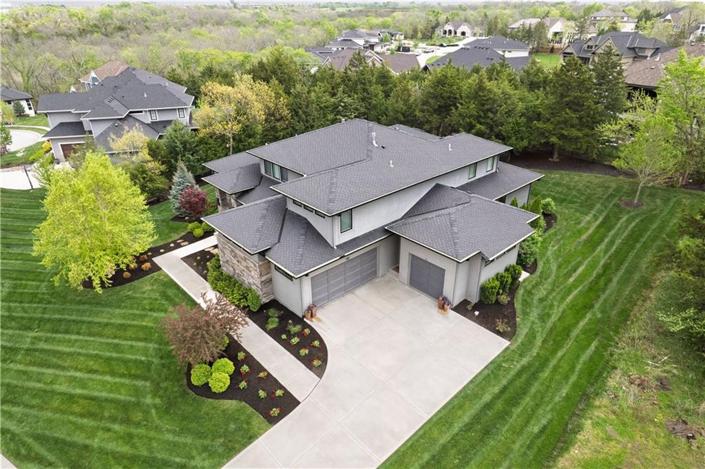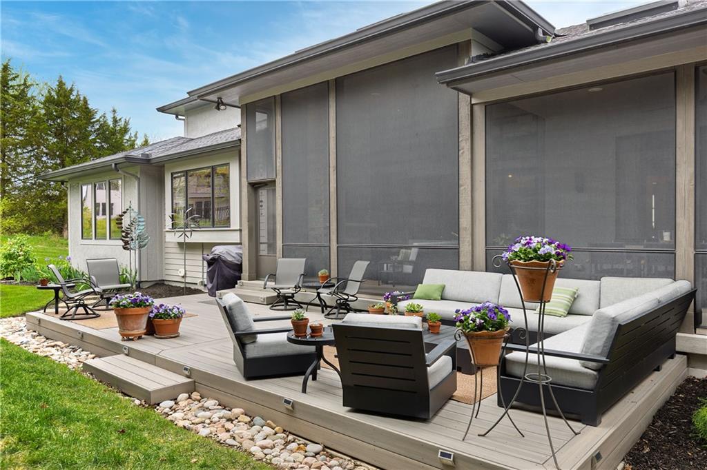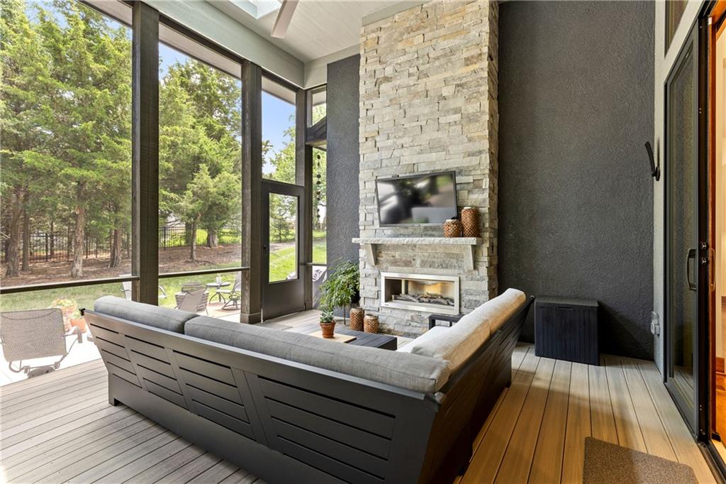Experience luxury living in this stunning 1.5-story custom home located in the highly sought-after Cedar Creek community. With over 4,500 square feet of thoughtfully designed living space, this home is perfectly situated on a rare .59-acre cul-de-sac lot, offering both privacy and connection to one of Olathe’s premier neighborhoods. The main level features a spacious primary suite with spa-like bath, a private study ideal for remote work, and a dedicated playroom designed for flexibility and family living. The chef’s kitchen is a dream, equipped with a built-in Sub-Zero refrigerator, Thermador double ovens, and a professional-grade gas cooktop, making meal prep and entertaining effortless. The living room showcases a dramatic floor-to-ceiling wood-paneled wall with a sleek fireplace, flanked by built-in shelving, and double sliding glass doors that seamlessly connect to an expansive screened-in patio and dining area—perfect for indoor/outdoor living. Upstairs, you’ll find a bright loft with skylight and three generously sized bedrooms, each offering direct access to a bathroom, providing comfort and convenience for family and guests alike. Located in Cedar Creek, residents enjoy resort-style amenities including three community pools, tennis and pickleball courts, a clubhouse, basketball court, scenic walking trails, and a stocked fishing pond. This home offers an unmatched combination of luxury, location, and lifestyle.