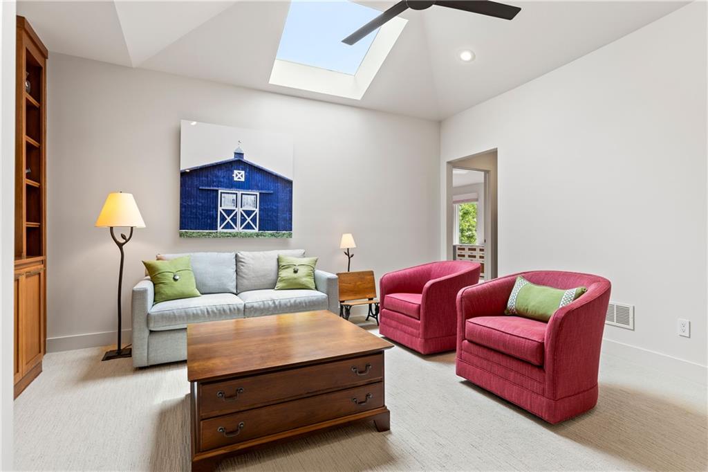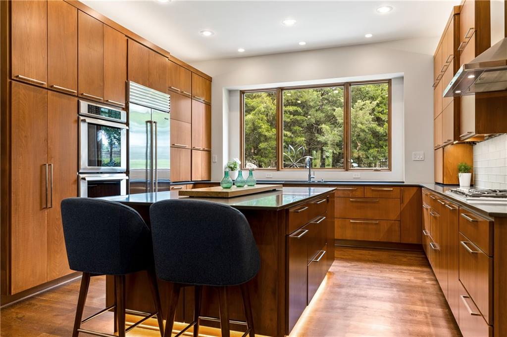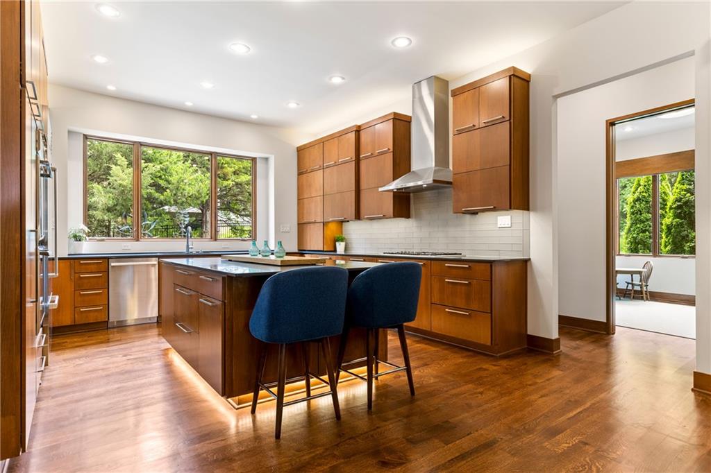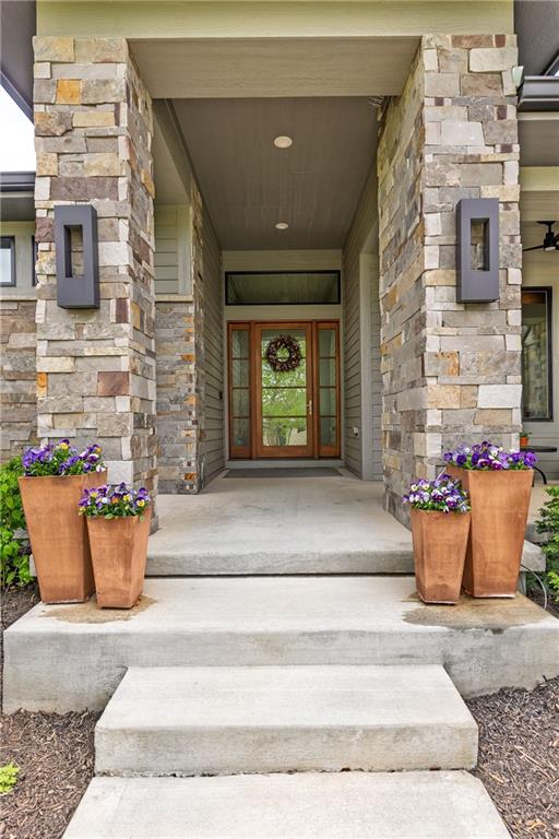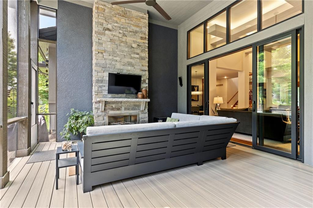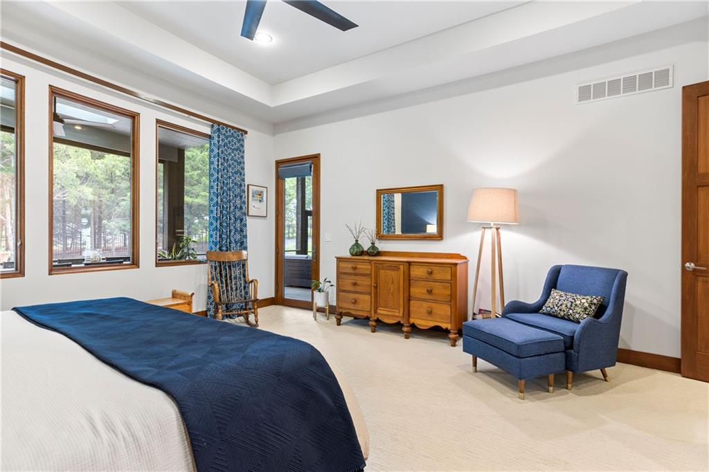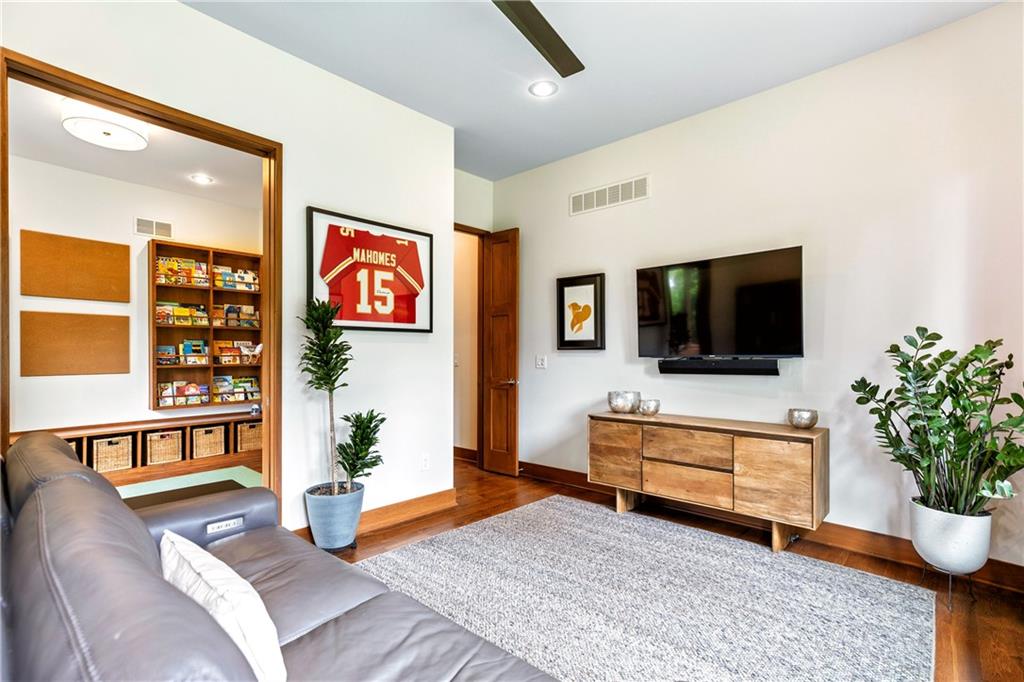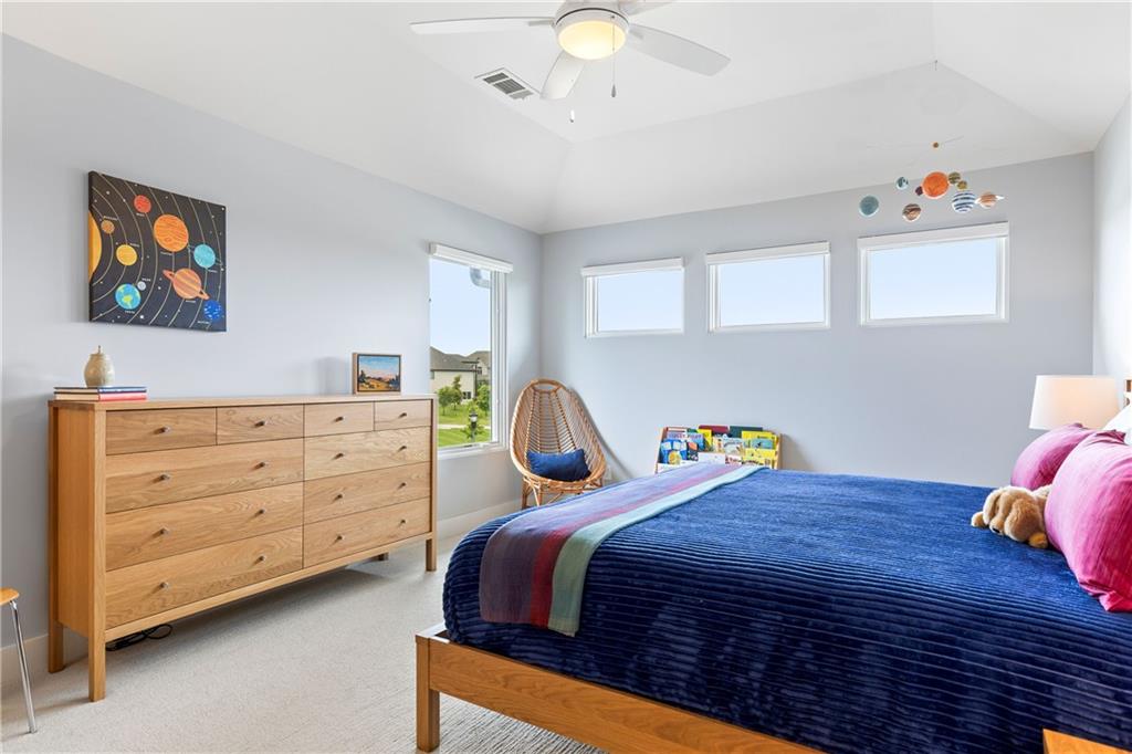 Experience luxury living in this stunning 1.5-story custom home located in the highly sought-after Cedar Creek community. With over 4,500 square feet of thoughtfully designed living space, this home is perfectly situated on a rare .59-acre cul-de-sac lot, offering both privacy and connection to one of Olathe’s premier neighborhoods. The main level features a spacious primary suite with spa-like bath, a private study ideal for remote work, and a dedicated playroom designed for flexibility and family living. The chef’s kitchen is a dream, equipped with a built-in Sub-Zero refrigerator, Thermador double ovens, and a professional-grade gas cooktop, making meal prep and entertaining effortless. The living room showcases a dramatic floor-to-ceiling wood-paneled wall with a sleek fireplace, flanked by built-in shelving, and double sliding glass doors that seamlessly connect to an expansive screened-in patio and dining area—perfect for indoor/outdoor living. Upstairs, you’ll find a bright loft with skylight and three generously sized bedrooms, each offering direct access to a bathroom, providing comfort and convenience for family and guests alike. Located in Cedar Creek, residents enjoy resort-style amenities including three community pools, tennis and pickleball courts, a clubhouse, basketball court, scenic walking trails, and a stocked fishing pond. This home offers an unmatched combination of luxury, location, and lifestyle.