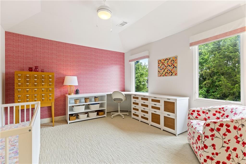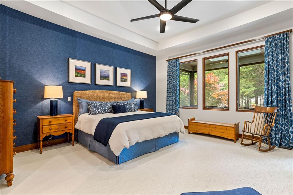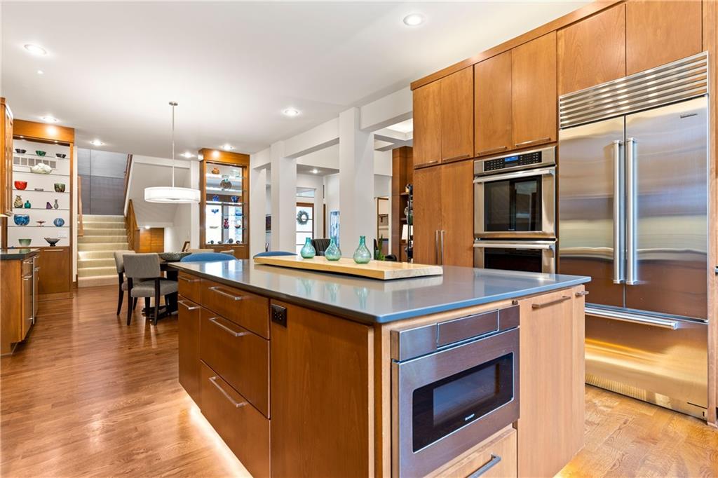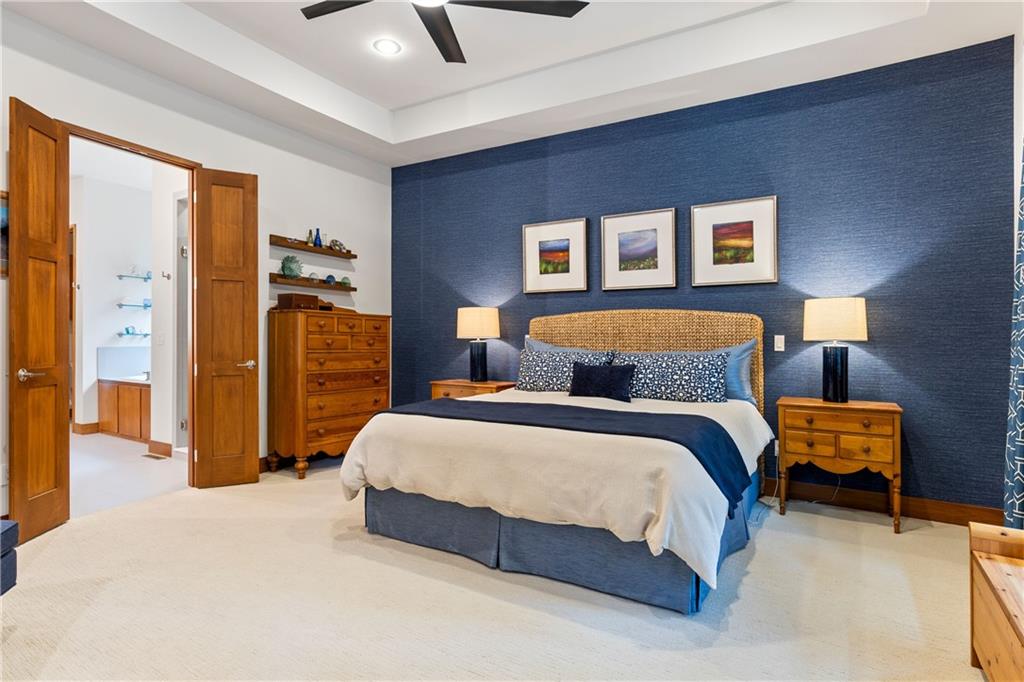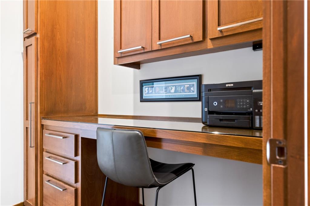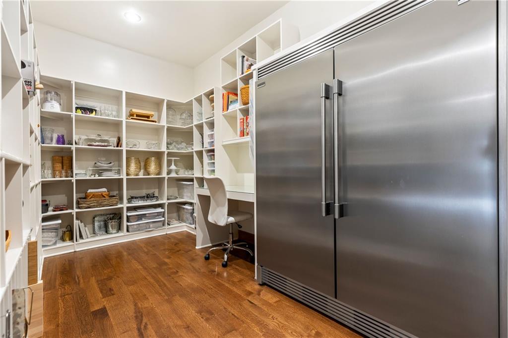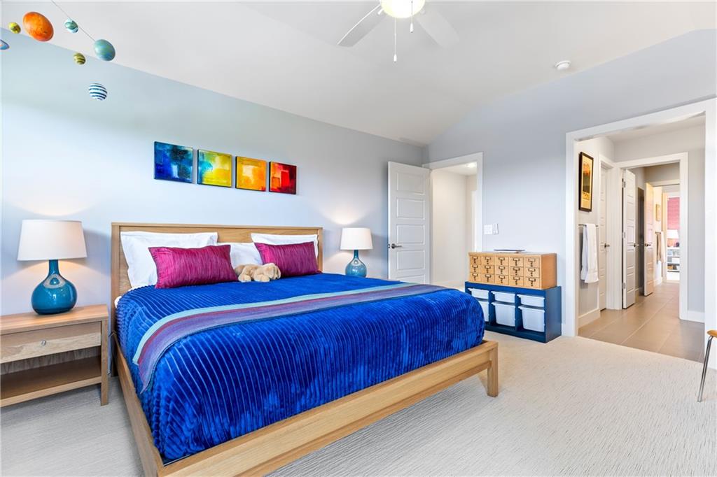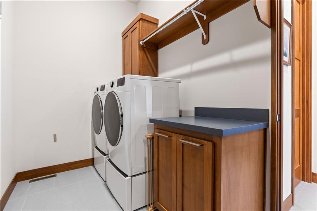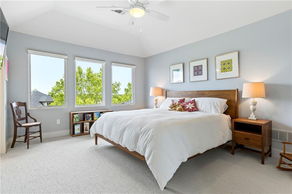 Experience luxury living in this stunning 1.5-story custom home located in the highly sought-after Cedar Creek community. With over 4,500 square feet of thoughtfully designed living space, this home is perfectly situated on a rare .59-acre cul-de-sac lot, offering both privacy and connection to one of Olathe’s premier neighborhoods. The main level features a spacious primary suite with spa-like bath, a private study ideal for remote work, and a dedicated playroom designed for flexibility and family living. The chef’s kitchen is a dream, equipped with a built-in Sub-Zero refrigerator, Thermador double ovens, and a professional-grade gas cooktop, making meal prep and entertaining effortless. The living room showcases a dramatic floor-to-ceiling wood-paneled wall with a sleek fireplace, flanked by built-in shelving, and double sliding glass doors that seamlessly connect to an expansive screened-in patio and dining area—perfect for indoor/outdoor living. Upstairs, you’ll find a bright loft with skylight and three generously sized bedrooms, each offering direct access to a bathroom, providing comfort and convenience for family and guests alike. Located in Cedar Creek, residents enjoy resort-style amenities including three community pools, tennis and pickleball courts, a clubhouse, basketball court, scenic walking trails, and a stocked fishing pond. This home offers an unmatched combination of luxury, location, and lifestyle.
