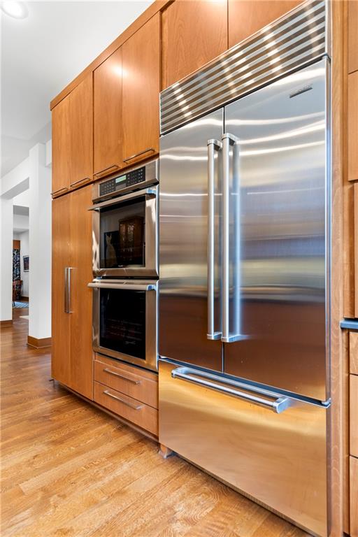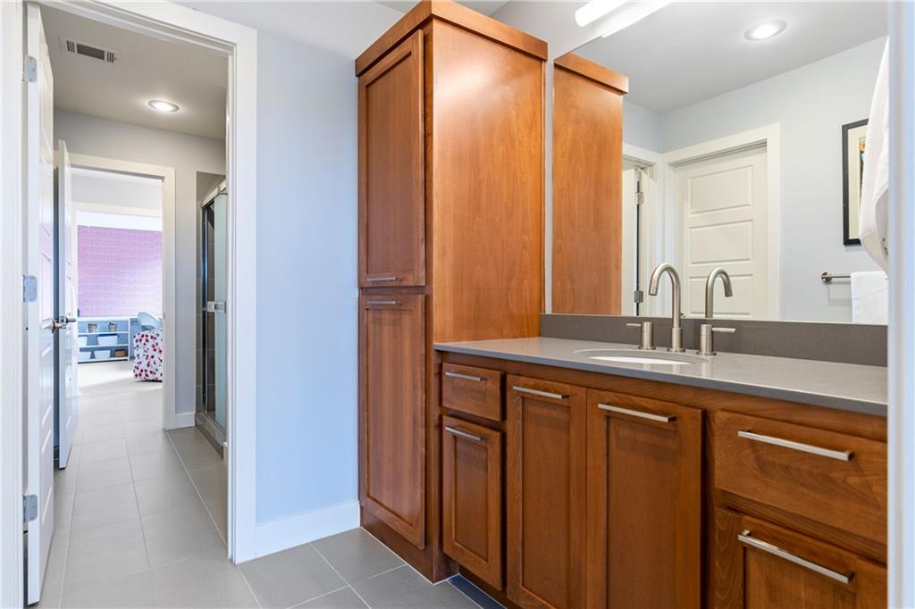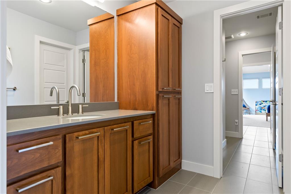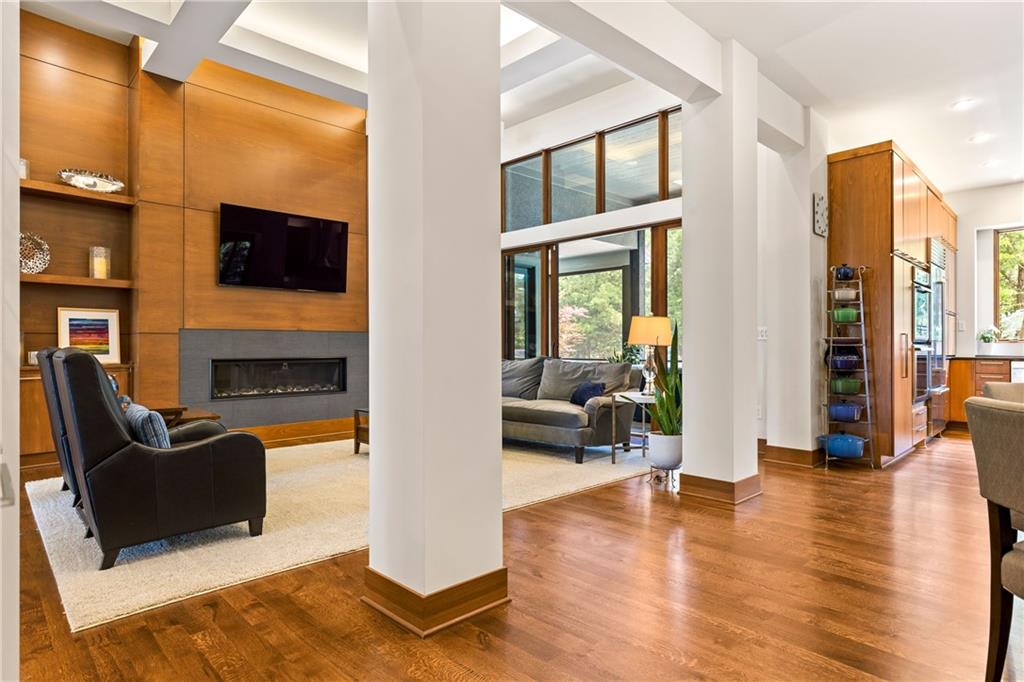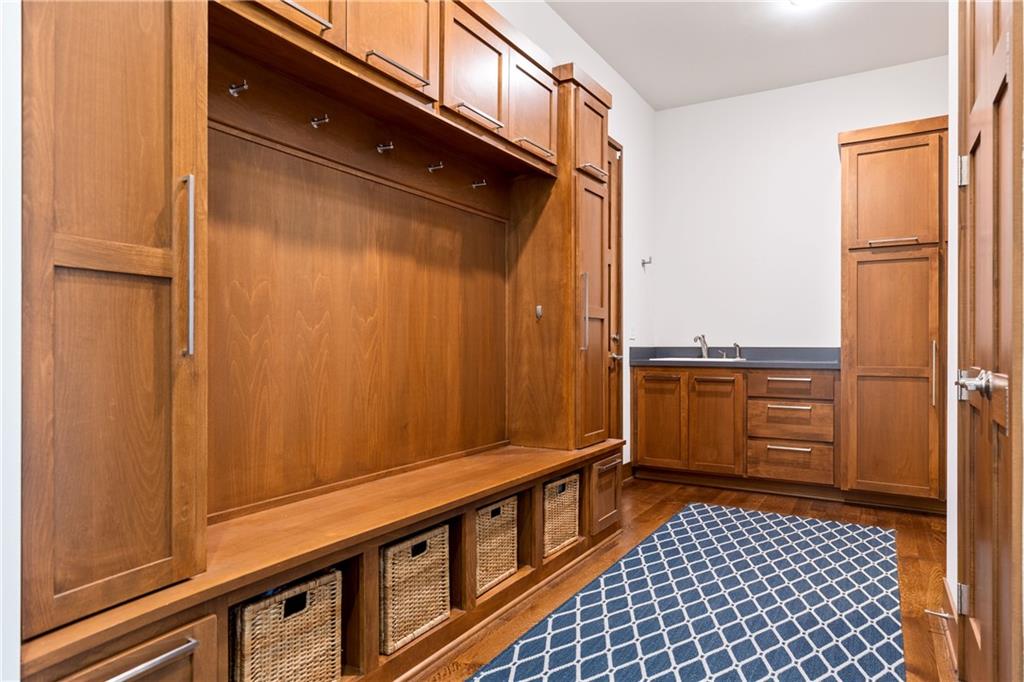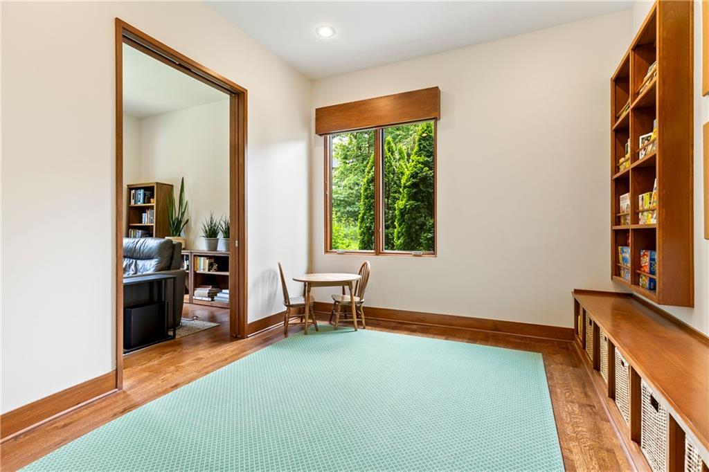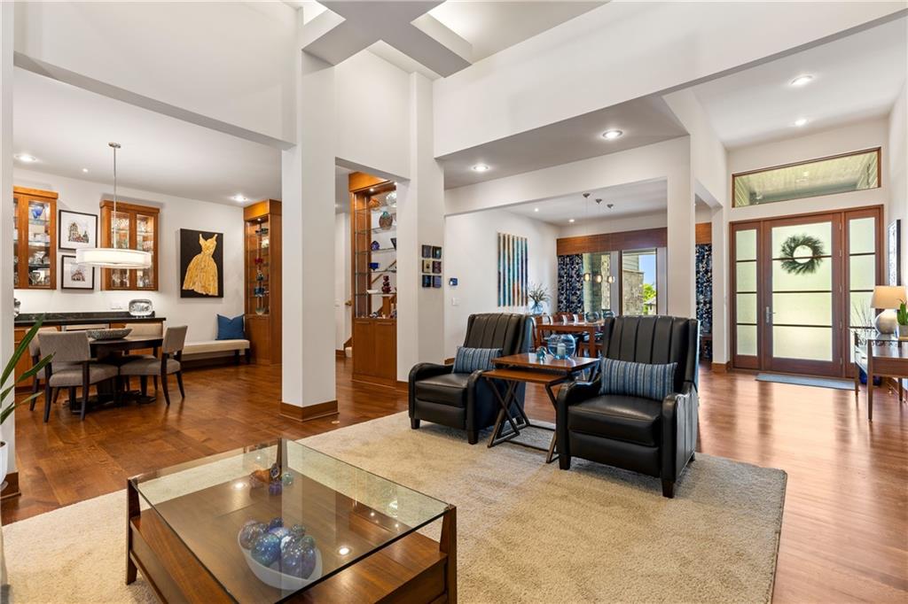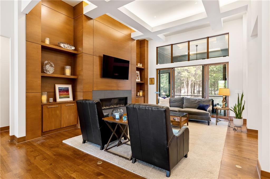 Experience luxury living in this stunning 1.5-story custom home located in the highly sought-after Cedar Creek community. With over 4,500 square feet of thoughtfully designed living space, this home is perfectly situated on a rare .59-acre cul-de-sac lot, offering both privacy and connection to one of Olathe’s premier neighborhoods. The main level features a spacious primary suite with spa-like bath, a private study ideal for remote work, and a dedicated playroom designed for flexibility and family living. The chef’s kitchen is a dream, equipped with a built-in Sub-Zero refrigerator, Thermador double ovens, and a professional-grade gas cooktop, making meal prep and entertaining effortless. The living room showcases a dramatic floor-to-ceiling wood-paneled wall with a sleek fireplace, flanked by built-in shelving, and double sliding glass doors that seamlessly connect to an expansive screened-in patio and dining area—perfect for indoor/outdoor living. Upstairs, you’ll find a bright loft with skylight and three generously sized bedrooms, each offering direct access to a bathroom, providing comfort and convenience for family and guests alike. Located in Cedar Creek, residents enjoy resort-style amenities including three community pools, tennis and pickleball courts, a clubhouse, basketball court, scenic walking trails, and a stocked fishing pond. This home offers an unmatched combination of luxury, location, and lifestyle.