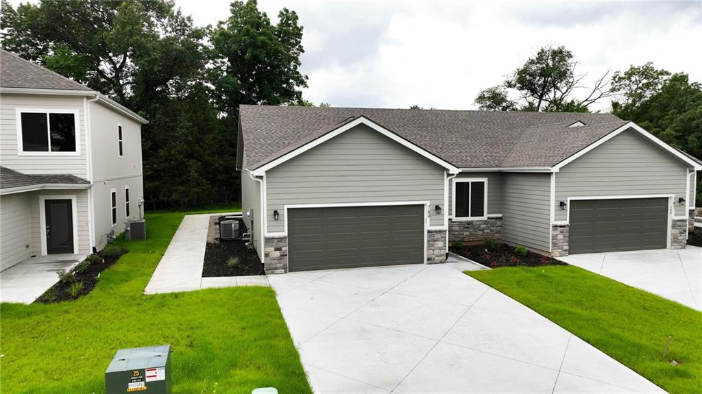 Enjoy a small-town feel just minutes from the city in the desirable Highland Ridge community. This 3-bedroom, 3-bath ranch villa offers an open-concept floor plan with generously sized bedrooms and a finished lower level perfect for additional living or entertaining. The deep garage allows space for multiple vehicles, storage, or recreational equipment. Luxury finishes throughout include granite countertops, tile backsplash, soft-close cabinets and drawers, and floor-to-ceiling tile in the primary shower. 10-foot ceilings and oversized windows provide excellent natural light. The home sits on a generous, mature lot, with upgrade-level features already included at no added cost — a must-see value at this price point. Conveniently located: • 20 minutes to Downtown KC • 5 minutes to The Legends for shopping and entertainment • 15 minutes to the Overland Park business corridor, Garmin HQ, and Panasonic Comfort, quality, and convenience come together here.
