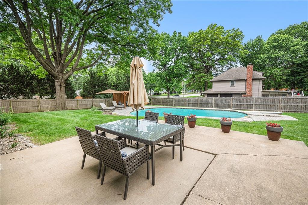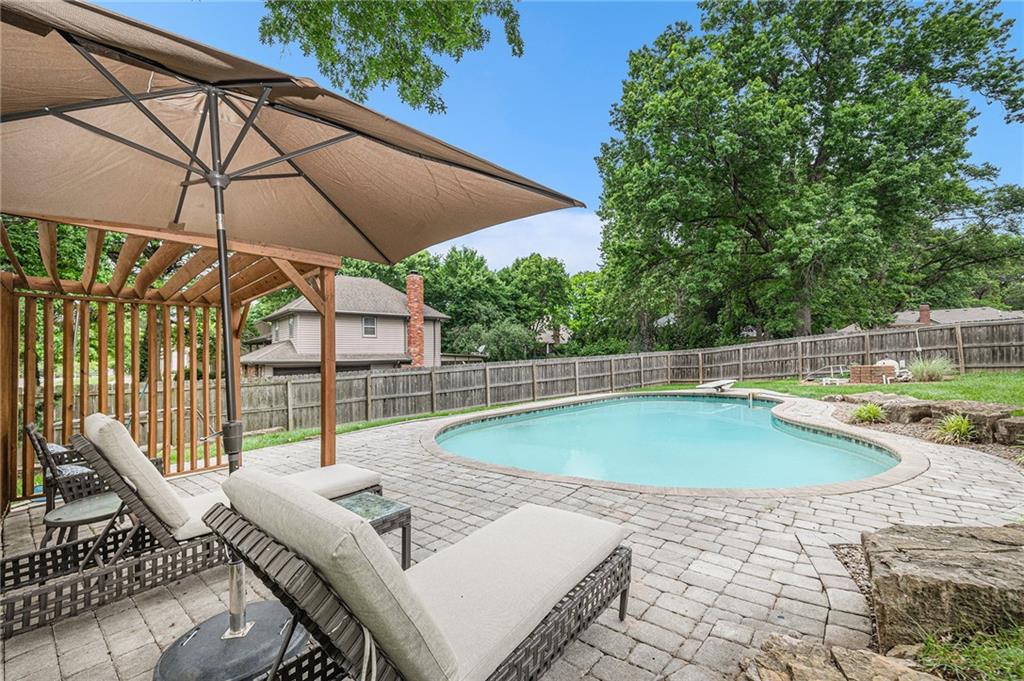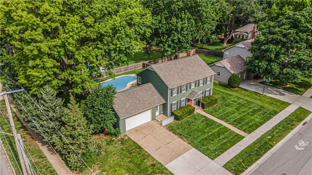 Motivated Seller - Bring and Offer! Cozy Fireplace for Winter, Pool for Summer. Wonderful opportunity to own this Prairie Village home in desirable Kenilworth subdivision - large living areas on the main floor include a living room off the entry, gorgeous great room with fireplace that walks out to the patio & pool, formal dining room and kitchen featuring newer silestone countertops, has peninsula with breakfast bar seating and dining area that looks out to the Salt Water Pool. 4 generously sized bedrooms upstairs. The private primary suite has its own bathroom with updated shower. The back yard have a wood fence and shrubs that give it lots of privacy. The finished basement adds even more living space, including a large recreation room, a non-conforming 5th bedroom, and a private half bath. Step outside to a beautifully landscaped, privacy fenced backyard with in-ground salt water pool, mature trees and a spacious patio perfect for relaxing and entertaining. 1st floor laundry, hardwood floors throughout, large finished basement w/new carpet Plenty of storage in the unfinished portion of the basement. Close to shopping and easy highway access. Located just a short walk from Meadowbrook Park and Franklin Park