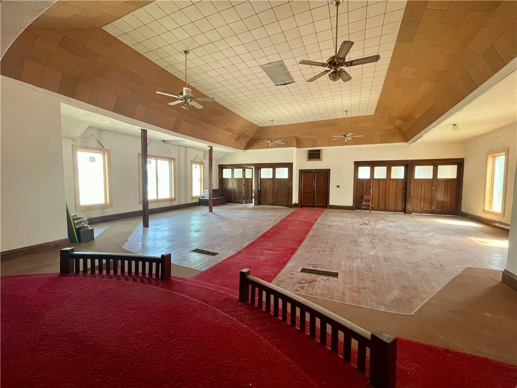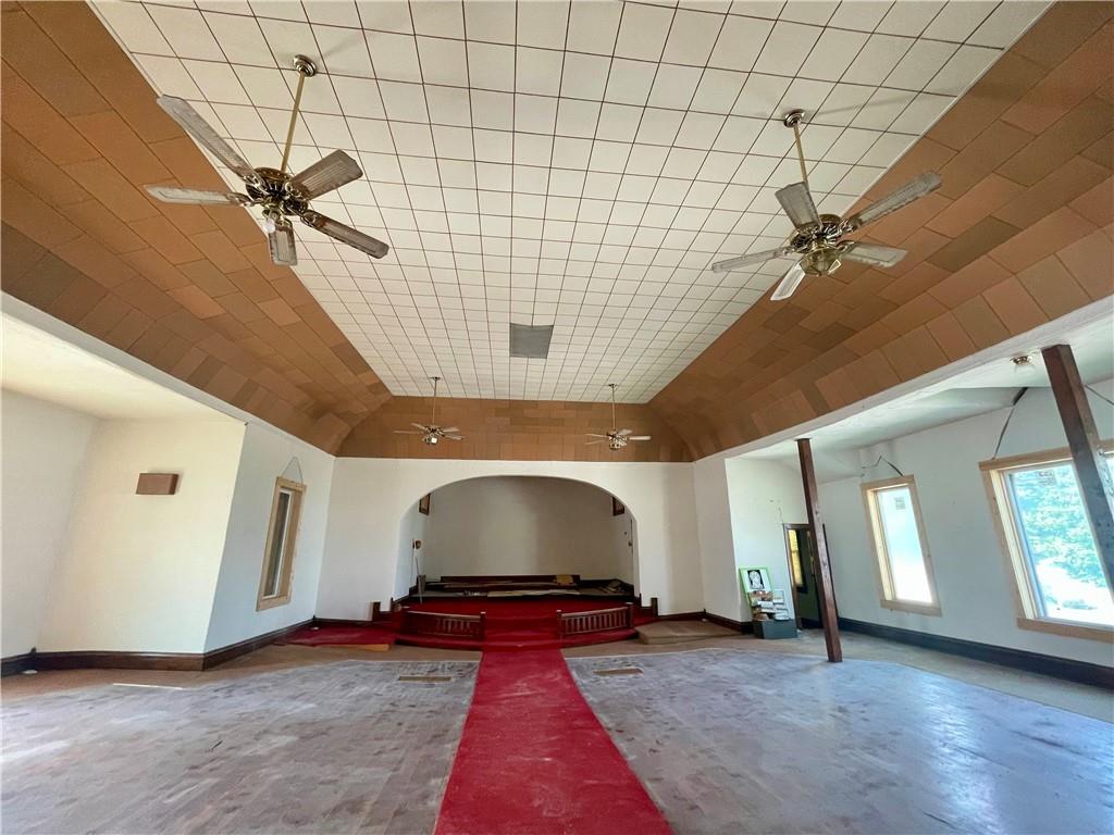 Historic Church is ready for a new owner and possibly a whole new use! Enter this massive 5136 square foot church through the doors to an expansive finished lower level with a full kitchen and 2 non conforming bedrooms. Head upstairs to see the sanctuary with heart pine flooring, 2 stained glass windows, gorgeous wood doors lining the back walls, plus three additional rooms. The lower level kitchen includes a refrigerator and 2 electric oven/ranges. There are 2 furnaces and one AC window unit that cools the upstairs sanctuary. There are two half baths on the lower level. So many possibilities for what this could be transformed in to! Start dreaming now and schedule your showing!