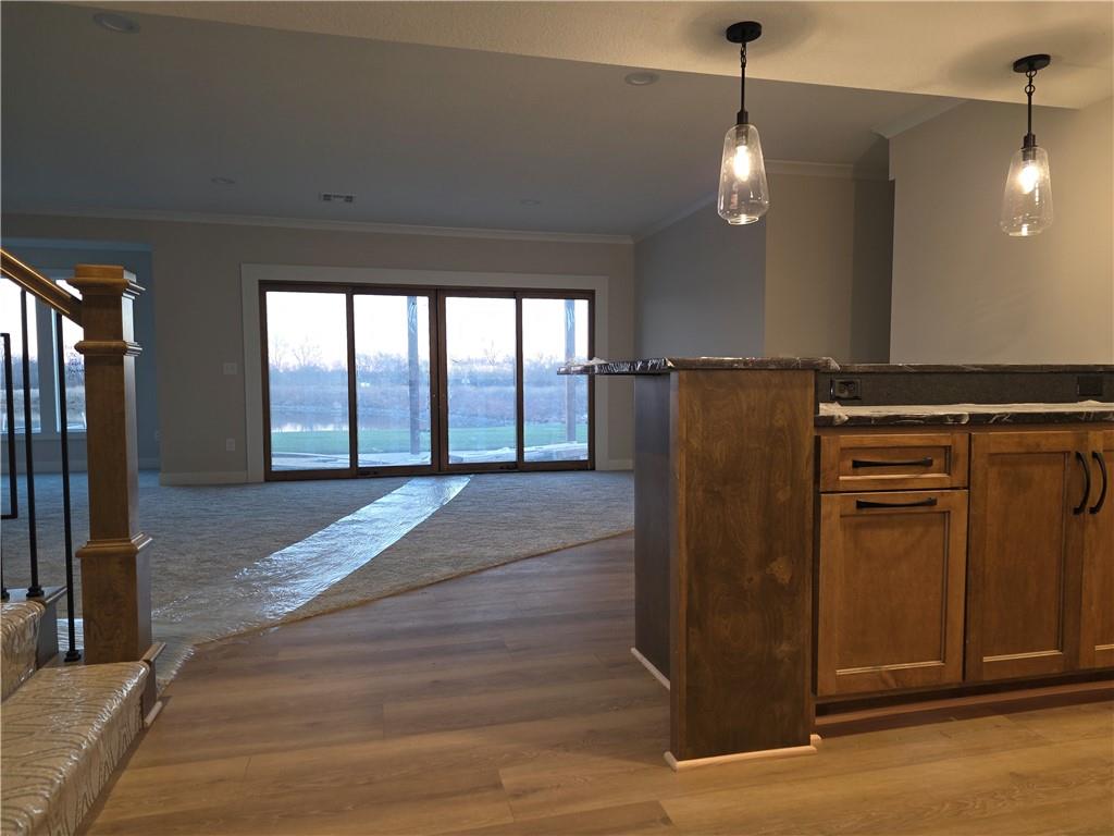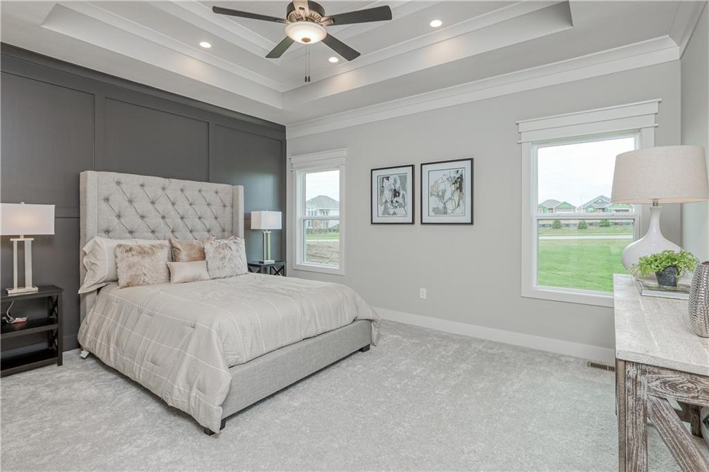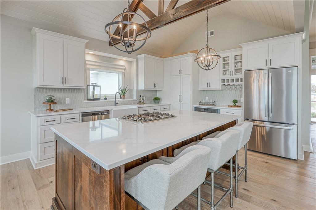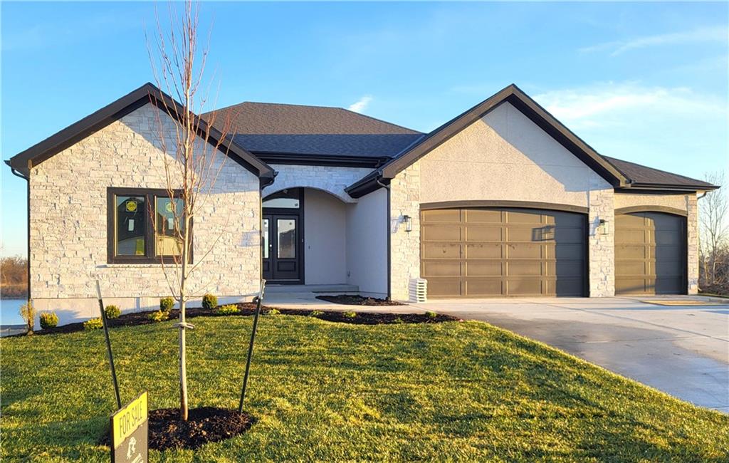 Lot 122 The "Prairie Rose" by McQueen Homes! Spectacular home and LAKE views in a GOLF COURSE COMMUNITY!! Professional photos coming soon. The finished photos and tour are from a previous similar home. Can be ready in 30 days or less! Reverse plan with open Great Room full of windows with fireplace. Open to the Kitchen and Dining Area with large Island & walk in pantry. The Primary Bedroom boasts a double box up ceiling and windows to view the lake! Additional higher transom windows on a feature wall for added light. Unique Primary Bathroom has a walk in shower and a stand alone tub with a view of the lake! Second Bedroom and Bath are on the main level. The Lower Level walkout Rec Room includes a wet bar, entertainment area and gorgeous upgraded sliding doors to your outdoor living. A full bath and Bedrooms 3 & 4 complete the lower level. Good storage! Large covered deck and additional uncovered deck for viewing the Lake and enjoying the outdoors as well as a large patio at the lower level walk out. All homes in the Boulder Estates come with irrigation system and fully sodded yard. Riprap seawall at property edge also included. Convenient highway access. Ten minutes to the Legends and 30 minutes to the airport and most other parts of the metro area as well as Lawrence. Community pool, play area, basketball, tennis and pickleball courts. Wonderful restaurant open to the public. Acclaimed Basehor-Linwood Schools!