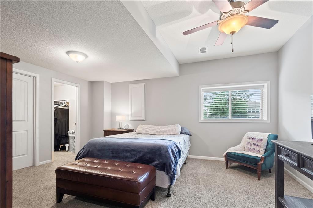 Welcome to this beautifully designed 1.5-story stucco home, nestled at the top of a quiet cul-de-sac in one of Overland Park’s most desirable areas. Boasting over 5K sqft and a spacious layout ideal for both entertaining and everyday living, this home sits on a large lot with a fence on three sides and a generous yard—perfect for privacy and play. Step inside to warm wood floors, a grand vaulted great room, and a functional main-level layout that includes a primary suite with spa-like bath featuring a walk-in shower, soaking tub, dual vanities, and a massive walk-in closet with direct access to the laundry area. The main level also offers a mudroom, bar area with an additional refrigerator, breakfast nook, and a covered porch—ideal for enjoying morning coffee or evening sunsets. Upstairs, you’ll find a versatile lofted flex space, office nook, and three additional bedrooms—two connected by a Jack & Jill bath with walk-in closets, plus a fourth bedroom with a private en suite and its own walk-in closet. The daylight lower level adds incredible bonus space with two additional bedrooms, each with walk-in closets, a shared full bath, recreation room, and abundant storage for all your needs. This home checks every box—space, style, functionality, and location!