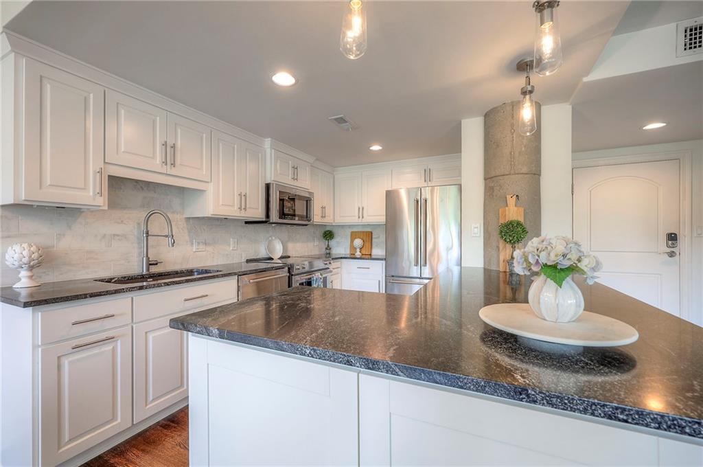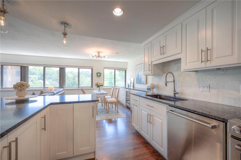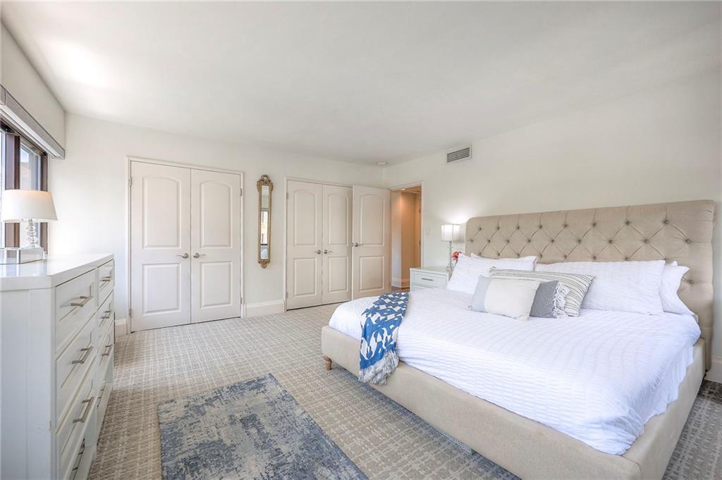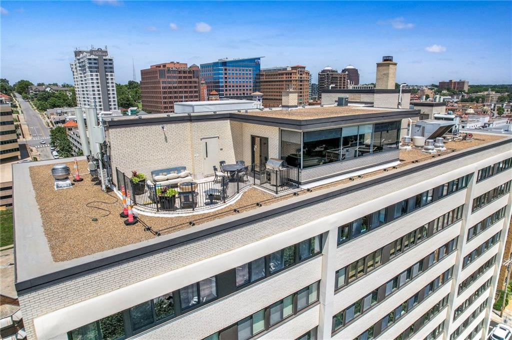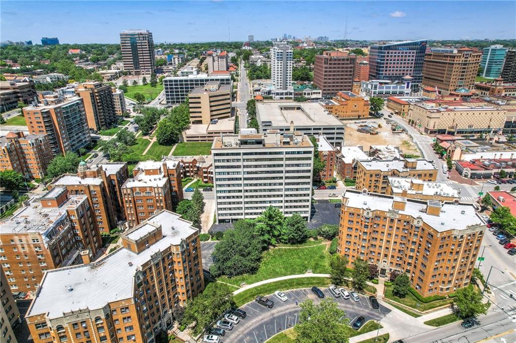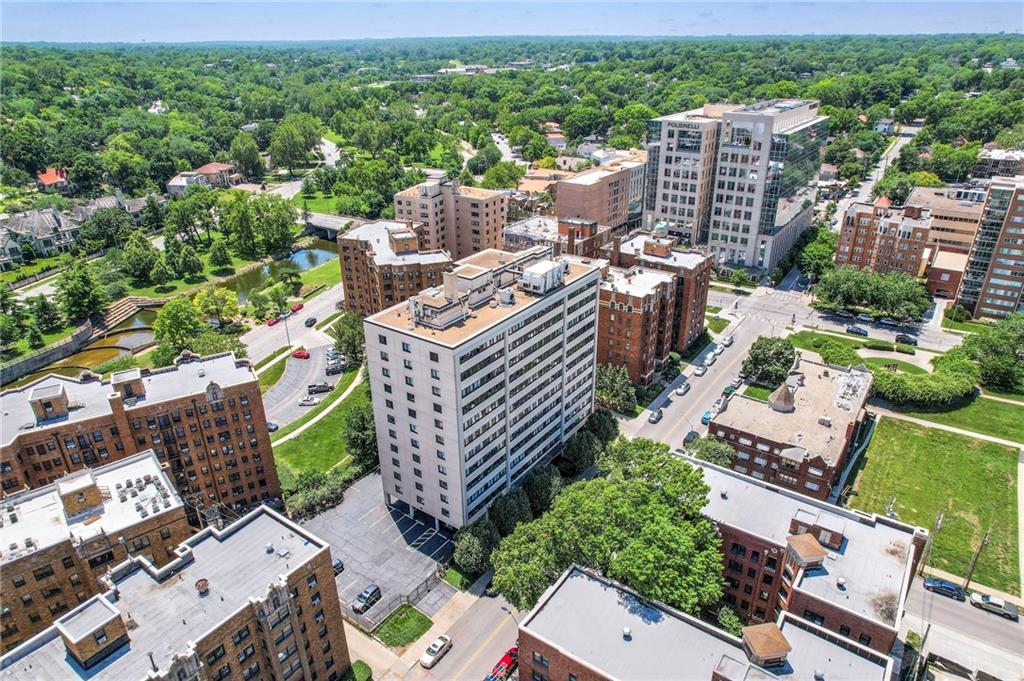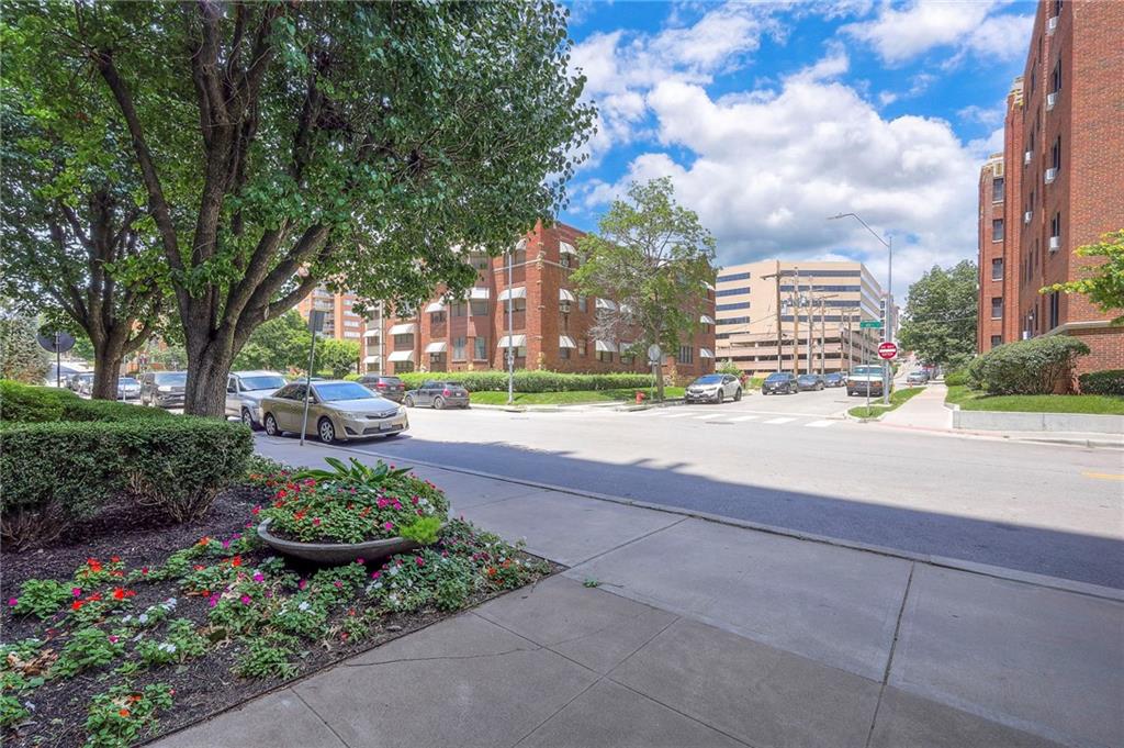 Stunning Plaza Corner Unit with Views, Designer Finishes & Garage Parking in the Winston Churchill Building! Welcome to this exquisitely renovated corner residence in the coveted Winston Churchill Building, perfectly situated just off the Country Club Plaza on a charming side street. This "Perfect 10" combines luxurious city living with comfort, style, and unbeatable convenience. Step into a light-filled, open-concept floor-plan that impresses from the moment you enter. With nine oversized, south-facing windows, this home is bathed in natural light and offers panoramic views of Brush Creek and Ward Parkway. Enjoy designer finishes throughout, including custom smart shades, designer paint, and elegant hardware that elevate every room. Remodeled chef’s kitchen is ideal for entertaining, featuring: Honed granite countertops, marble backsplash, custom cabinetry, stainless-steel appliances, oversized bar with seating, additional custom built-in and bar in the separate dining area for ample storage. Spacious great room is perfect relaxing or entertaining! Serene and spacious primary bedroom has extensive windows with custom shades and expansive closet space. Spa-like bath features modern tilework, stylish fixtures, and ample storage. With in unit laundry and six generous closets throughout convenience and storage is never an issue. Additional highlights include: Highly sought-after assigned underground garage parking, in-unit laundry, Google Fiber ready, and hardwood flooring. The Churchill building offers premium amenities, including a rooftop terrace with breathtaking views, community room for entertaining or relaxing, fitness center, and secure entry. This well designed and fully renovated unit is ideal for year-round living or a luxurious second home, just steps from all the dining, shopping, and entertainment the Plaza has to offer and perfectly located to the first phases of the planned "Poet's Alley" Country Club Plaza renovations.