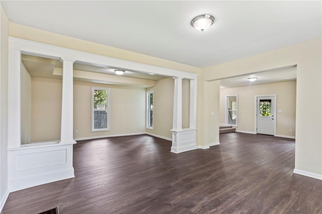 Check out this huge, recently remodelled, 4 bedroom 1 and a half bath home nestled just minutes away from downtown Ottawa, Ks! This home offers an abundance of open space, two living areas, natural light, and beautiful hardwood floors throughout the main level. The main level has plenty of space for gatherings, and so much more with a beautiful screened in porch/sunroom off the front entrance. Upstairs you will find 4 large sized bedrooms with a finished bathroom. The outside of this property has a big two car detached garage with space for tools, crafts, or whatever hobbies you have! The property also has additional parking beside the garage and behind it as well.