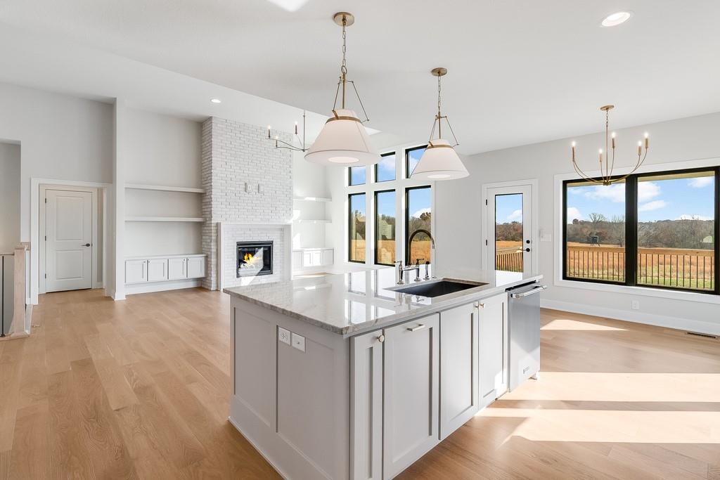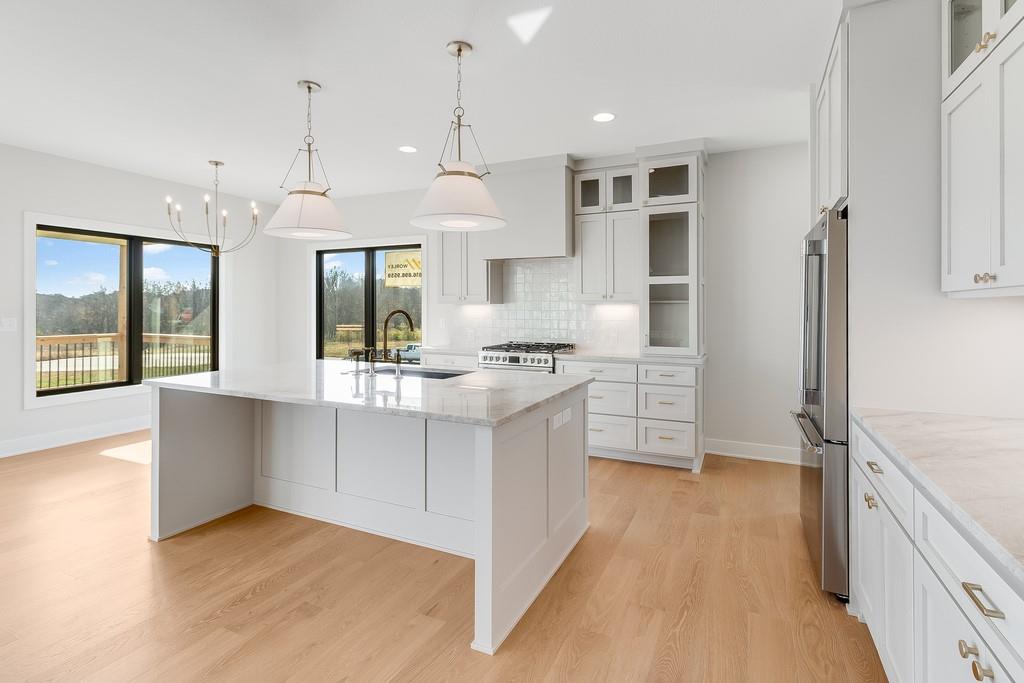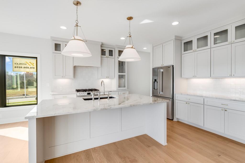 Discover the perfect blend of luxury, function, and craftsmanship in this stunning reverse 1.5-story home by Worley Construction, located on a spacious 1/2-acre lot in The Estates at Knoll Creek—a premier Raymore community with a walking trail and a neighborhood fishing pond. This thoughtfully designed home offers 4 bedrooms, 3 bathrooms, and 2,787 finished square feet filled with custom finishes and quality materials. The open-concept main level features hardwood floors, a spacious great room with a stone fireplace, and a gourmet kitchen with quartz countertops, custom cabinetry, a walk-in prep pantry, and a wood vent hood. The primary suite includes a spa-like bath with a walk-in tiled shower, dual vanities, and a generous walk-in closet that connects directly to the laundry room. The finished walkout lower level adds two more bedrooms, a full bath, a large rec room with a full wet bar, and a rare bonus: a basement garage bay—ideal for storing lawn equipment, tools, or creating the perfect workshop or hobby space. Enjoy outdoor living on the covered composite deck overlooking the treed green space. With upscale design, flexible living spaces, and a quiet, scenic neighborhood, this home offers the lifestyle today’s buyers are looking for.