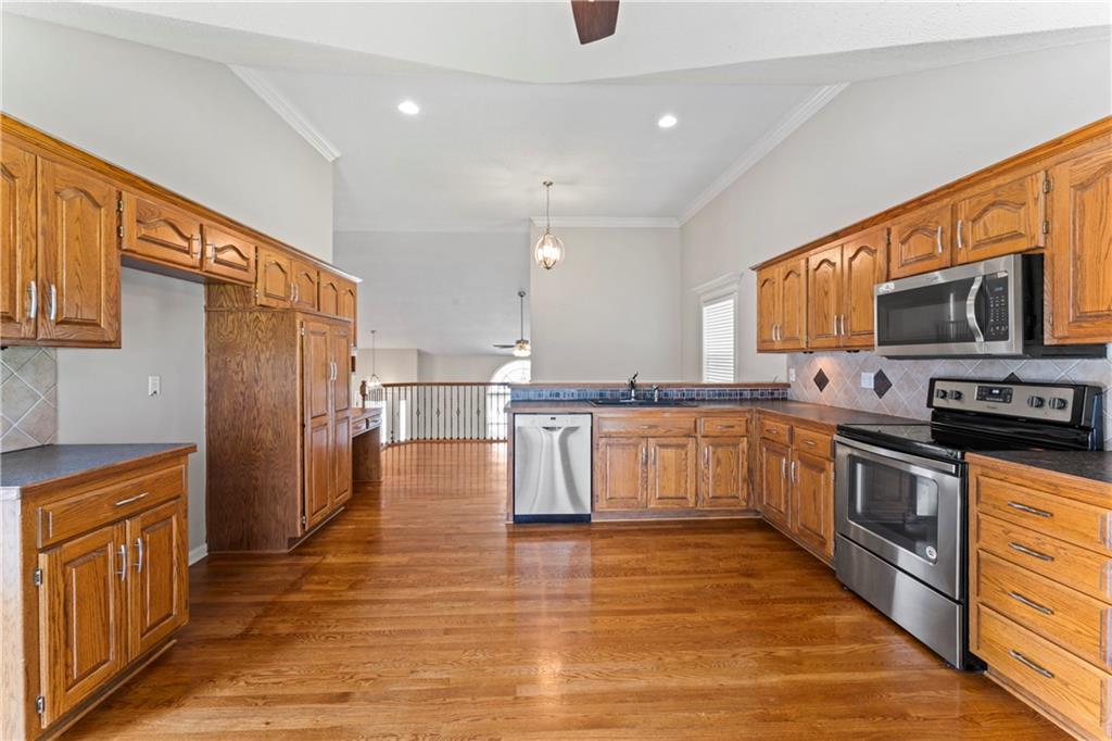 This 3-bedroom, 3-bathroom home is packed with thoughtful updates and custom touches throughout! Inside, you'll find built-in cabinetry in nearly every corner—from the kitchen’s desk and shelving nook to the garage’s storage system and deep wash sink. The full finished basement is an entertainer’s dream with tile flooring, a wet bar, dishwasher, wine fridge, built-in sink, keg tap, and even a full-size fridge—perfect for hosting game nights or weekend hangouts. Step outside to a spacious 14x14 deck, freshly stained and ready for summer BBQs, overlooking a large corner yard that gives you all the outdoor space you need. Recent exterior paint (Sept. 2023) and a newer roof (Oct. 2017) add peace of mind. With a smart layout and features that make daily living feel just a little more special, this home is ready for its next chapter. Neighborhood amenities include a pool and a playground!