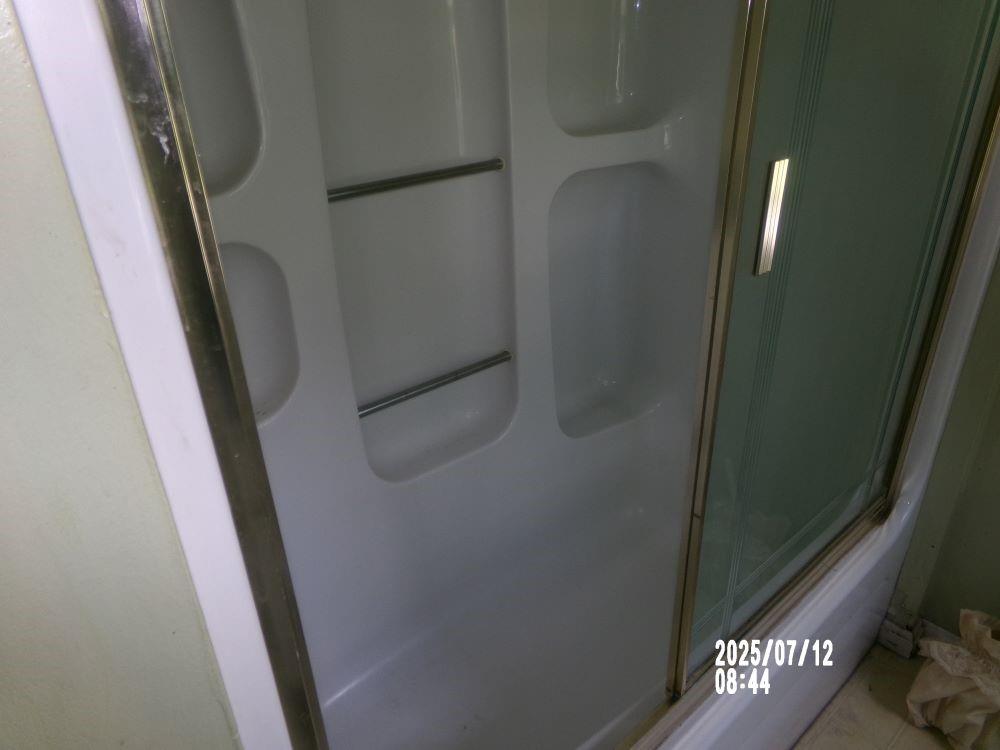 Bathroom view of a shower with door