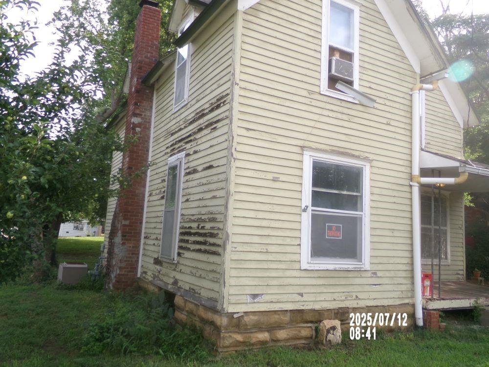 View of property exterior with a chimney