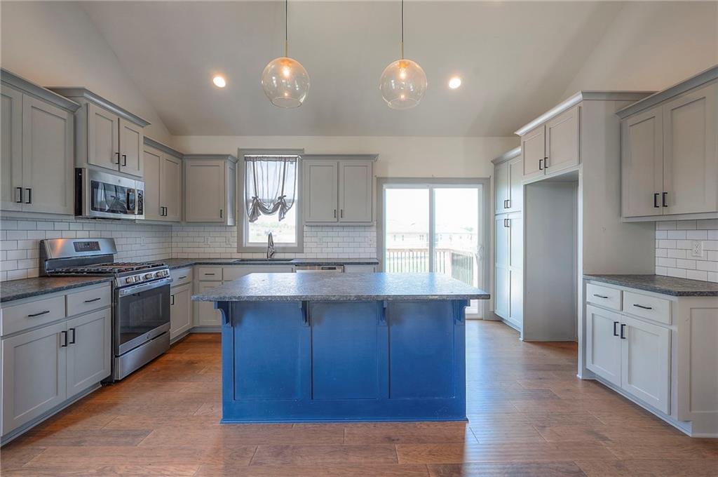 Seller is very negotiable and says "bring an offer!". Discover an incredible opportunity in Tomahawk Valley with this 3-year-old Modern Farmhouse “SIERRA” plan—a stylish open floorplan with soaring vaulted ceilings and a layout perfect for entertaining. Located in a new-build neighborhood still under development, this home offers many extras that would be costly upgrades in new construction, including a finished walkout basement, privacy fence, and built-in garage storage—adding value and convenience from day one. Buyer to confirm room measurements, taxes, and HOA information. The gourmet kitchen features painted custom cabinets, granite countertops, a large island, pantry, and beautiful hardwood floors, while the large great room showcases a striking stone fireplace. The vaulted master suite includes a walk-in shower and generous closet space. Situated on a corner lot backing to a walking trail and greenspace, this home is perfect for your morning coffee or evening walks. The finished walkout basement with a sub-basement for additional storage provides even more space for your lifestyle. While this home needs some cosmetic repairs, it is being sold As Is and is priced to reflect the updates needed, offering a fantastic deal for the neighborhood. With some personal touches, you can unlock the full potential of this well-designed home in a prime location. Don’t miss the chance to invest in a property with great potential, valuable upgrades, and plenty of upside in a highly desirable community!
