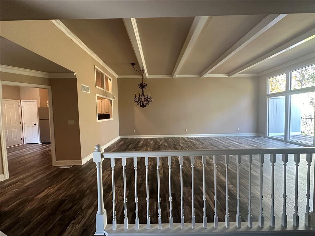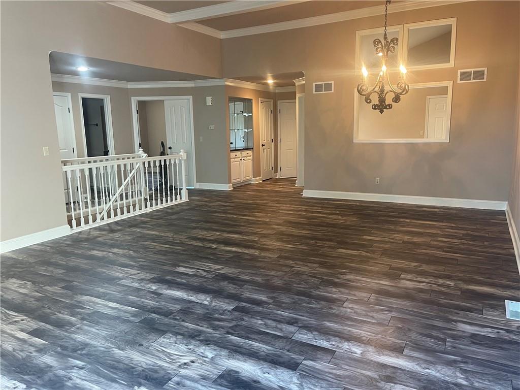 This spectacular home perfectly blends elegance with functional living space. Fully renovated, the generous floor plan offers three bedrooms, two & a half baths, along with a study/den. Upstairs living boasts an open living and dining space with 11’ beamed ceilings, fireplace, and breathtaking wooded views. Spacious kitchen featuring vaulted ceiling, high-quality stainless-steel appliances and fixtures, quartz countertops, and refinished cabinets. Large master suite offering an ensuite bath with double sinks, jacuzzi tub, and separate shower. The main level also offers a full-size washer/dryer closet and half bath. The expansive fully carpeted lower-level family room enjoys a walk out patio and corner fireplace. Two spacious bedrooms, one full bath, oversized washer/dryer/storage closet, and additional utility room storage finish this wonderful lower-level plan. Located in the coveted Montrachet community, known for its maintenance provided amenities, including a neighborhood pool & clubhouse, this neighborhood offers great access to I-435 and I-35. Boasting newly refreshed exterior landscaping and a secluded rear wooded view, this home is the epitome of scenic living. Don’t miss this opportunity!