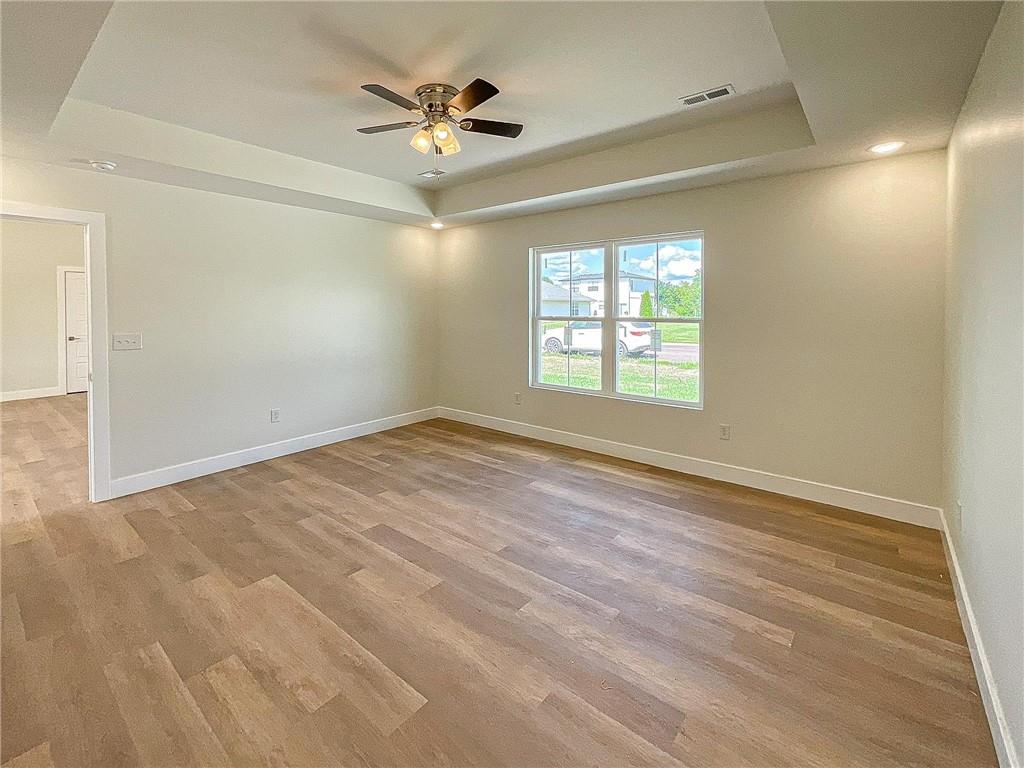 Brand New Ranch style home built with quality and attention to details. Covered front porch leading you to an open floorplan living space with large living room, high ceilings, recess lighting and water proof vinyl floors throughout. Great kitchen with island, granite counters, oven/range, built in dishwasher, microwave and eat in area with sliding glass doors to patio. Master suite with oversized walk in closet and full bathroom. 2 more bedrooms on the main level and second full bathroom nearby. Laundry/mud room leading to a 2 car attached garage. Central heating and cooling system with heat pump, vinyl thermal pane windows and engineered wood siding. Located on a corner lot, at the edge of town, surrounded by newer homes and easy access to 50 Hwy and walking distance to grocery store.