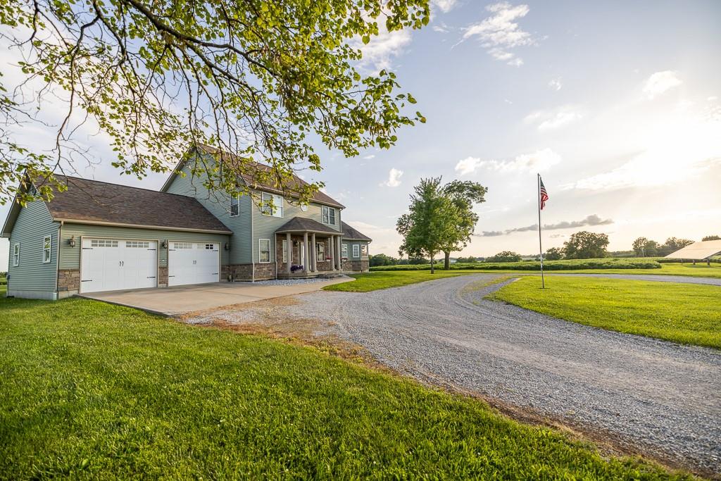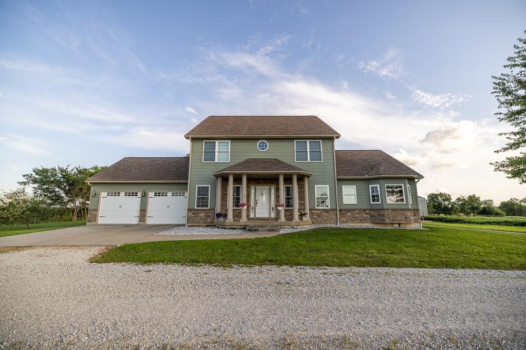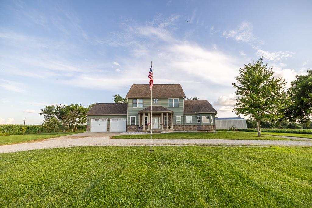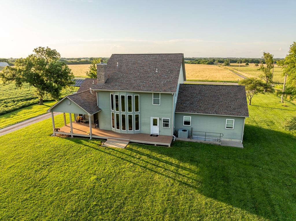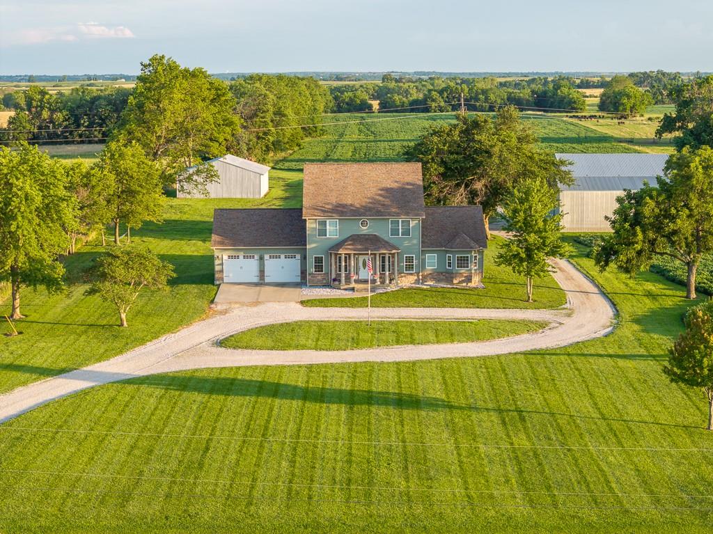 ADDITIONAL ACREAGE AVAILABLE! Nestled on 5 scenic acres east of Passaic on blacktop State Route D, this impressive 4-bedroom, 3-bath home offers the perfect blend of comfort, style, and functionality. Boasting 2,677 square feet across two stories, the home features high ceilings, hardwood floors, and detailed wood trim throughout, creating a spacious, light-filled layout. The main floor offers a large master suite and an open-concept kitchen complete with granite countertops, custom cabinetry, and a walk-in pantry. The upper level includes a loft-style common area and three generously sized bedrooms, perfect for family or guests. A walk-up unfinished basement offers flexibility for future expansion or storage, and the two-car garage adds practical convenience. Outside, enjoy the manicured lawn and large partially-covered deck, perfect for relaxing or hosting. A solar panel system adds energy efficiency and long-term value. For those with livestock or hobby farm dreams, the property is set up with two barns, a hay shed, and a welded pipe working system. The soil is very fertile, and outside the lawn, the ground is currently farmed. All of this is located in a quiet country setting just 50 minutes from the KC metro, and is within the Ballard School District. This well-maintained property checks all the boxes for rural living with modern convenience—don’t miss your chance to make it yours.