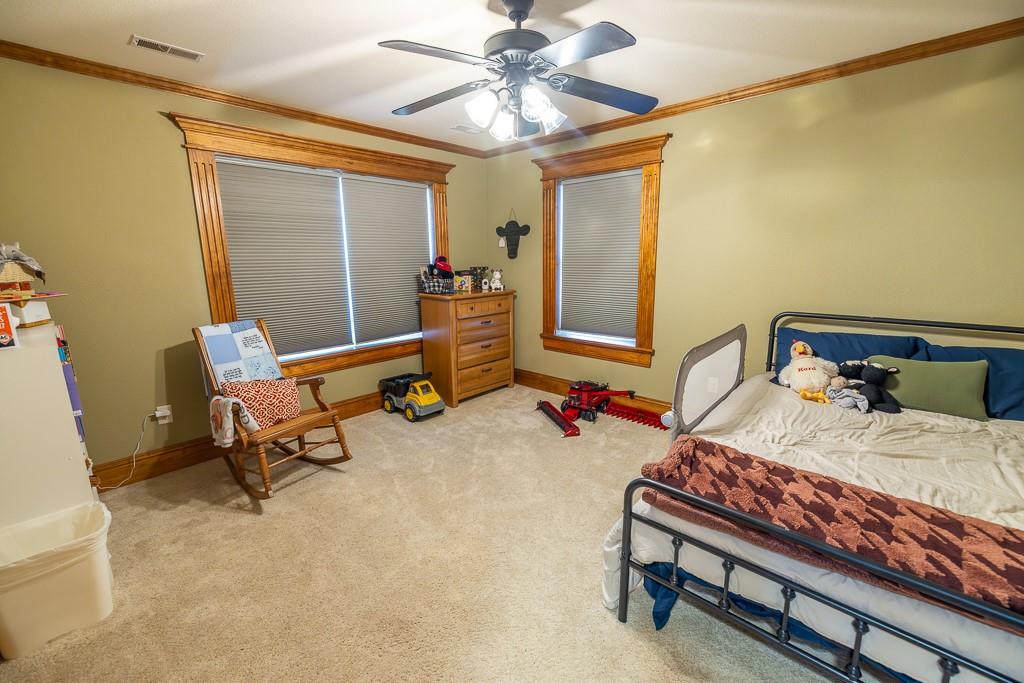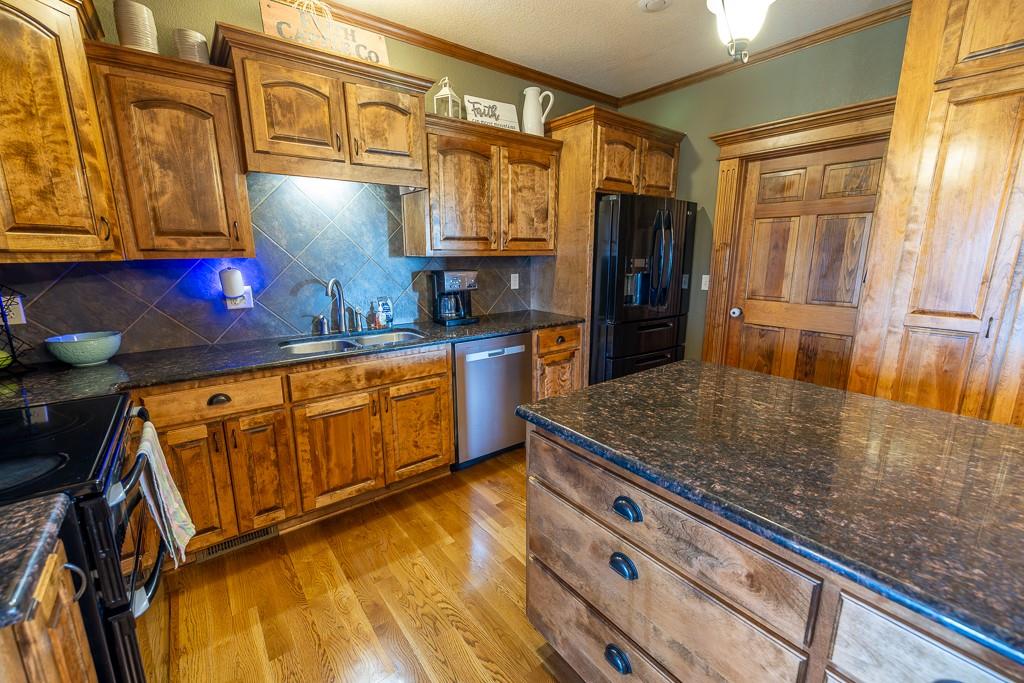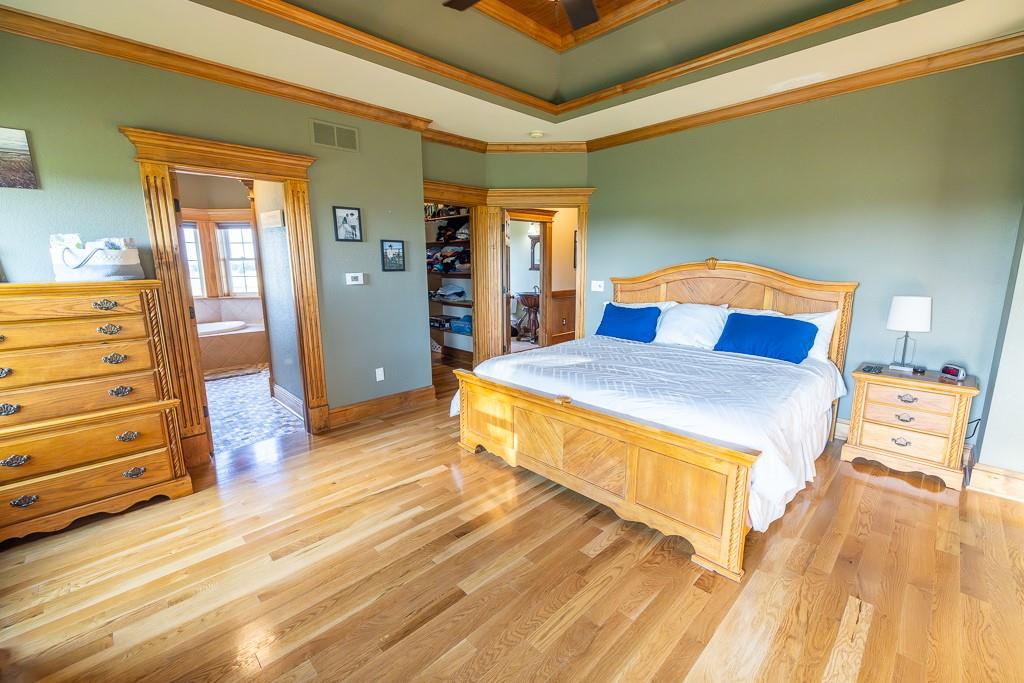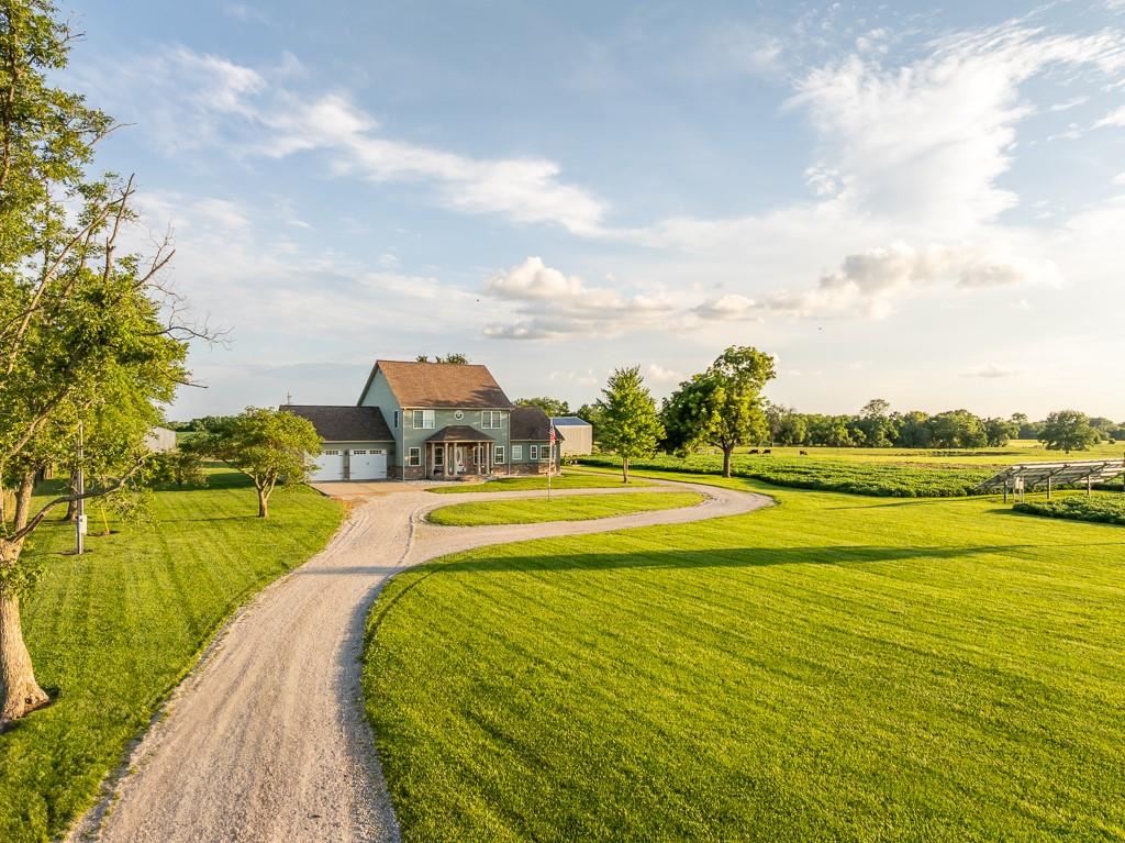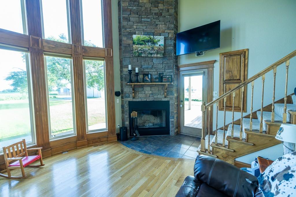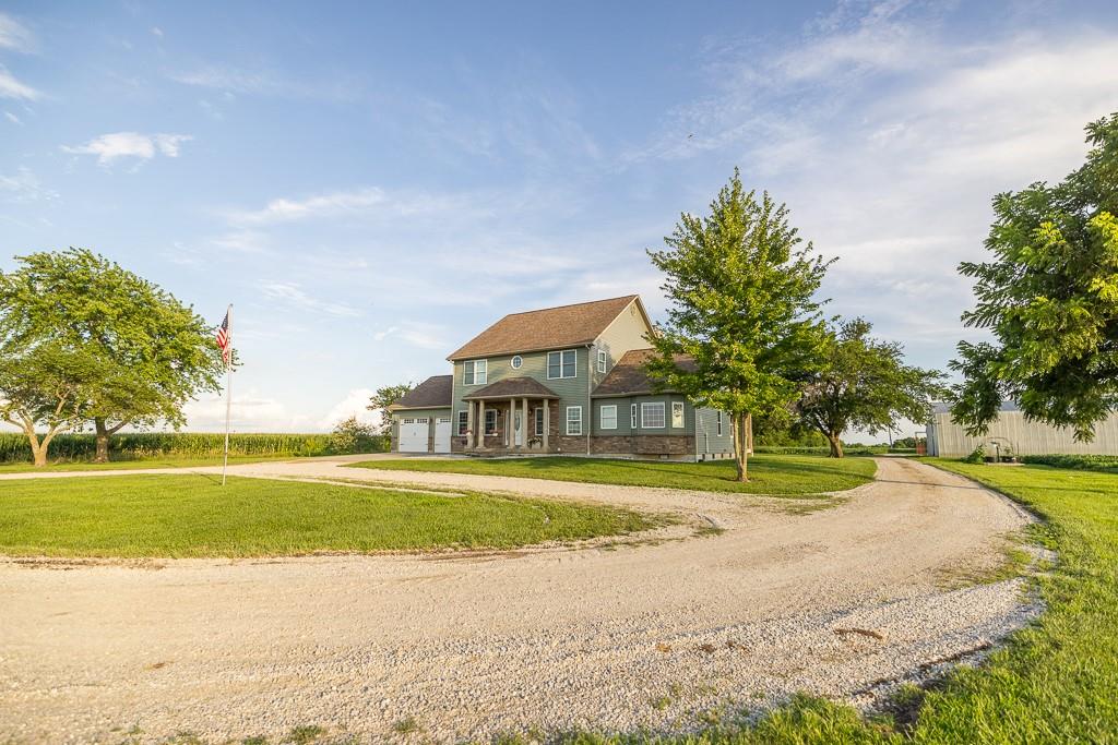 ADDITIONAL ACREAGE AVAILABLE! Nestled on 5 scenic acres east of Passaic on blacktop State Route D, this impressive 4-bedroom, 3-bath home offers the perfect blend of comfort, style, and functionality. Boasting 2,677 square feet across two stories, the home features high ceilings, hardwood floors, and detailed wood trim throughout, creating a spacious, light-filled layout. The main floor offers a large master suite and an open-concept kitchen complete with granite countertops, custom cabinetry, and a walk-in pantry. The upper level includes a loft-style common area and three generously sized bedrooms, perfect for family or guests. A walk-up unfinished basement offers flexibility for future expansion or storage, and the two-car garage adds practical convenience. Outside, enjoy the manicured lawn and large partially-covered deck, perfect for relaxing or hosting. A solar panel system adds energy efficiency and long-term value. For those with livestock or hobby farm dreams, the property is set up with two barns, a hay shed, and a welded pipe working system. The soil is very fertile, and outside the lawn, the ground is currently farmed. All of this is located in a quiet country setting just 50 minutes from the KC metro, and is within the Ballard School District. This well-maintained property checks all the boxes for rural living with modern convenience—don’t miss your chance to make it yours.