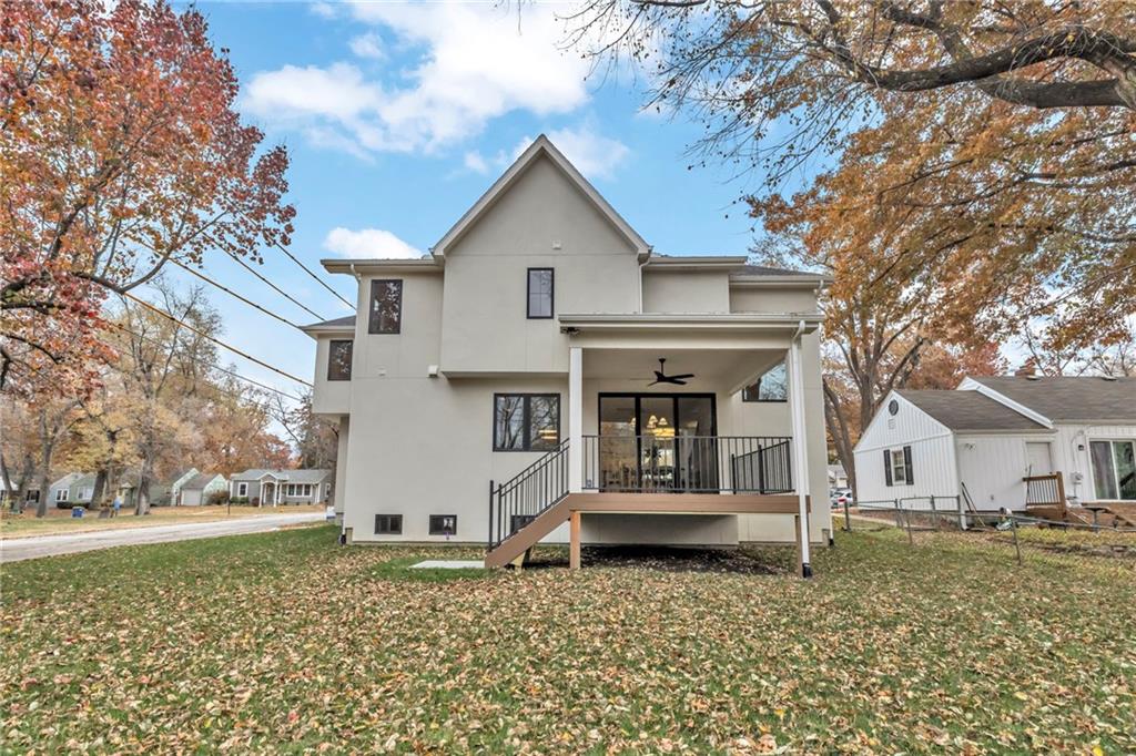 New Construction in prime location ready now! This home is fully finished as of 11/17/25. Located just minutes from Prairie Village Shops, the Plaza, Johnson Drive Shops and within walking distance to multiple parks, Highlands Elementary and Indian Hills Middle School. This home features a flexible floor plan with open-concept kitchen, dining, and living areas, all with white oak hardwood flooring on the main level. The kitchen includes a large window over the sink overlooking the backyard, an oversized island, a spacious walk-in pantry with a custom coffee station, and a 36" gas range with a designer hood. Just off the garage entry, a mudroom with a built-in drop zone adds everyday convenience. The dining area boasts a 9' sliding glass door that opens to a covered deck—perfect for entertaining. Upstairs, the oversized primary suite includes a luxurious bathroom and a large walk-in closet with custom shelving. The laundry room connects directly to the primary closet and is also accessible from the hallway—an ideal layout for busy households. The finished lower level offers a guest bedroom with a full bath, a large living area, a flex space perfect for a home office or gym and an optional bar area. Exterior highlights include a side-entry garage that enhances curb appeal, full acrylic stucco with black standing seam metal roof accents and a custom cast stone arch surrounding the covered front porch. High-end finishes throughout. Soft-close cabinet drawers, 8' doors on the main level, solid core doors throughout, inset hardwood floor vents, hardwood stair treads to the second floor, LVP flooring throughout the lower level, custom fireplace surround, sprinkler system, new fence, battery backup sump pump and more.