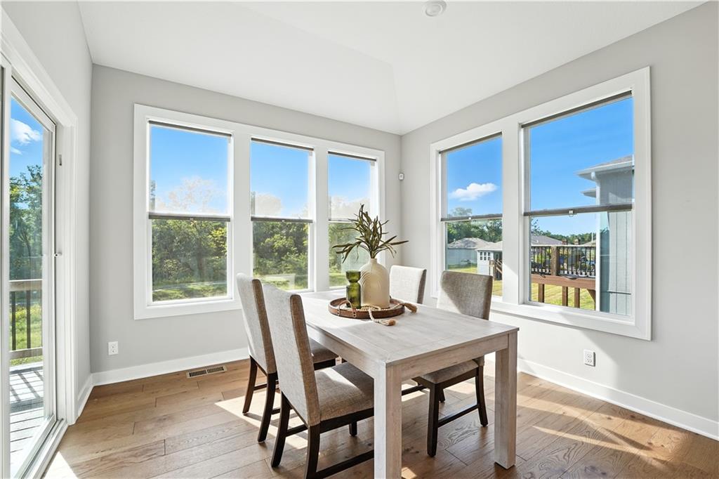 READT FOR OCCUPANCY ! This three-year-old villa will make your heart SING! Picture yourself sipping coffee with serene wooded views and a trail for your daily adventures. Thanks to the HOA’s lawn and snow duties, your weekends are all about relaxation. The Somerset Floor Plan is a chef’s dream, featuring a sprawling kitchen, white cabinets, a gas range, and a pantry so large that it might have its own zip code! The main level features two cozy bedrooms, a laundry area, and a dreamy covered deck, perfect for taking in the sunset. Wake up in the primary suite to Mother Nature’s finest artwork. Downstairs, the walkout basement flaunts a second family hangout, two extra bedrooms, a hall bath, and more storage than you can shake a stick at. Just a hop, skip, and a jump from KCI and downtown, this is a home you simply can't miss!