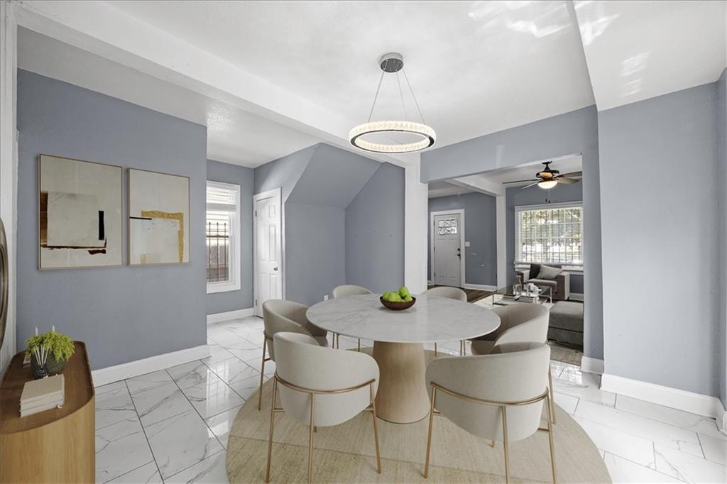 MOTIVATED SELLER!! Move in ready renovated two-story home! This updated home offers style, function, and convenience in one perfect package. The spacious living room features luxury vinyl plank flooring and flows seamlessly into the dining room with tile flooring, bay window, and a convenient half bath. The kitchen showcases granite countertops and tile floors and opens to a versatile laundry/mudroom that walks out to the fully fenced backyard with a patio—perfect for relaxing or entertaining. Off-street parking via the private driveway adds extra convenience. Upstairs, you’ll find a spacious primary bedroom, a second bedroom, and a full bathroom with tile flooring and a tiled shower. Located just minutes from downtown Kansas City with easy access to major highways, this home is a must-see!