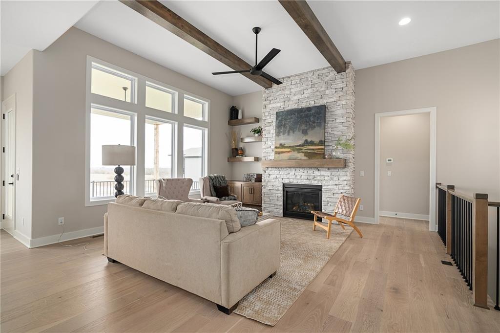 Pauli Homes brings their popular Sicilian 2 plan to Johnson Counties newest maintenance provided community, Prairie Canyon! Conveniently located just west of K-7 off of College Blvd.! This fabulous Rev. 1.5 sty. is on a cul-de-sac, perched on a ridge, backing east with extended beautiful views! Open concept: Great rm / Dining / Kitchen w/spacious island, large walk-in pantry, FP & includes a versatile 1st flr. guest rm. or Den. L-shaped lower-level design allows for plenty of recreation space & family/media area plus 2 bedrooms w/a share bath. Exceptional quality & value you've come to expect from from Pauli Homes in a signature Prime Development Co. Community!