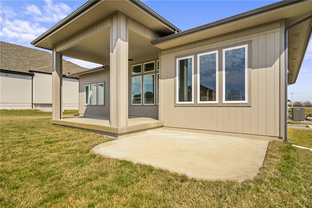 Discover the "Sicilian II" from Pauli Homes — a contemporary take on the ever-popular "Riviera" floor plan. It preserves the style and functionality you love while fitting into a more compact, intelligently designed footprint. The bright, open main level spans 1,826 square feet and is built for effortless daily living and effortless entertaining. It features a generous great room that flows naturally into a stylish kitchen anchored by a large island — ideal for meal prep, casual dining, or hosting friends. Abundant windows surround the dining area, bathing the space in natural light. The luxurious primary suite offers a true retreat, complete with a spa-like bathroom featuring a freestanding tub, dual quartz vanities, and a spacious walk-in shower. Laundry is conveniently accessible from both the primary closet and the main hallway. Downstairs, the finished lower level delivers an impressive 1,294 additional square feet of versatile living space, including a recreation room, a walk-up wet bar, a flexible bonus room, two bedrooms, a full bathroom, and abundant storage options. Come see this gorgeous home in Olathe's newest maintenance provided community! Maintenance includes: lawn, trimming, mulch, sprinkler system & snow removal.