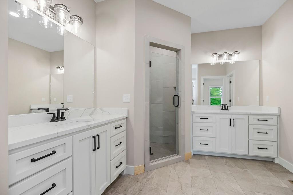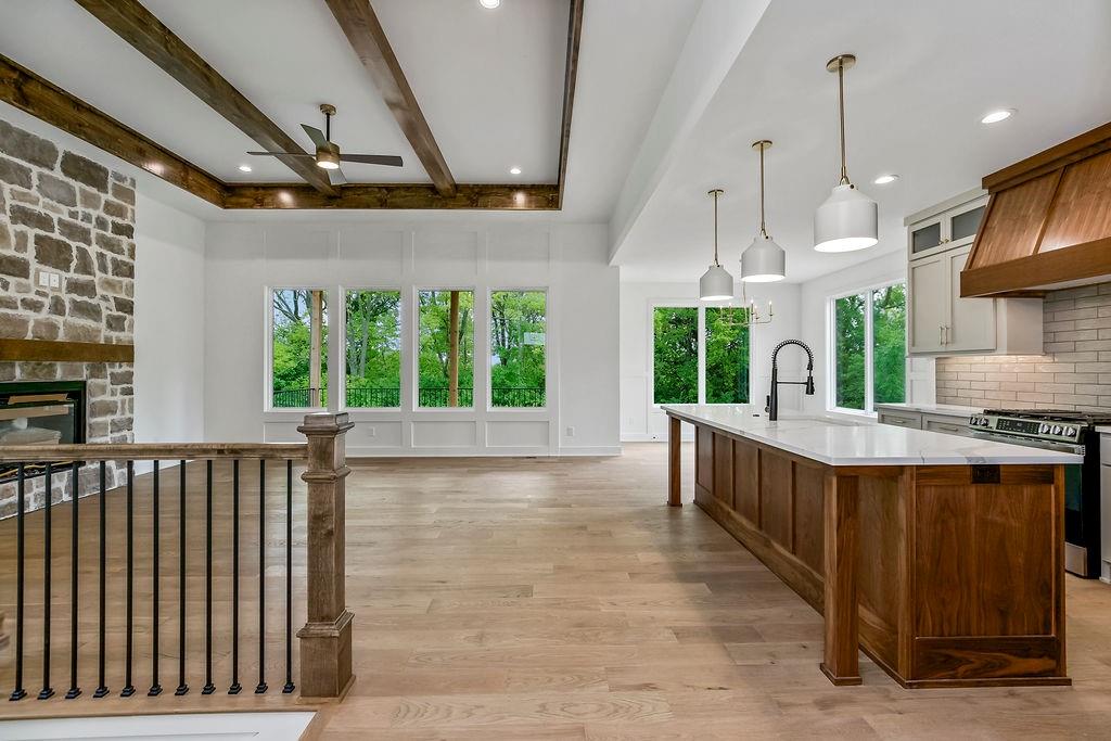 Highly sought after "Grant" plan by Heartland Developments, expanded and ready in 30 days! This true ranch features 3 beds and 2 baths on the main floor with a finished lower level. Oversized great room with tons of windows, hardwoods and floor to ceiling stone fireplace. Incredible kitchen with 9' island, custom walnut cabinets, GE appliances, hidden pantry and quartz tops. Master suite with double vanities, walk in shower and huge closet. Finished lower level with huge rec room, full bath, additional bedroom and bar with island. Plenty of unfinished storage too! Home sits on a great irrigated lot backing to treed green space.