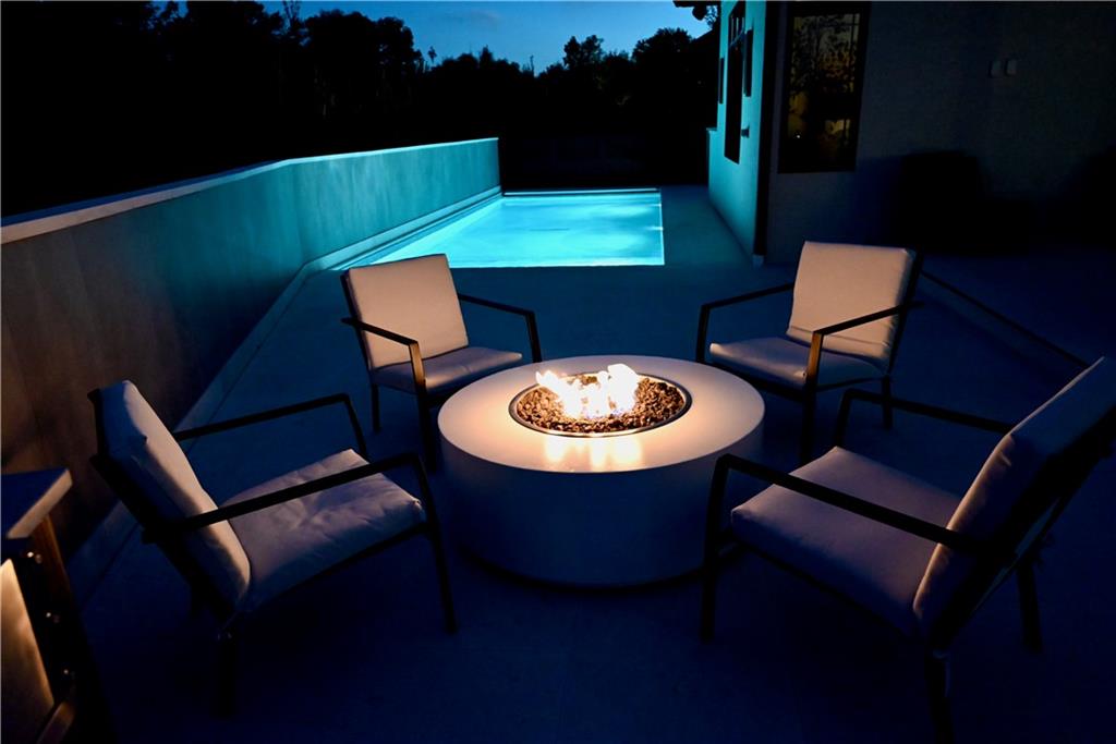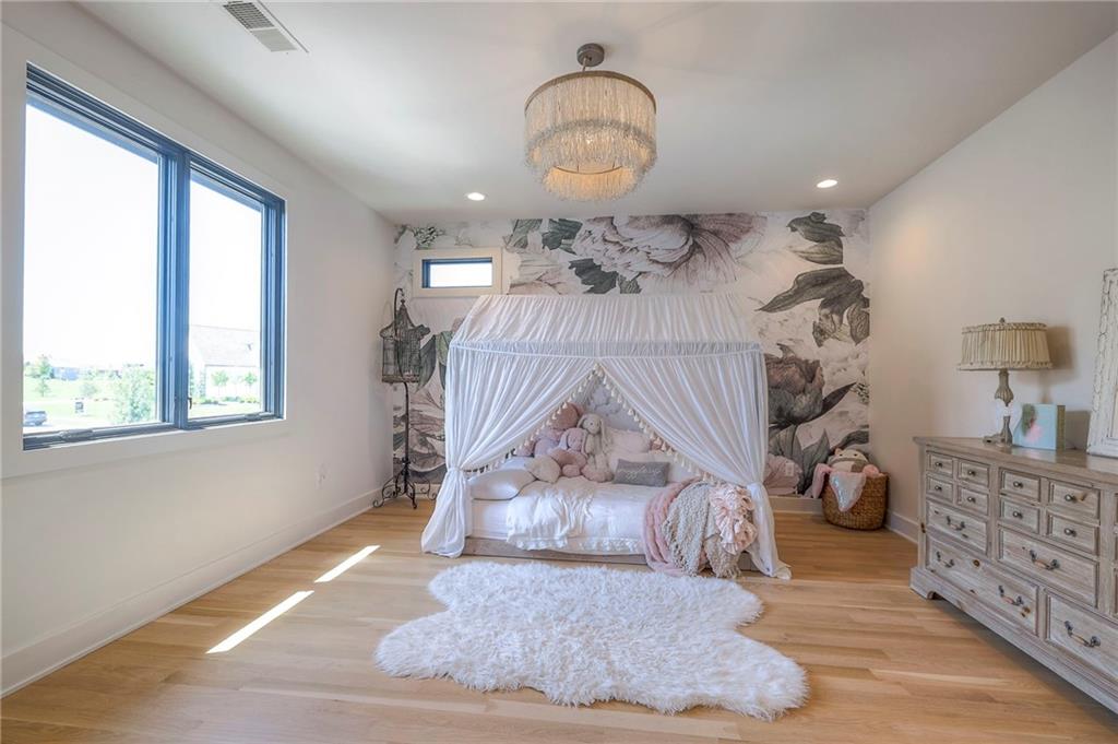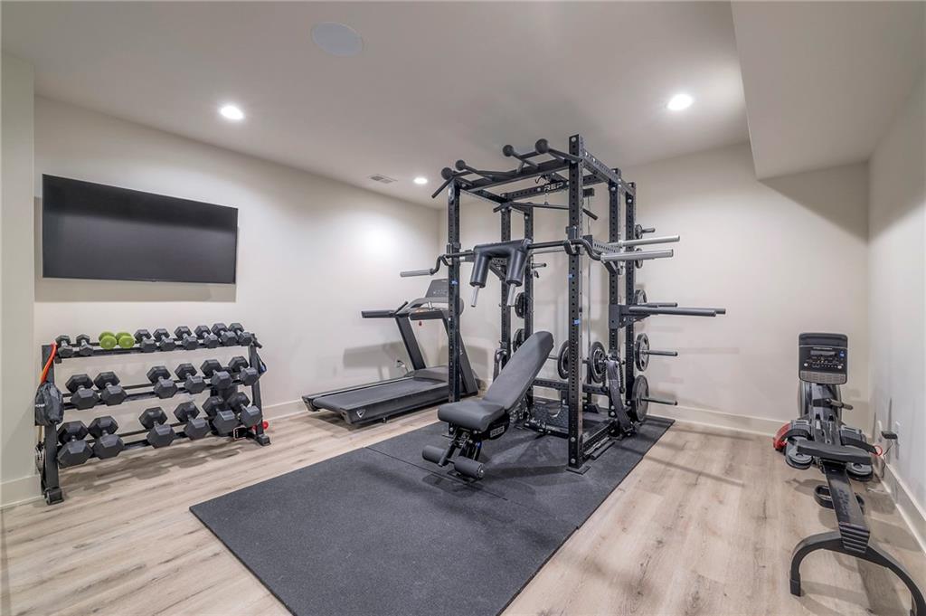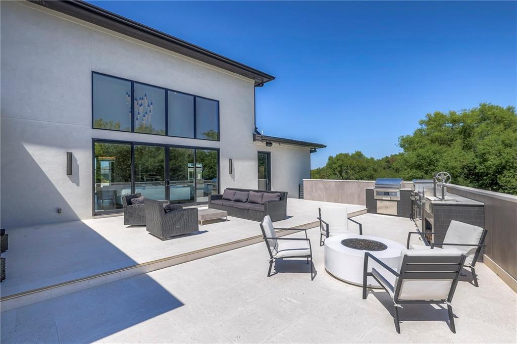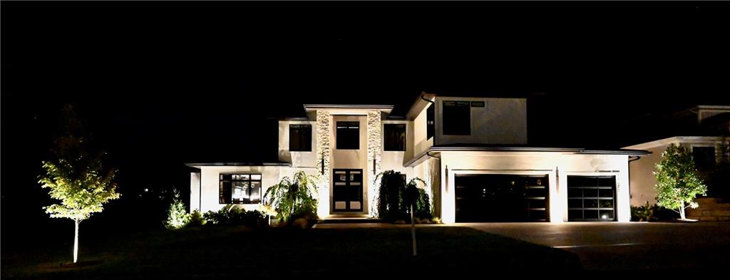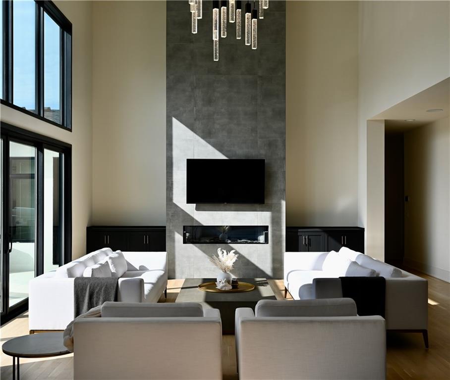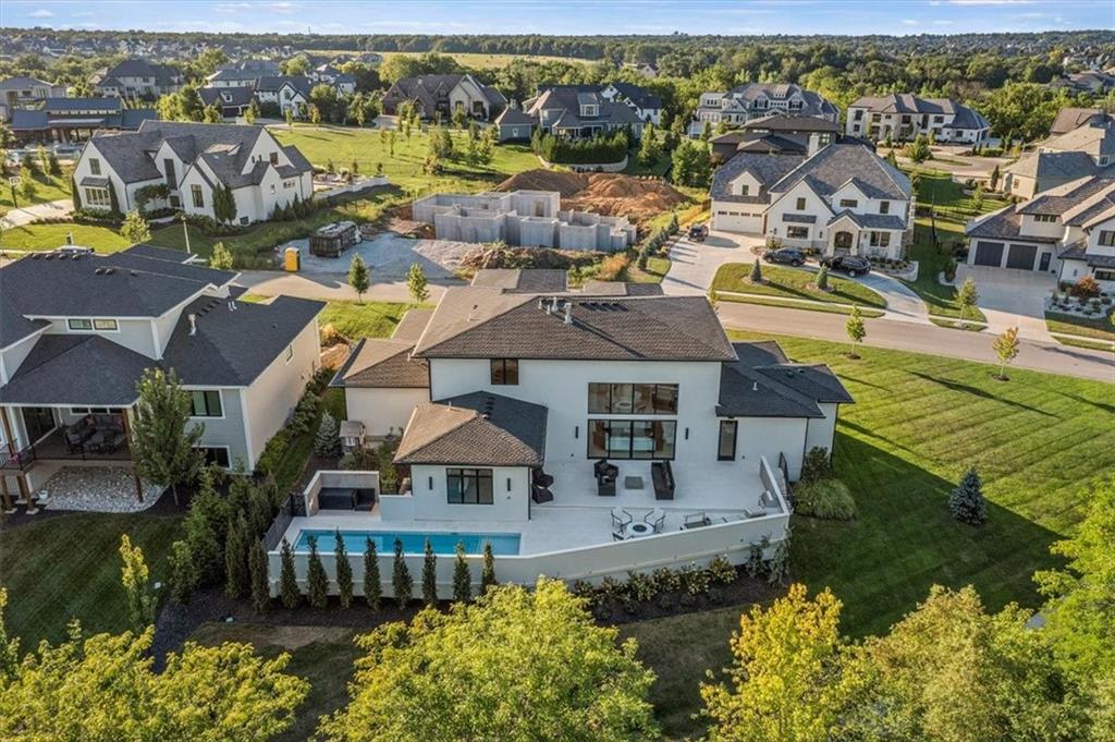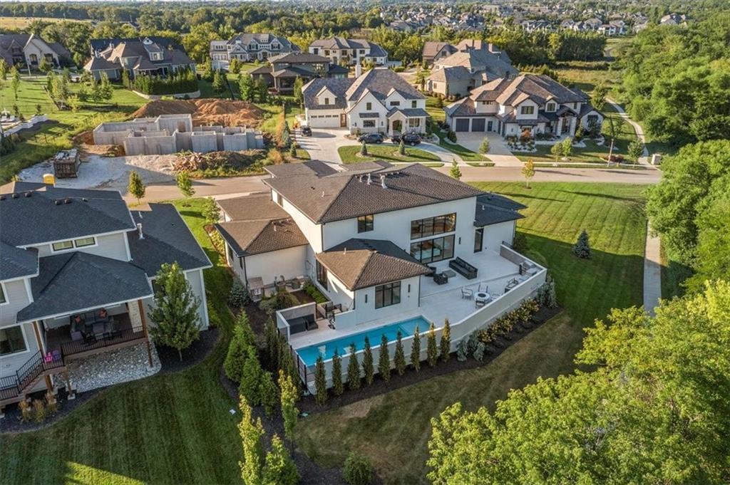 Discover modern elegance in this custom-built 1.5-story home, offering over 5,000 sq. ft. of living space on a private half-acre lot. This residence blends sophisticated design with everyday comfort. Step inside to soaring 20-foot ceilings, a dramatic floor-to-ceiling fireplace, and white oak hardwood floors throughout most of the home. The open main level is filled with natural light and features built-in speakers, Restoration Hardware light fixtures, and a seamless flow into the chef’s kitchen. Here you’ll find LG Signature appliances, quartz countertops, and an oversized walk-in pantry with sink and built-in microwave oven. The main-level primary suite is a retreat of its own with outdoor access, dual walk-in closets, and a spa-like bath with walk-in shower, soaker tub, and modern finishes. A second bedroom with ensuite bath, a dedicated office, large laundry with pet washing station, and an additional powder room complete the first floor. Upstairs offers three oversized secondary bedrooms—each with walk-in closets and ensuite baths—plus a versatile loft perfect for a TV room or office. The lower level is designed for wellness and future expansion, featuring a home gym, built-in infrared sauna, daylight/egress windows to add 2 bedrooms, & stubbed plumbing for an additional bath and bar. The garage is a showstopper in itself, with epoxied floors, tinted glass doors, an electric car charging setup, electric heater, battery backup garage door openers, & built-in cabinets. Step outside to your private backyard oasis—an entertainer’s dream. The sport design pool with automatic cover sits alongside a travertine marble tile patio that stays cool underfoot, a gas fire pit, and an outdoor kitchen loaded with a smoker, pizza oven, wood-fire grill, freezer/fridge, and griddle (all never used). Built-in speakers extend outside as well. Additional highlights include a dual-zone HVAC system, pre-wiring for a generator, & outstanding neighborhood amenities.