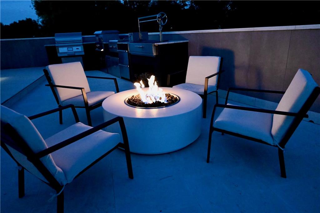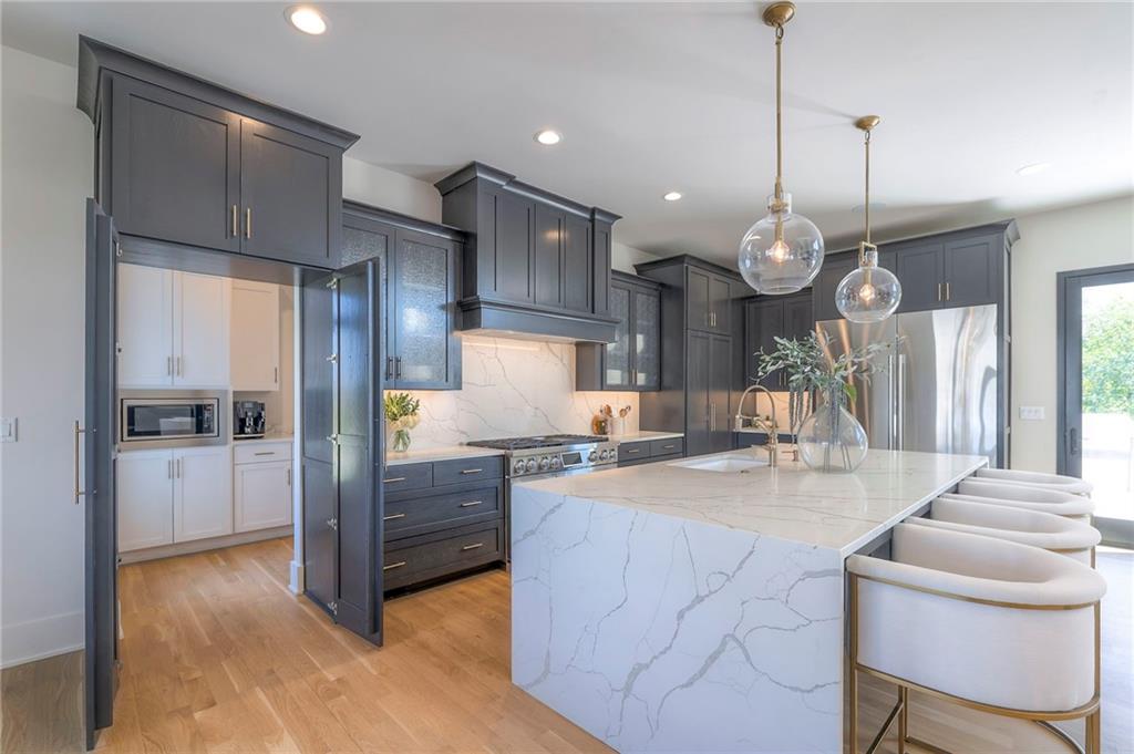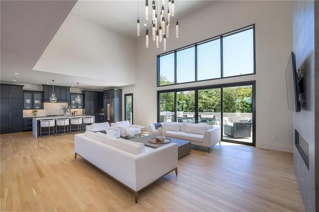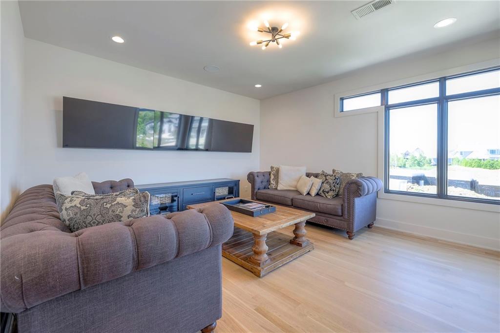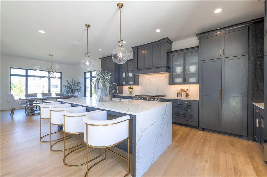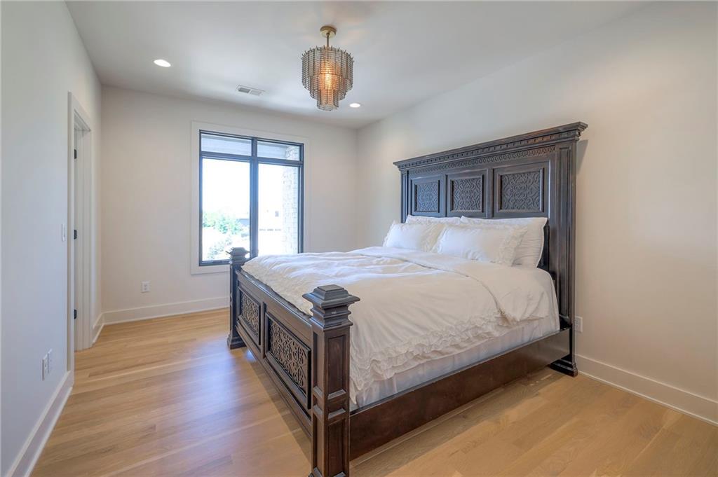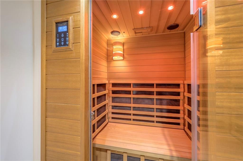 Discover modern elegance in this custom-built 1.5-story home, offering over 5,000 sq. ft. of living space on a private half-acre lot. This residence blends sophisticated design with everyday comfort. Step inside to soaring 20-foot ceilings, a dramatic floor-to-ceiling fireplace, and white oak hardwood floors throughout most of the home. The open main level is filled with natural light and features built-in speakers, Restoration Hardware light fixtures, and a seamless flow into the chef’s kitchen. Here you’ll find LG Signature appliances, quartz countertops, and an oversized walk-in pantry with sink and built-in microwave oven. The main-level primary suite is a retreat of its own with outdoor access, dual walk-in closets, and a spa-like bath with walk-in shower, soaker tub, and modern finishes. A second bedroom with ensuite bath, a dedicated office, large laundry with pet washing station, and an additional powder room complete the first floor. Upstairs offers three oversized secondary bedrooms—each with walk-in closets and ensuite baths—plus a versatile loft perfect for a TV room or office. The lower level is designed for wellness and future expansion, featuring a home gym, built-in infrared sauna, daylight/egress windows to add 2 bedrooms, & stubbed plumbing for an additional bath and bar. The garage is a showstopper in itself, with epoxied floors, tinted glass doors, an electric car charging setup, electric heater, battery backup garage door openers, & built-in cabinets. Step outside to your private backyard oasis—an entertainer’s dream. The sport design pool with automatic cover sits alongside a travertine marble tile patio that stays cool underfoot, a gas fire pit, and an outdoor kitchen loaded with a smoker, pizza oven, wood-fire grill, freezer/fridge, and griddle (all never used). Built-in speakers extend outside as well. Additional highlights include a dual-zone HVAC system, pre-wiring for a generator, & outstanding neighborhood amenities.