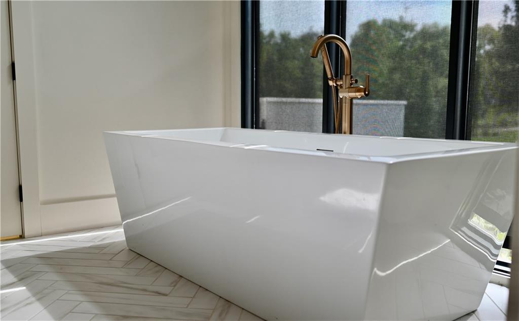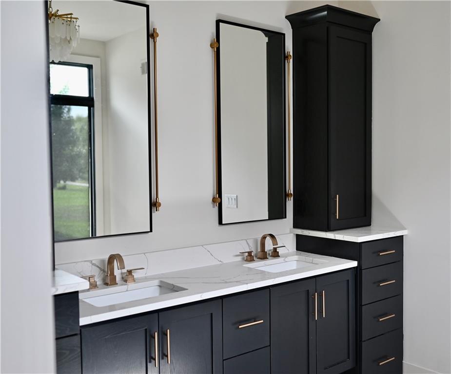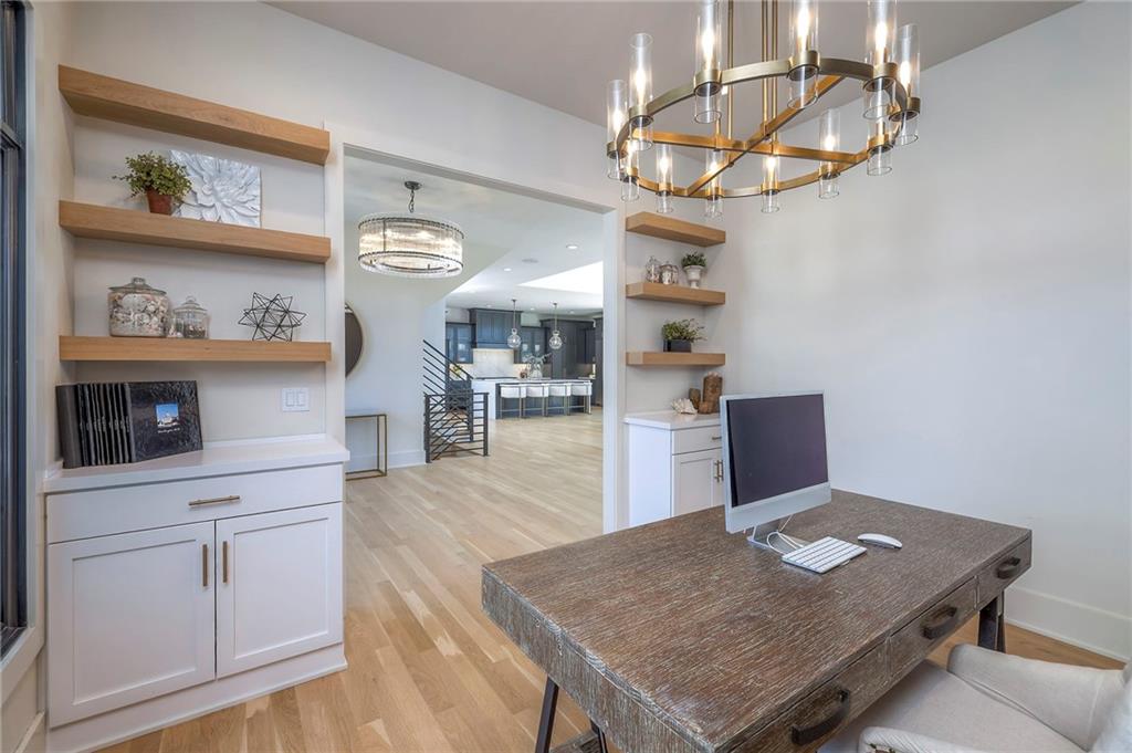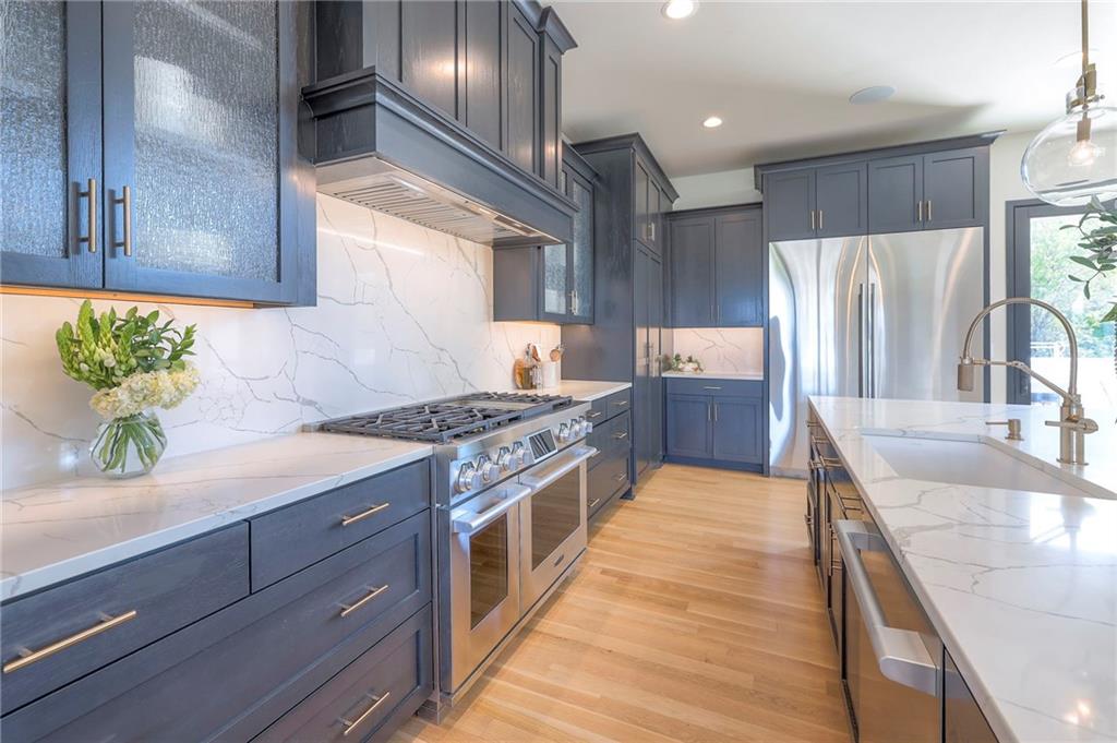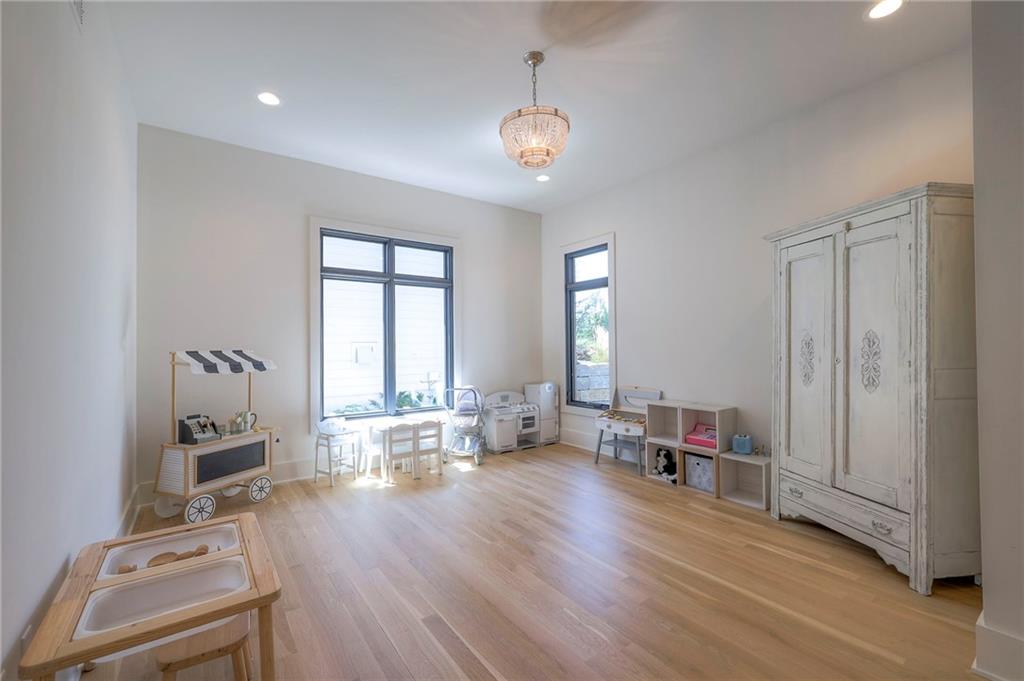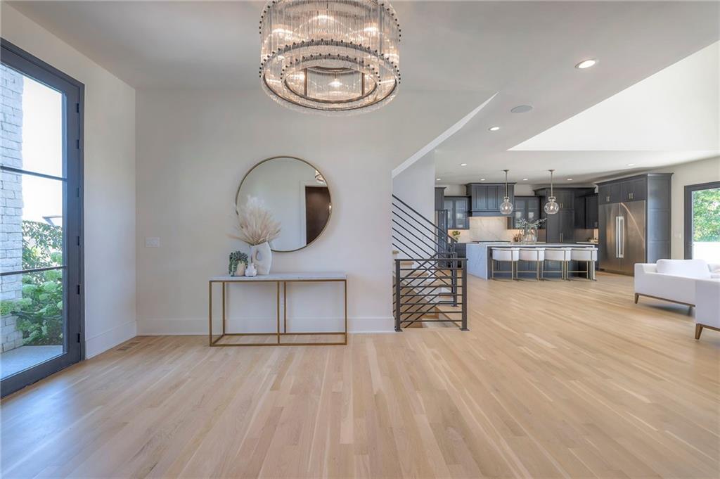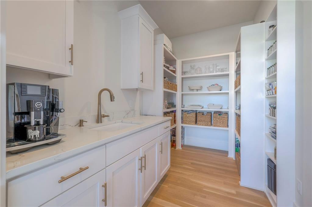 Discover modern elegance in this custom-built 1.5-story home, offering over 5,000 sq. ft. of living space on a private half-acre lot. This residence blends sophisticated design with everyday comfort. Step inside to soaring 20-foot ceilings, a dramatic floor-to-ceiling fireplace, and white oak hardwood floors throughout most of the home. The open main level is filled with natural light and features built-in speakers, Restoration Hardware light fixtures, and a seamless flow into the chef’s kitchen. Here you’ll find LG Signature appliances, quartz countertops, and an oversized walk-in pantry with sink and built-in microwave oven. The main-level primary suite is a retreat of its own with outdoor access, dual walk-in closets, and a spa-like bath with walk-in shower, soaker tub, and modern finishes. A second bedroom with ensuite bath, a dedicated office, large laundry with pet washing station, and an additional powder room complete the first floor. Upstairs offers three oversized secondary bedrooms—each with walk-in closets and ensuite baths—plus a versatile loft perfect for a TV room or office. The lower level is designed for wellness and future expansion, featuring a home gym, built-in infrared sauna, daylight/egress windows to add 2 bedrooms, & stubbed plumbing for an additional bath and bar. The garage is a showstopper in itself, with epoxied floors, tinted glass doors, an electric car charging setup, electric heater, battery backup garage door openers, & built-in cabinets. Step outside to your private backyard oasis—an entertainer’s dream. The sport design pool with automatic cover sits alongside a travertine marble tile patio that stays cool underfoot, a gas fire pit, and an outdoor kitchen loaded with a smoker, pizza oven, wood-fire grill, freezer/fridge, and griddle (all never used). Built-in speakers extend outside as well. Additional highlights include a dual-zone HVAC system, pre-wiring for a generator, & outstanding neighborhood amenities.