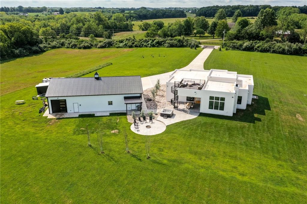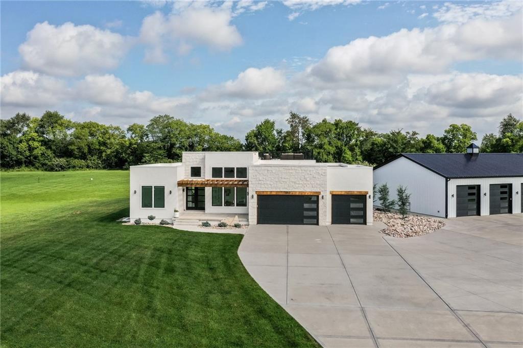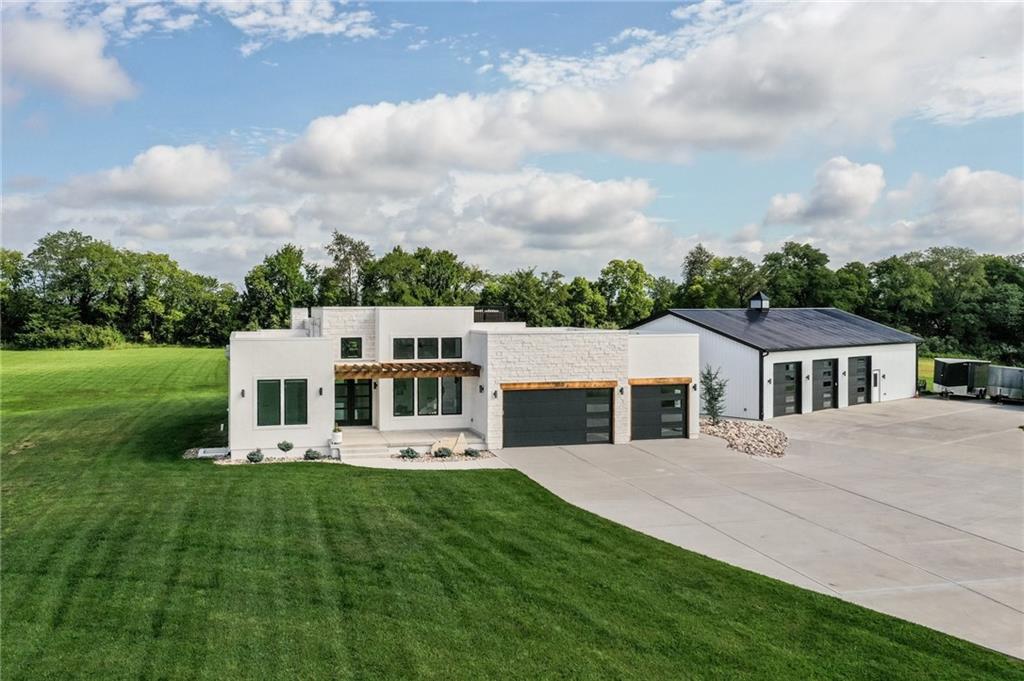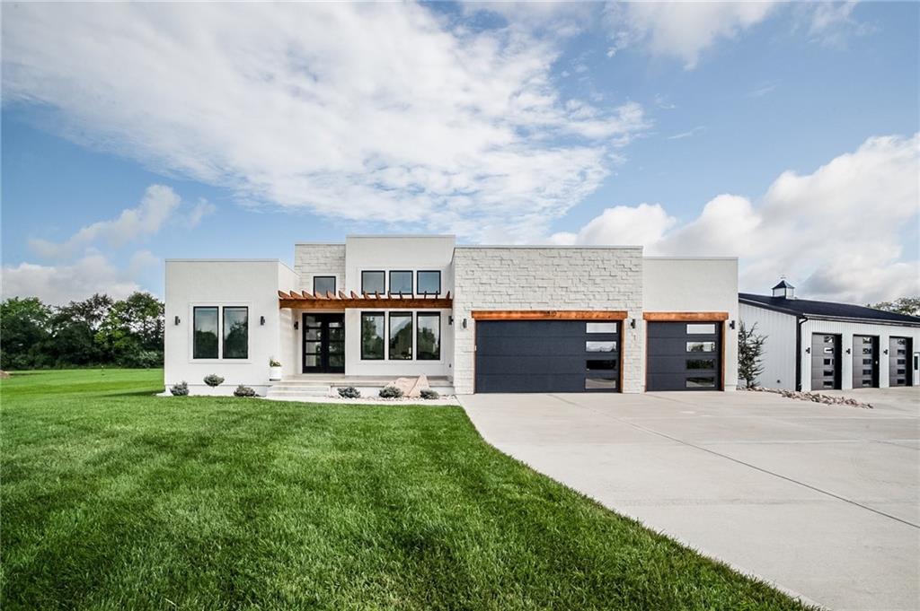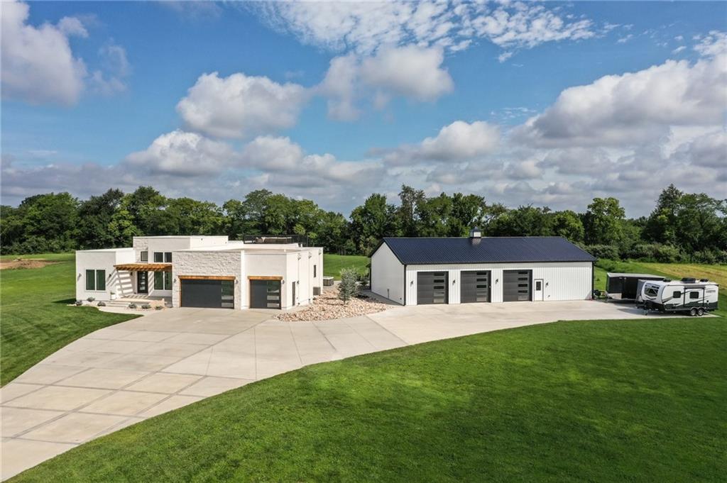 An Estate of Distinction on 5 Gated Acres! Set behind private gates and nestled on 5 pristine acres, this extraordinary custom estate defines refined living. Designed with both elegance and purpose, the residence showcases 4 bedrooms, 4 luxurious baths, and extraordinary accommodations for the collector or enthusiast with garage space for 6+ vehicles—including a remarkable 40x60 detached garage and fully powered workshop. -The interiors unfold with an airy open-concept design, where soaring windows frame the landscape and flood the home with natural light. A chef’s kitchen anchors the living space, appointed with exquisite finishes and designed for both intimate gatherings and grand entertaining. Every detail reflects craftsmanship of the highest caliber. -On the lower level, a private exercise suite and an expansive, state-of-the-art theater room provide a lifestyle of leisure and wellness. For those seeking a truly unique vantage point, the rooftop deck offers an enchanting retreat—perfect for sunset gatherings, evening cocktails, or stargazing beneath an endless Missouri sky and sunsets. -Just moments from the waters of Smithville Lake, this estate seamlessly blends tranquility, recreation, and sophistication. A rare offering, it invites the next discerning owner to experience a life of privacy, beauty, and unparalleled luxury. Your private tour awaits.