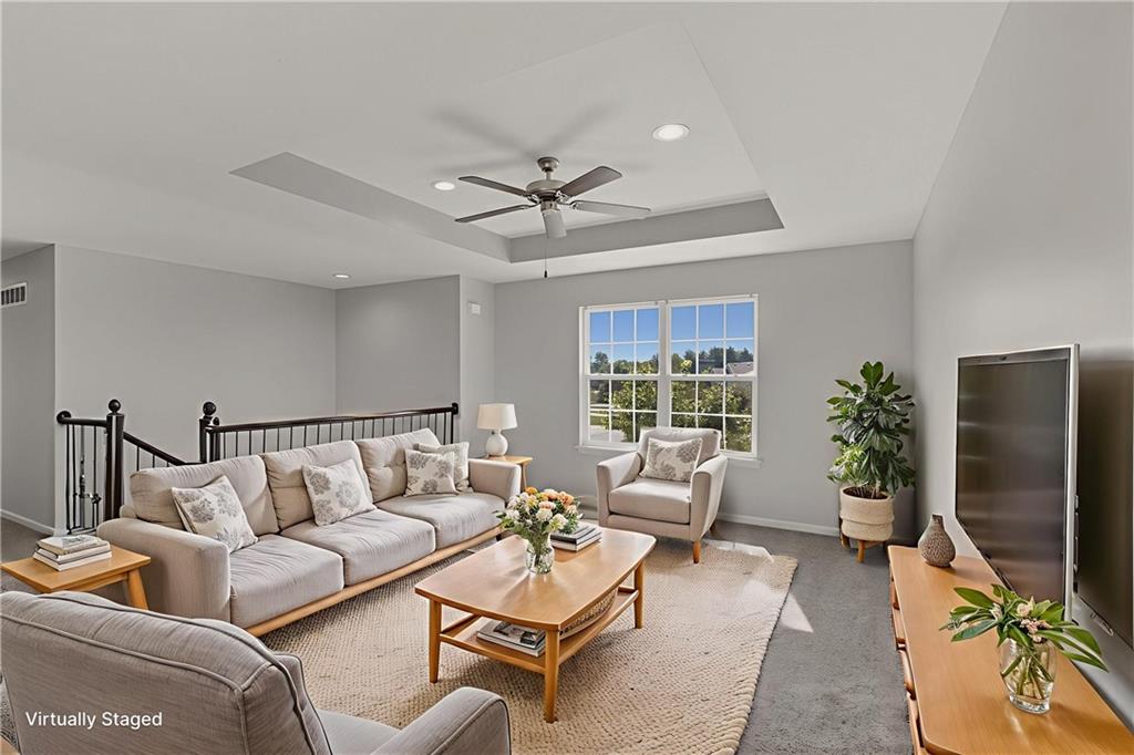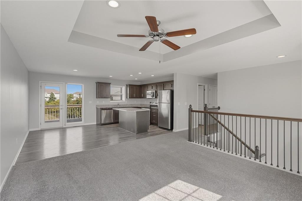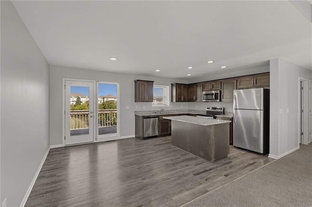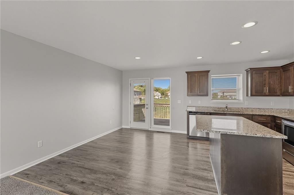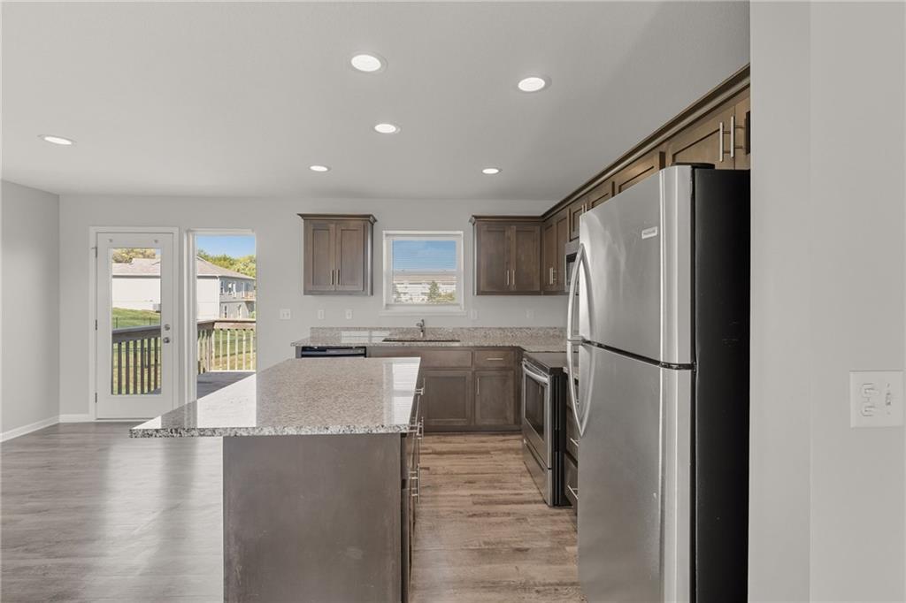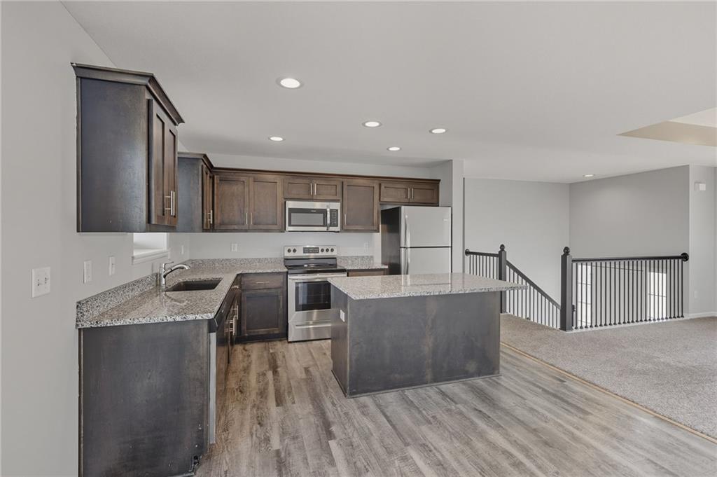 Enjoy comfort and style in this inviting 1-story home with a full finished basement and 2-car garage. The open floor plan features a spacious kitchen with a large island, stainless steel appliances, and accent lighting that adds a modern touch. The primary suite offers a double vanity and generous closet space. Step out onto the wood deck and take in peaceful views of the pond, grassy area, and surrounding neighborhood. A perfect blend of indoor and outdoor living—schedule a showing today!