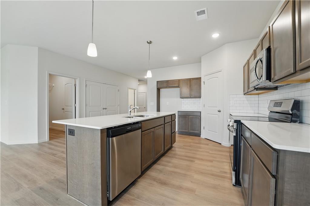 The Harrington by Ashlar Homes. This amazing straight ranch home features 4 bedrooms and 2.5 baths with 1849 square feet. The kitchen boasts Quartz countertops, stylish backsplash, an island and walk-in pantry. The primary suite is a retreat with a connecting bath that has a double vanity, shower, and walk in closet. The great room, kitchen, dining area, and halls feature luxurious LVP flooring, creating a seamless flow throughout the main living spaces. Located in a vibrant community, you’ll have access to top-notch amenities such as a swimming pool, playground, fire pit, grass-seated amphitheater, a fishing pond, and coming this summer - a pickle ball court, basketball court and frisbee golf course..providing endless opportunities for relaxation and recreation. Warranty provided - 1 yr builders warranty, 2 years on systems and 10 year structural. Photos are of a previous model - finishes may be different.