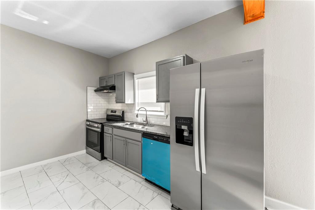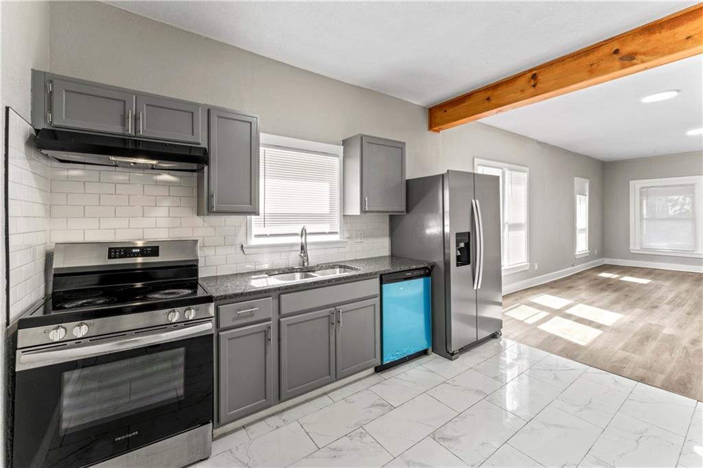 Start the new year in your beautifully remodeled home! Charming Renovated Bungalow! Move-in ready 3-bedroom, 2-bath home with modern updates throughout. Step inside to an open floor plan filled with natural light, featuring new luxury vinyl plank flooring and fresh paint. The stylish kitchen showcases granite countertops, subway tile backsplash, stainless steel appliances, and tile flooring. Both bathrooms have been tastefully remodeled with contemporary finishes. Enjoy the spacious bedrooms and updated fixtures. Relax on the covered front porch or entertain in the generous backyard. Newer mechanicals and a clean, bright interior make this a perfect starter home or investment property. Ample parking at the back of the property. Conveniently located near highways, shopping, and downtown KC. Property is currently winterized.