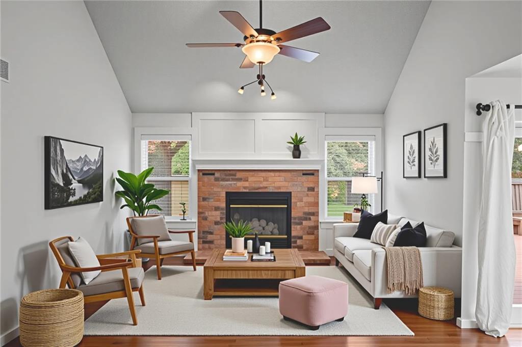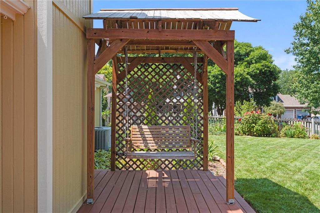 Move-in ready West Lawrence home on a corner lot in a quiet cul-de-sac near the Jayhawk Club, Quail Run, and Clinton Lake; located in the Free State High, Southwest Middle, and Quail Run Elementary school zones. Vaulted ceilings and warm hardwood floors create an open, inviting main living space, while the main-level primary bedroom adds everyday convenience. The fully finished basement features custom built-ins, a home theater setup, abundant storage, and a dedicated workspace ideal for a home office, hobbies, or game-day gatherings. Enjoy a large fenced backyard with fruit trees and established perennial landscaping designed for low-maintenance outdoor living. Major updates include newer windows with lifetime warranty, electrical upgrades, new red oak hardwood floors upstairs, exterior drainage improvements, new privacy fencing, fresh exterior paint, and a 6-year-old roof. Sellers are offering a Gold Service Plan home warranty with AB May for added peace of mind.