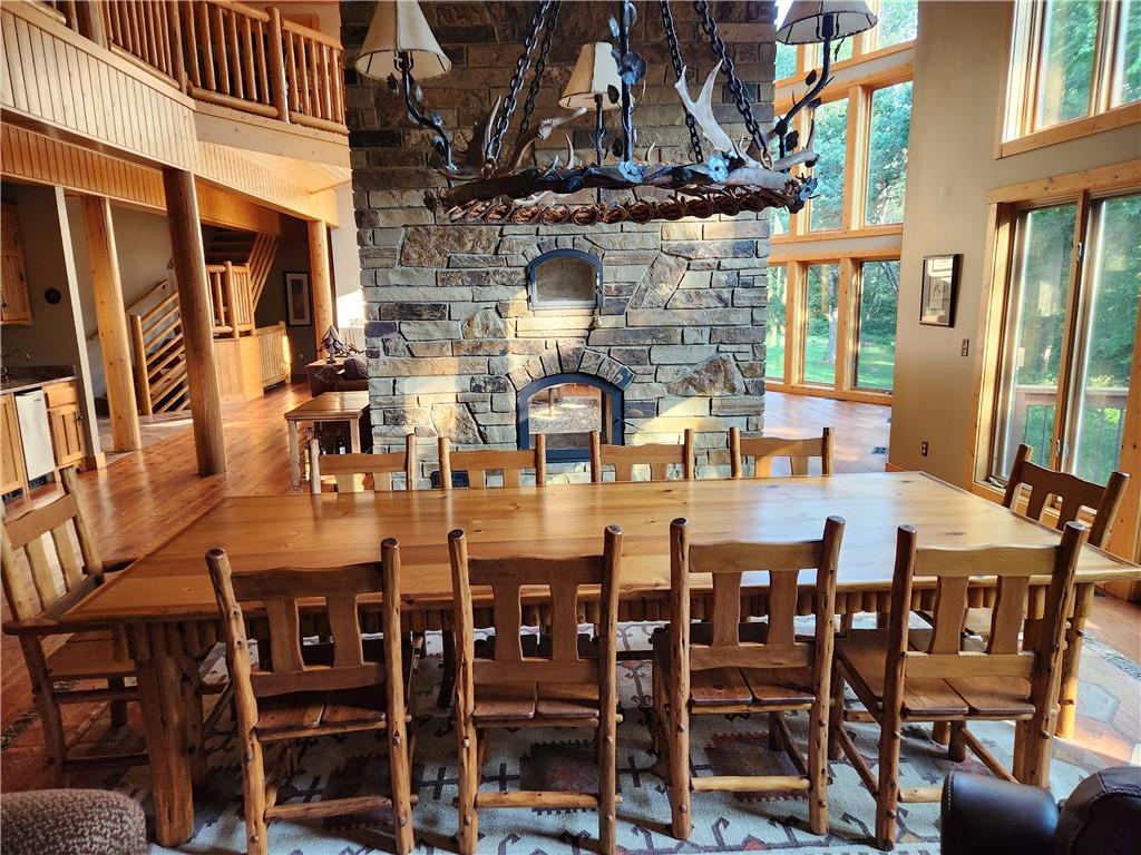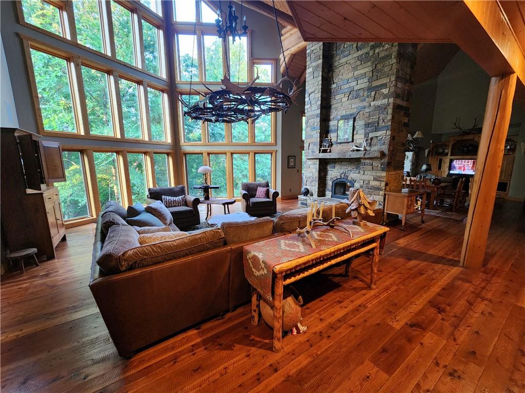 Beautiful rustic lodge home on 11 wooded acres. Exposed log pole and tongue and groove pine ceilings giving a lpg cabin feel. Knotty pine cabinets and trim throughout the home. Come see this tranquil rustic retreat. If interested, ask for a tour of the property in the utility vehicle. Owner agent.