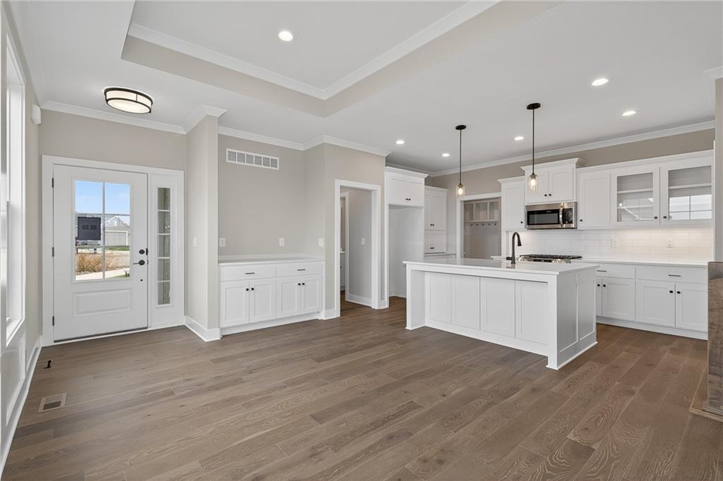 NEW PRICE, AVAILABLE NOW! LOCATION LOCATION...BRAND NEW Twin Villa, Haven plan by Lambie Homes is ready to MOVE IN! Located on lot 62R at the end of the cul-de-sac offers a generous backyard. Quick hwy. access, close to Shawnee Mission park, Lenexa City center, Black Hoof Park, & more. RIGHT SIZE into this smart sleek twin villa, one floor easy living, covered patio, functional/effective home office tucks away behind a pocket door. Kitchen boasts an abundance of cabinetry, coffee Bar/appliance garage, walk-in pantry, 5-burner gas cooktop. The home is filled with natural light. Primary bedroom flows to the primary bath with oversized walk-in shower, private toilet area, double quartz vanity, flows into generous-size master closet, then out to the laundry area for sensible living flow. The lower level offers additional bedrooms and a recreation room that provides space for guests, or returning college-age kids, a craft room, exercise room, scrapbooking room, or multitude of other functions. LARGE LOT! Pictures are of former model.