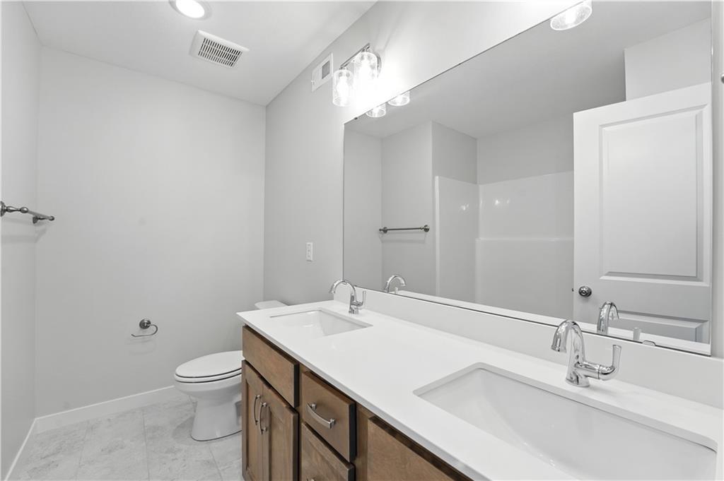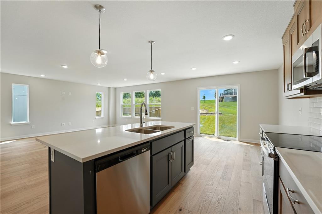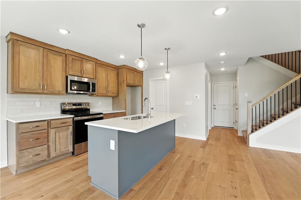 Ready for immediate move-in! Welcome to this charming 4-bedroom, 3.5-bathroom two-story home, nestled on a serene private street that culminates in a peaceful cul-de-sac. The main level boasts an open floor plan, perfect for entertaining and daily living. The well-designed layout seamlessly connects the living, dining, and kitchen areas, creating a spacious and inviting atmosphere. Upstairs, you'll find all three bedrooms, including the generously-sized primary bedroom, along with a convenient laundry room. This thoughtful design ensures that privacy and functionality are seamlessly combined. The full unfinished lower level presents endless possibilities—create your dream space or use for extra storage. Eastbrooke at Creekmoor has it all! Designed around 108 acre Lake Creekmoor and the acclaimed 18 Hole Championship Golf Course, Creekmoor offers one of the most comprehensive residential amenities packages available, where homeowners with both active and relaxed lifestyles enjoy what feels like vacation all year long. Pools, tennis, pickleball, basketball, 24-hour fitness center, golf pro shop, Tavern on the Moor restaurant and bar, fishing, boating, SUP, and still more...it's ALL here! With an abundance of shops, restaurants and services minutes away and with easy access to Jackson and Johnson Counties, homeowners have all the benefits of metro living at their fingertips while enjoying home life outside the hustle and bustle. Whether making your first home purchase or your last, this is a destination community like no other.