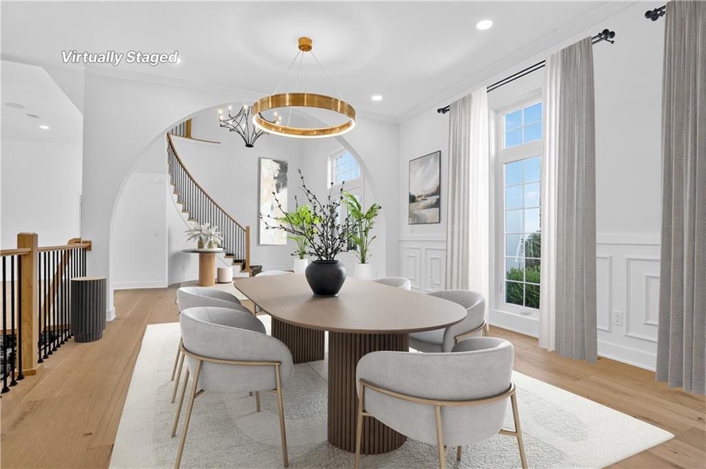 Commanding attention with its classic façade and lavishly updated interiors, this 1.5-story Colonial redefines modern elegance & is perfectly positioned on just under an acre of lush, tree-lined grounds. This beautifully updated home blends classic architectural charm with a fresh, open floor plan designed for today’s lifestyle. Step into a bright, inviting interior where the gourmet kitchen seamlessly connects to expansive living and dining spaces—ideal for both everyday living and grand entertaining. The main-level primary suite is a private retreat, featuring a warm fireplace, an oversized walk-in closet with custom built-ins, and a washer/dryer hookup for added convenience. Indulge in the spa-inspired bath with its soaker tub, large walk-in shower, and elegant finishes. Upstairs, you’ll find a second primary suite, three additional bedrooms, a loft area, and a second laundry space—perfect for busy households or guests. The walk-out lower level was built for entertainment, offering a spacious rec room with wet bar, a dedicated theater room, wine room, and abundant storage. Car lovers will appreciate the six garage spaces, while the charming carriage house above provides a complete living space with its own living room, kitchenette, bedroom, and full bath—ideal for in-laws or guests. Extensive updates include new paint, flooring, light fixtures, windows, HVAC, Trex deck, and more, making this home truly move-in ready. Located just minutes from Tiffany Greens Golf Club, the airport, shopping, and dining, this property offers both convenience and privacy. Don’t miss the chance to make this extraordinary home your own!