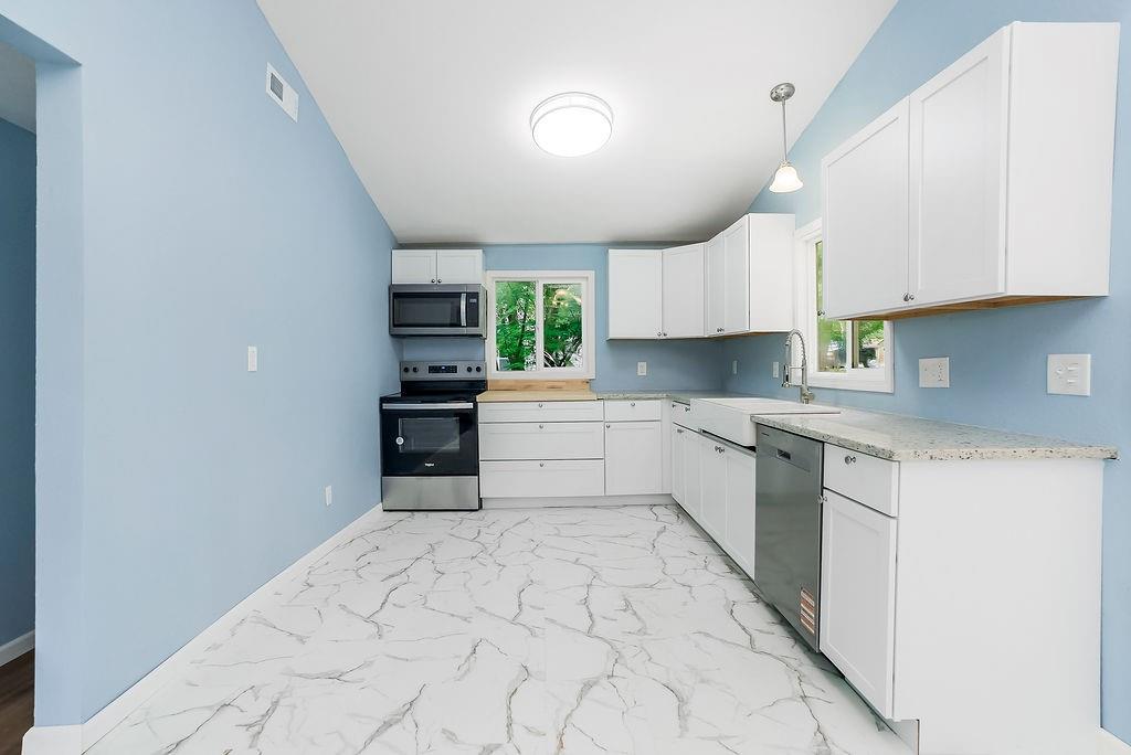 COUNTRY LIVING, PURE AND SIMPLE – where every season is beautiful! This adorable, hard-to-find ranch has been completely renovated from top to bottom and is move-in ready—now even more attainable with a recent $20K price improvement! Step inside to the all-new kitchen with soaring ceiling, featuring brand-new cabinets, granite countertops, farmhouse sink, stainless steel appliances, and luxury vinyl flooring—perfect for sharing meals and making memories. Flow into the spacious family room, a comfortable retreat for relaxing or entertaining. The serene primary bedroom with vaulted ceiling offers a private getaway, while the second bedroom provides plenty of space for play, rest, or work. The all-new bathroom is designed with style and function in mind, large enough for two to start the day comfortably. Outside, enjoy a new front porch—perfect for watching the seasons change as fall breezes rustle the leaves. The private backyard offers endless options for gardening, play, or entertaining. SO MUCH NEW: vinyl siding, roof, gutters, flashing, thermal windows, interior and exterior doors, Pella sliding door, 200-amp electrical panel and wiring, plumbing, HVAC, water heater, sewer line, front deck, flooring, sheetrock, and more! Located in picturesque Mound City—where Sugar Mound’s fall colors frame your view and the warmth of small-town living meets big-city access—this charming 2-bedroom ranch is a peaceful retreat and a beautiful opportunity to make your move.