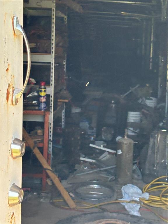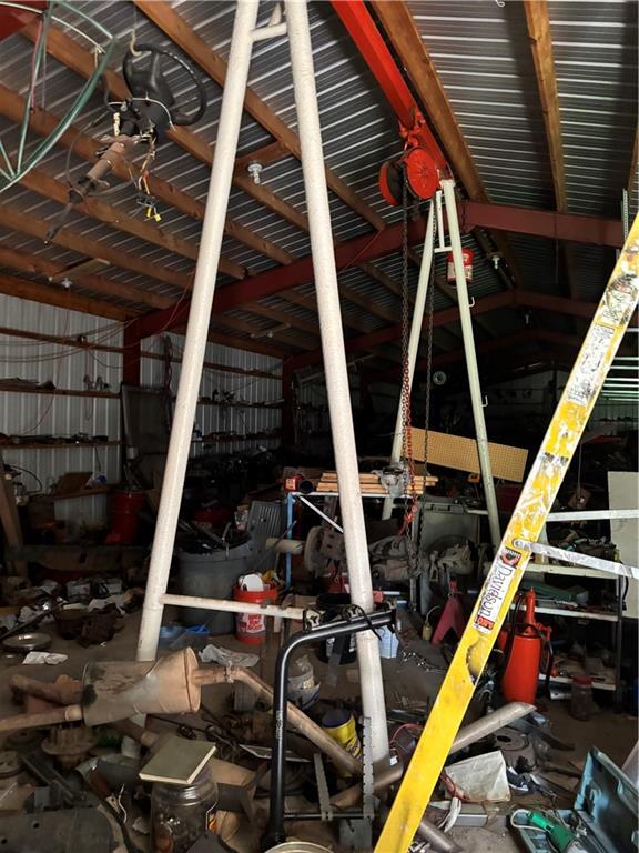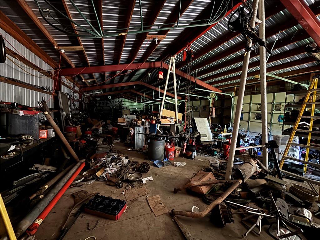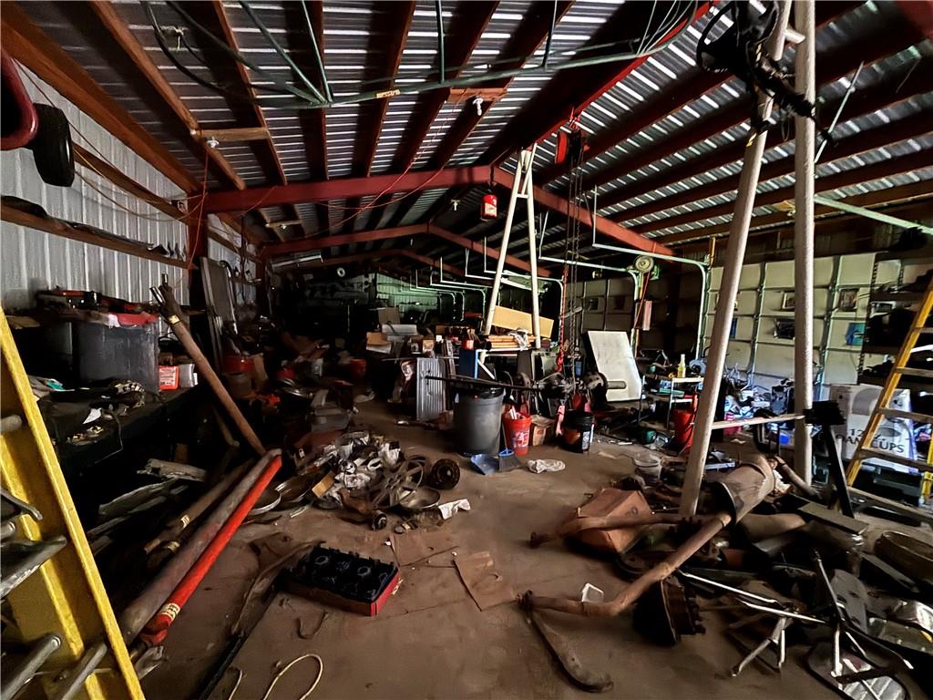 Spacious lot (nearly an acre) with tall chain link fenced perimeter, near south edge of town. Older masonry dwelling, currently not in habitable condition, with no utilities on. 96x30 detached metal sided shop/garage built with red-iron frame, concrete floor and six overhead doors, ample electrical provided. So many possibilities! All personal property remaining at closing in dwelling and shop will become property of buyer. Property sold AS IS.
