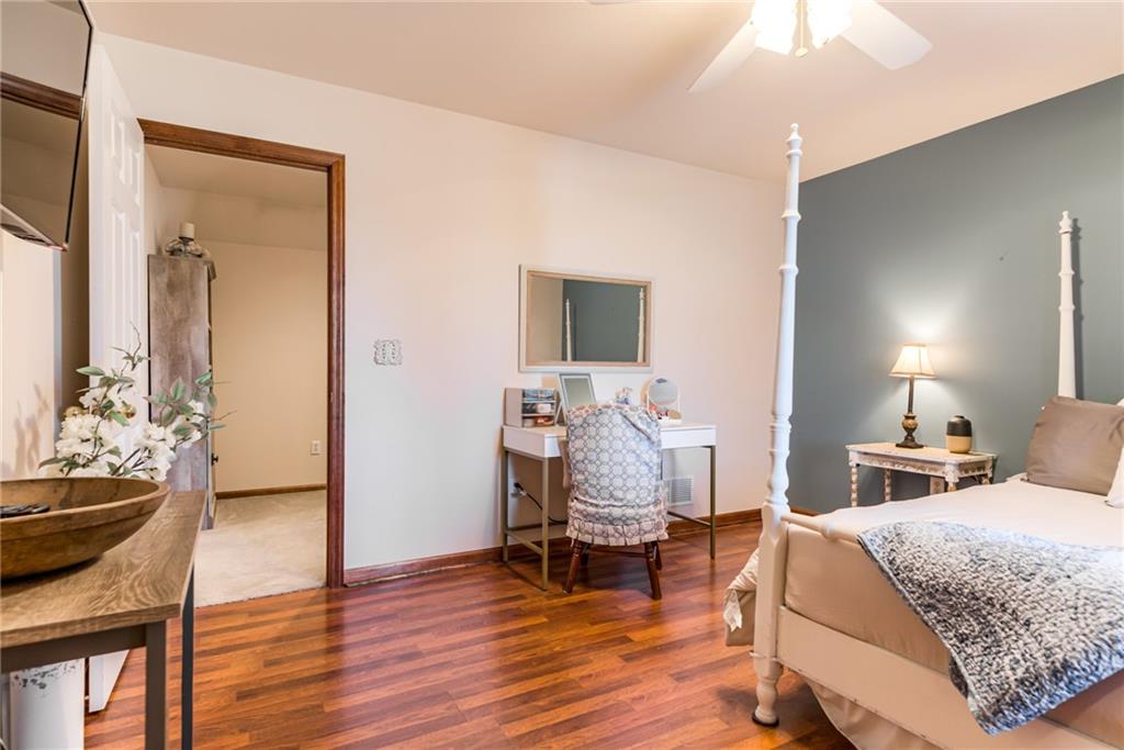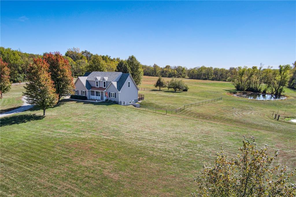 This charming and well cared for colonial farmhouse is a rare find, situated on a more than 8 acre plot in Applewood Estates in Belton! You'll love the view of your expansive yard with the pond and fruit trees from the covered porch as you take in the quiet, country air. The house features a spacious, upgraded kitchen with a double oven and range, great room with high vaulted ceilings, formal dining room, main level primary bedroom, several walk-in closets with ample storage, and a finished walk out basement. The only thing missing is you!